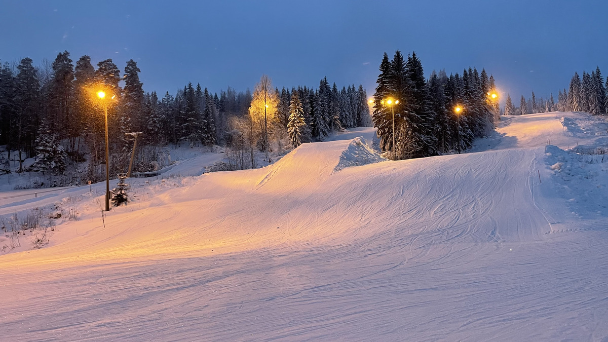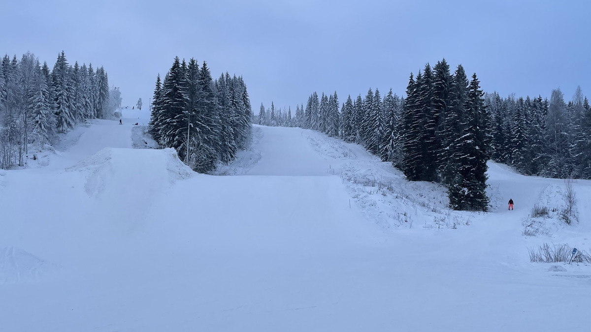 The vertical is 100 meters (300 feet), which is indeed good in southern-mid Finland. My local hills right in the south are in the 30-60 meter range, for instance. The longest run in Purnu is 750 meters. All the ski runs go over nice rolling hills. One of the slopes right next to the lift is dedicated to jumps and rails, but can also be skied. Two others were basic rounding-off-from-the-skiers-left slopes, both very nice for fast skiing. The "south" ski run on skier's right was not prepared. I found that a bit odd, and in general I've been running to this a lot recently in different ski resorts. The winter is one of the best ones in recent history, but yet the ski resorts can't prepare all the slopes? I think they should...