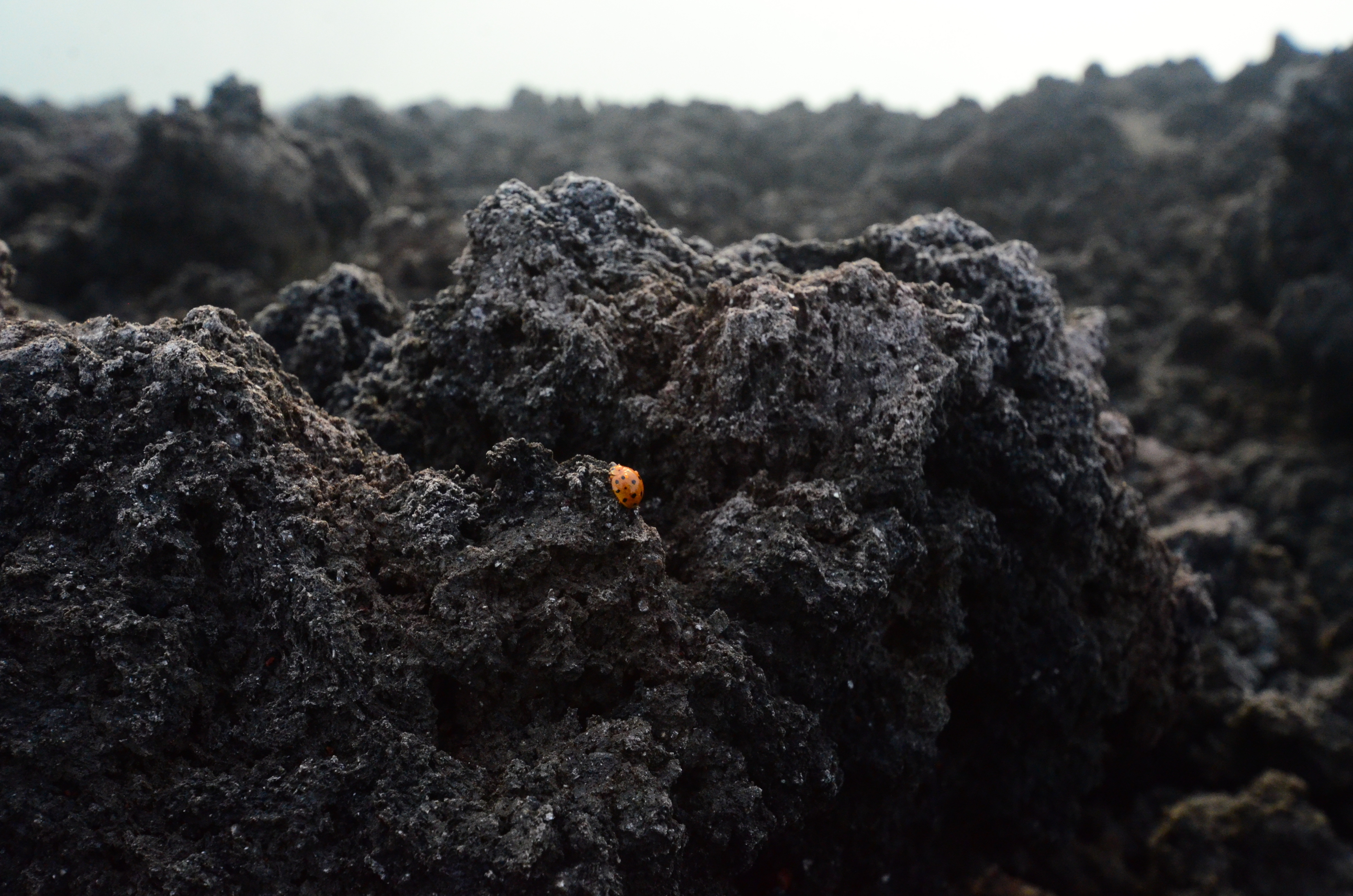The next leg of the climb is a scramble among large volcanic rocks. You have to be careful to not slip or cut yourself in the sharp rock edges, but otherwise it is easy.