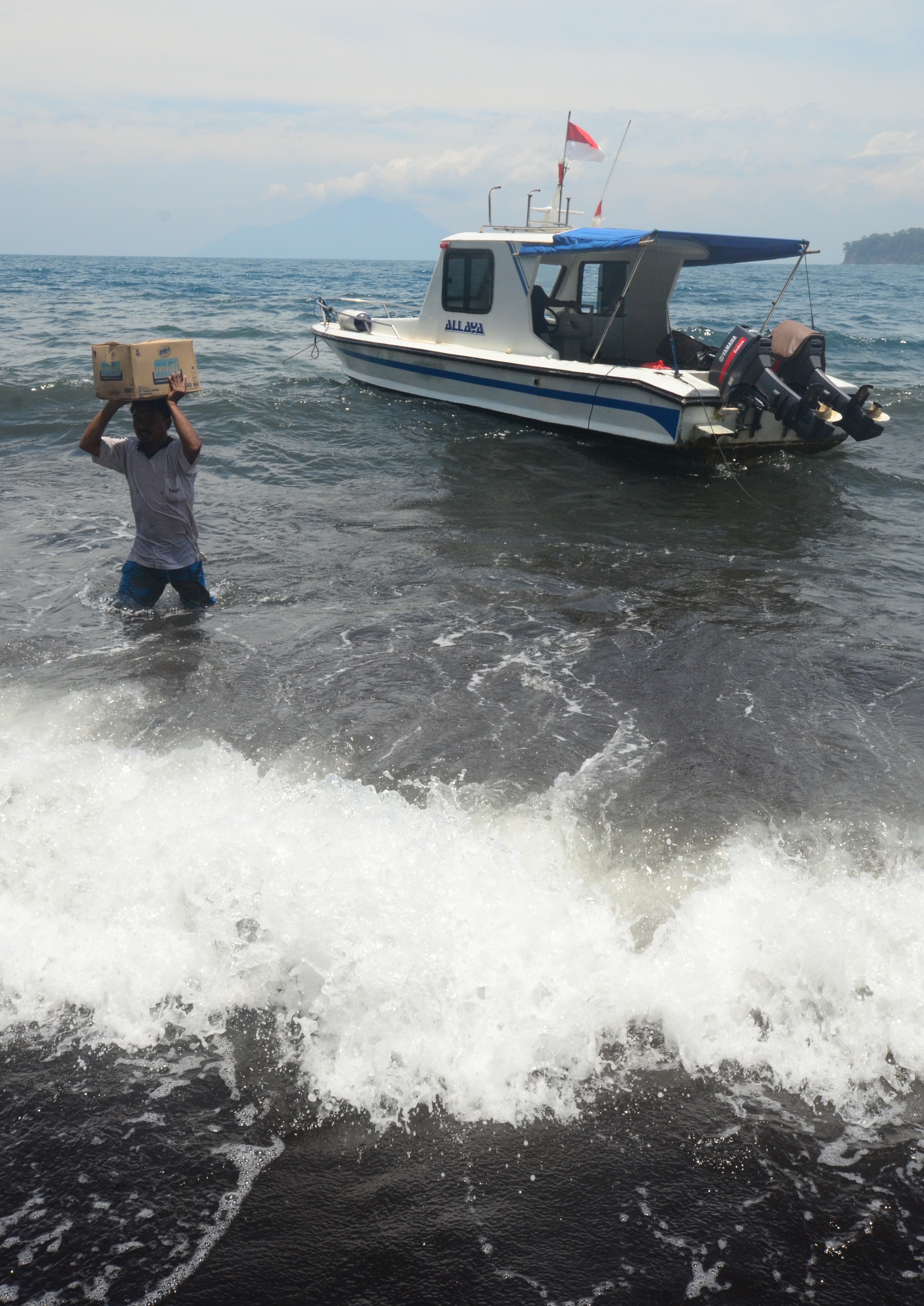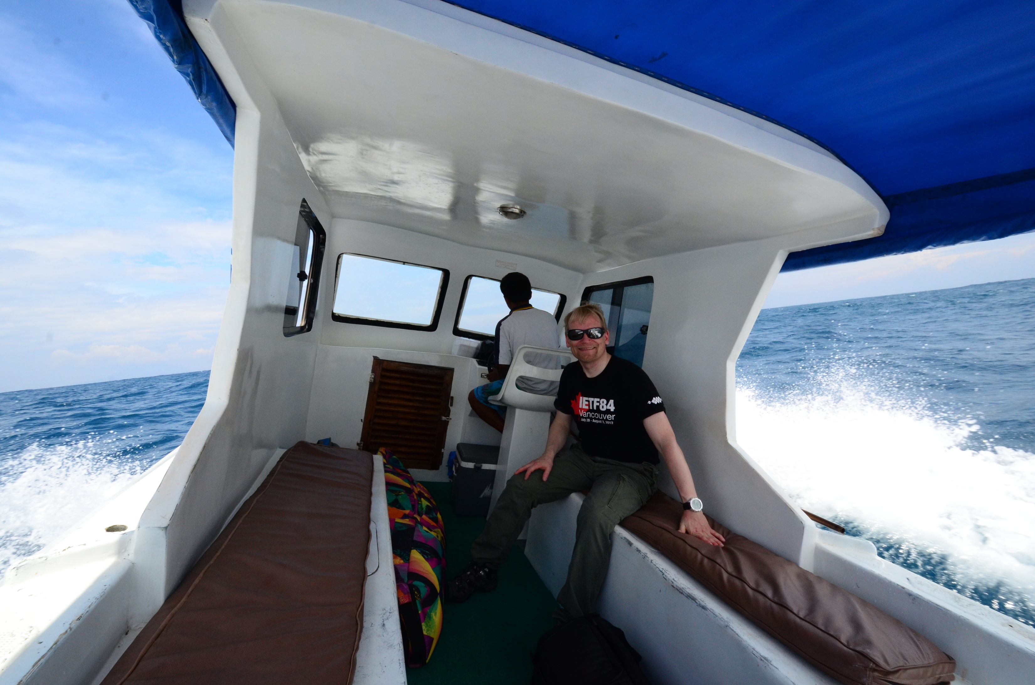 The trip to the island is 60 kilometers across the Sunda Strait, and is quite challenging. We ended up waiting for a day on the island for the weather to improve. Even so, the waves in the rainy season's unpredictable weather were higher than our boat. And when the boat goes at speed, it slams into every wave with a kidney-separating force. I do not recommend this trip unless you have the stomach for rough seas.