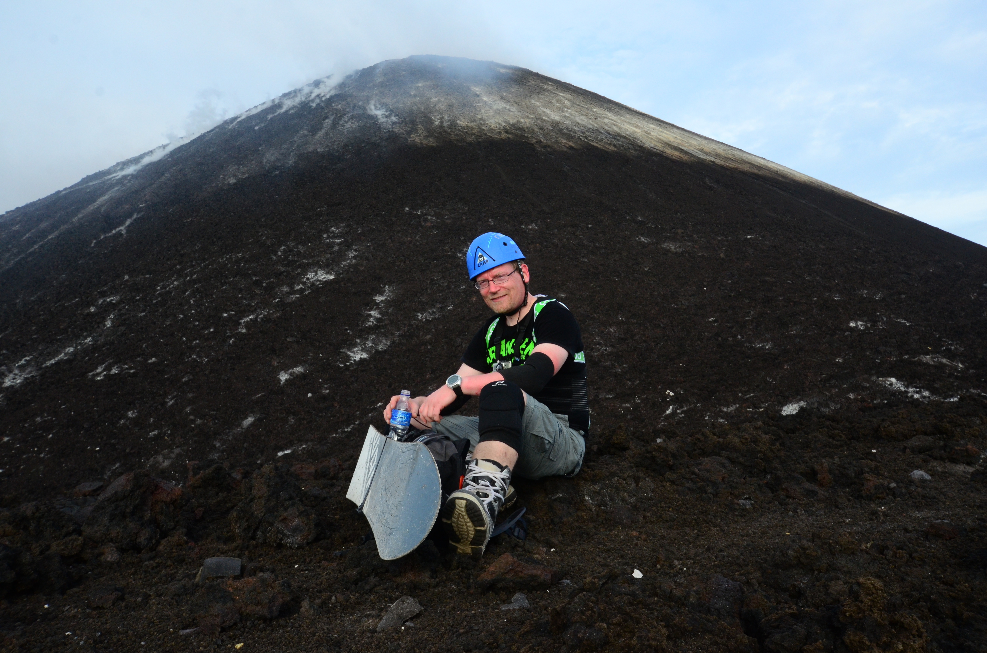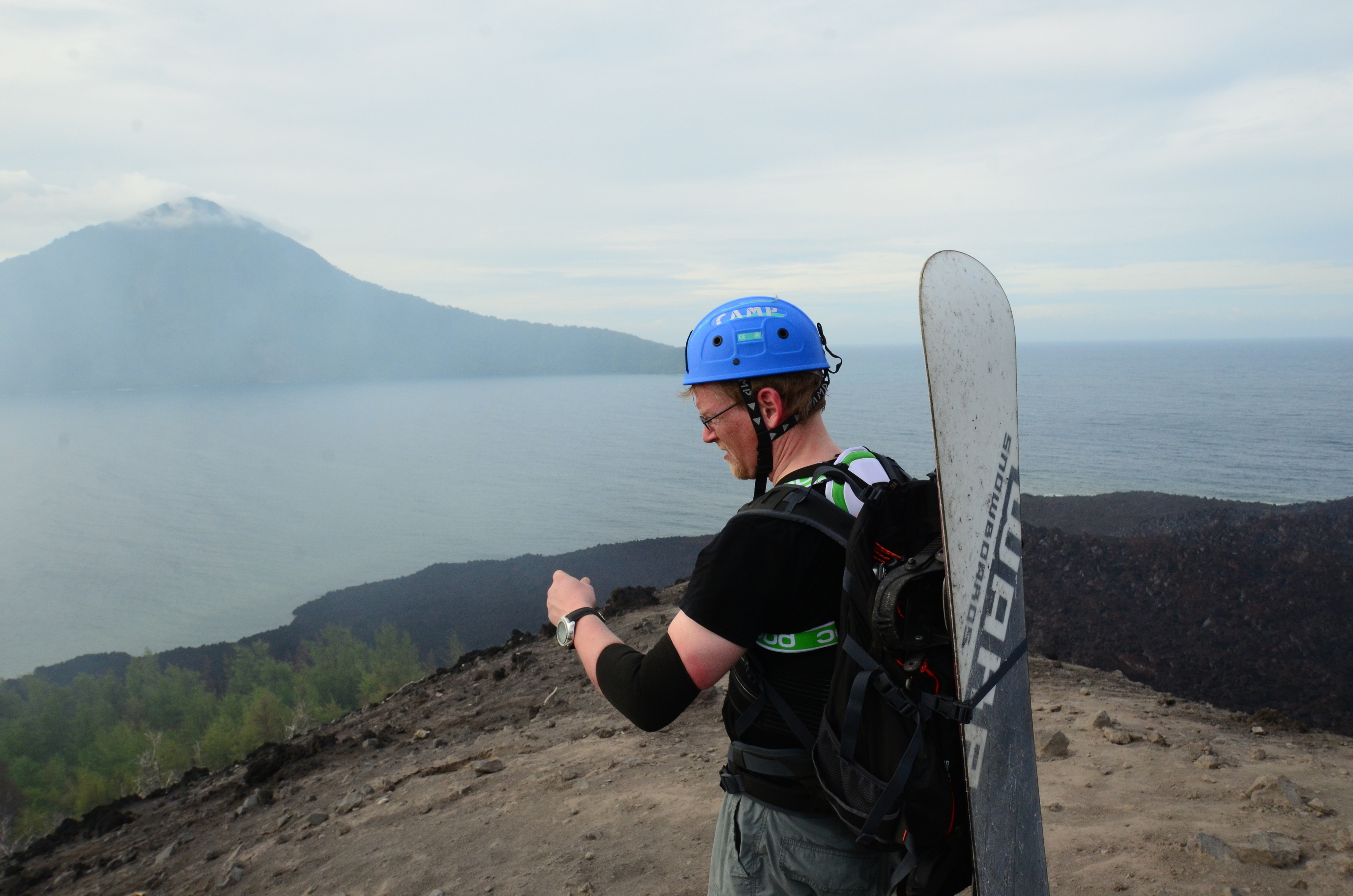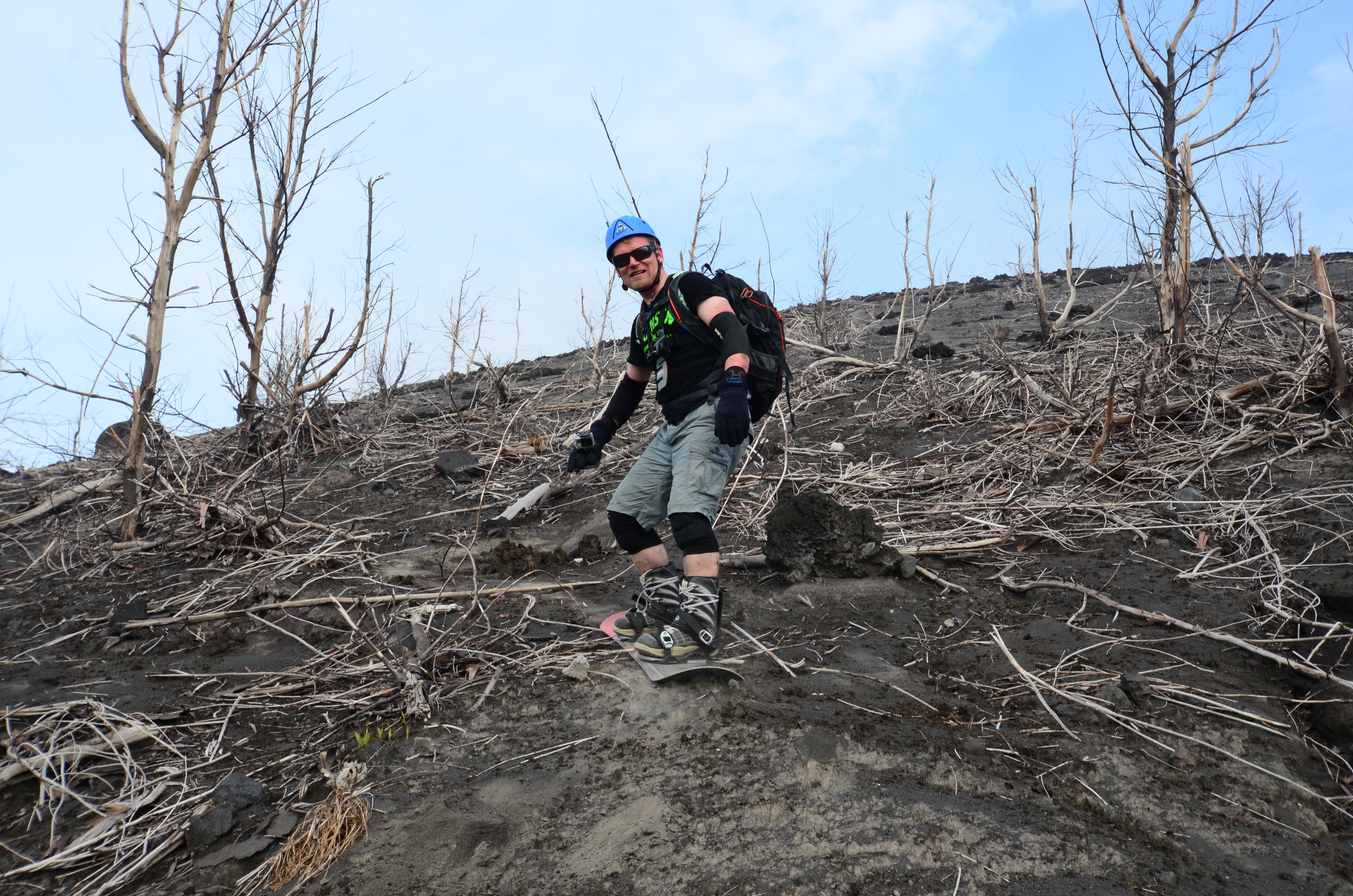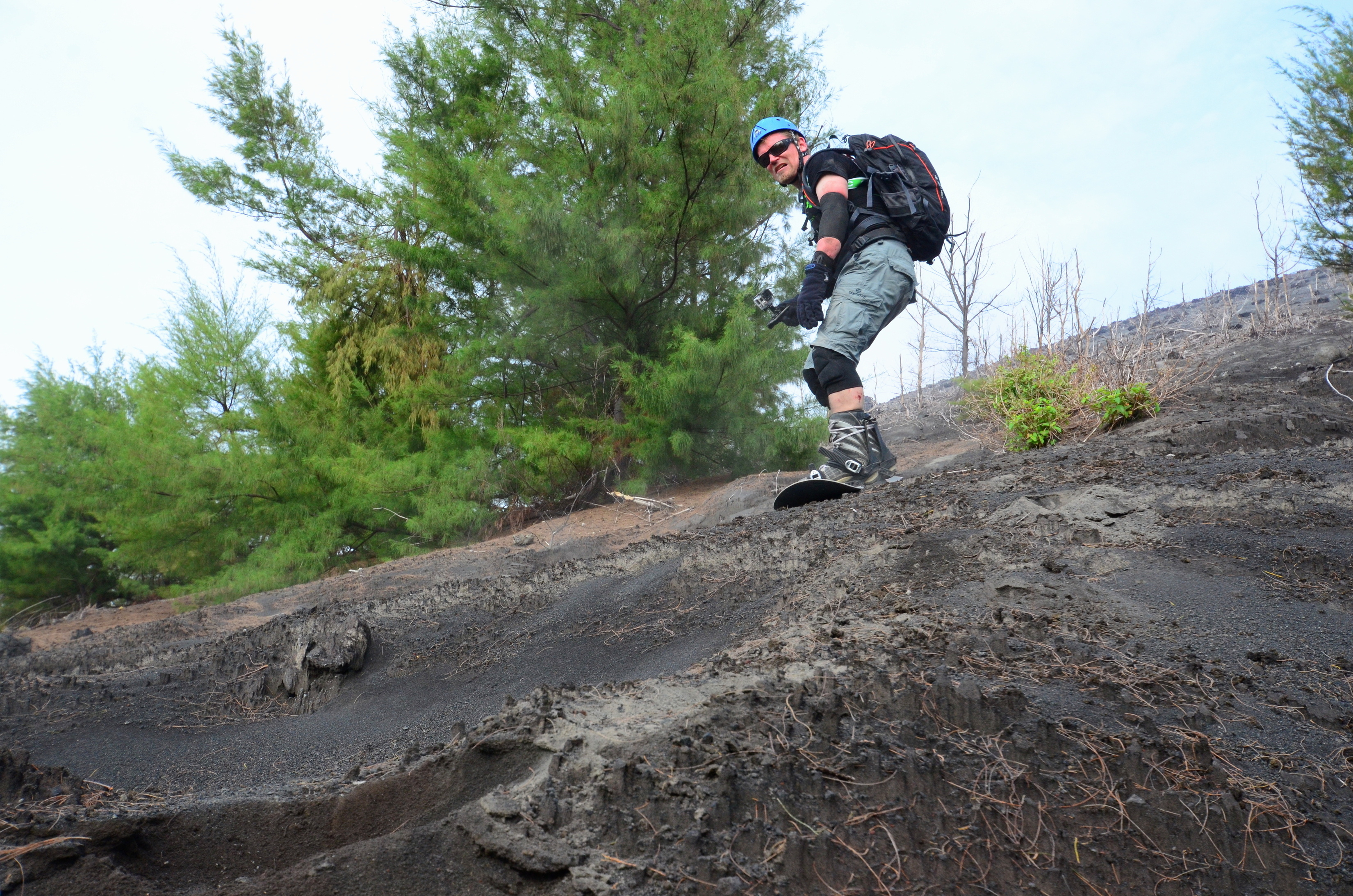 And I am here to make the first snowboard descent of the volcano. Yes, on a tropical island. And even when the 300-meter peak is, if possible, even hotter than the beach, has never seen snow and never will. But the rumors have told me that it has decent ash slopes... And yes, on snowboard, not skis. It felt more natural to attempt ash/sand on a board than on skis.