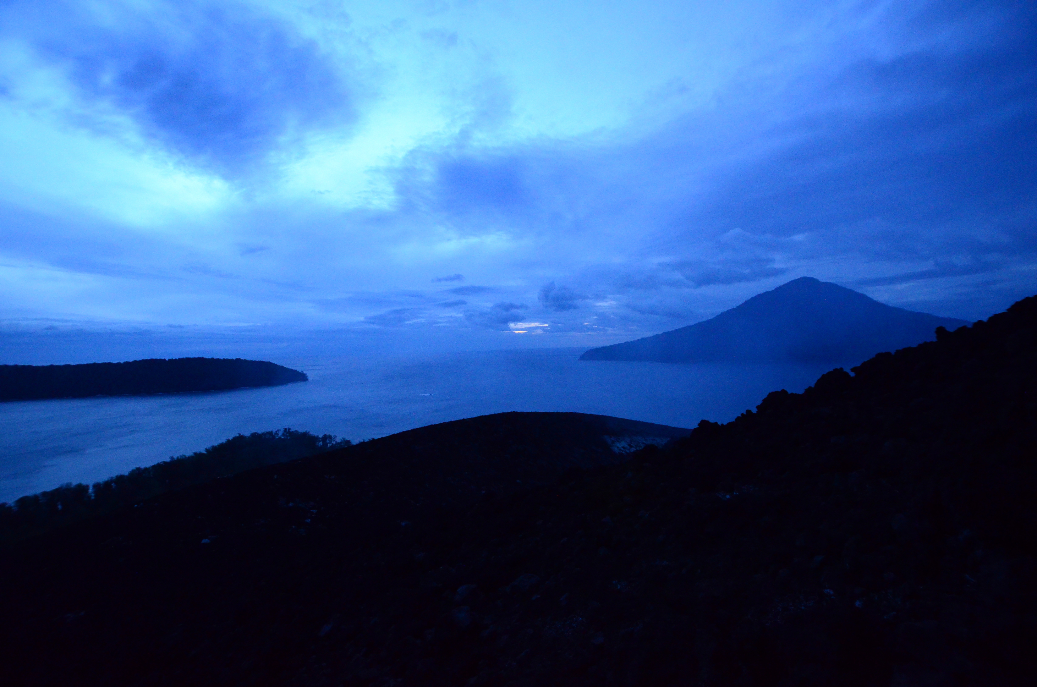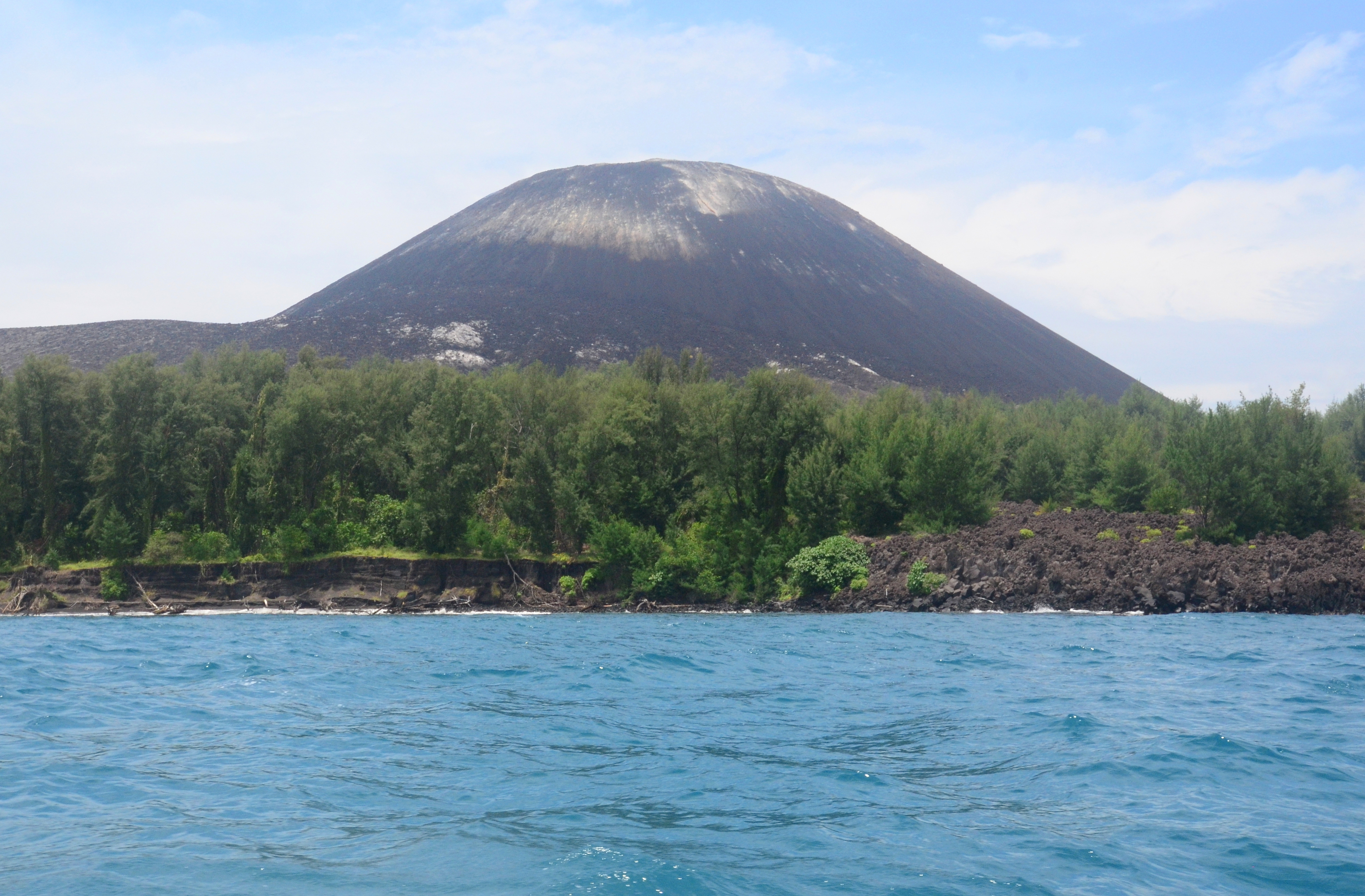 I am on Anak Krakatau ("Son of Krakatau"), a small volcanic island in Indonesia, between Java and Sumatra. A new island that rose above the sea in 1927. It grows steadily in the place of its father, Krakatau which disappeared from the face of earth in an explosion in 1883. That explosion killed 36,000 people in the region, sent tsunamis that were measured as far as the British Channel, and cooled the entire planet for a couple of years.