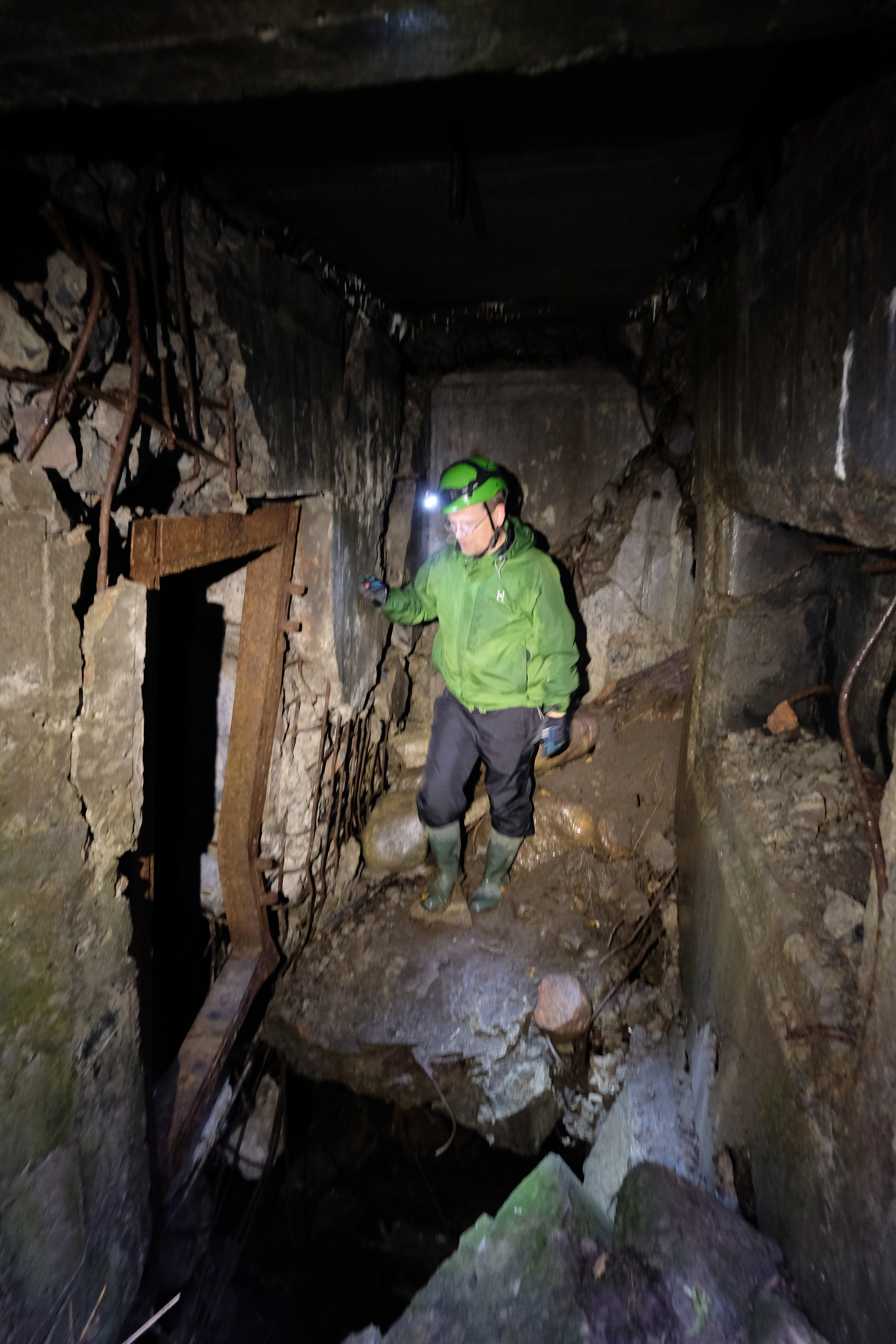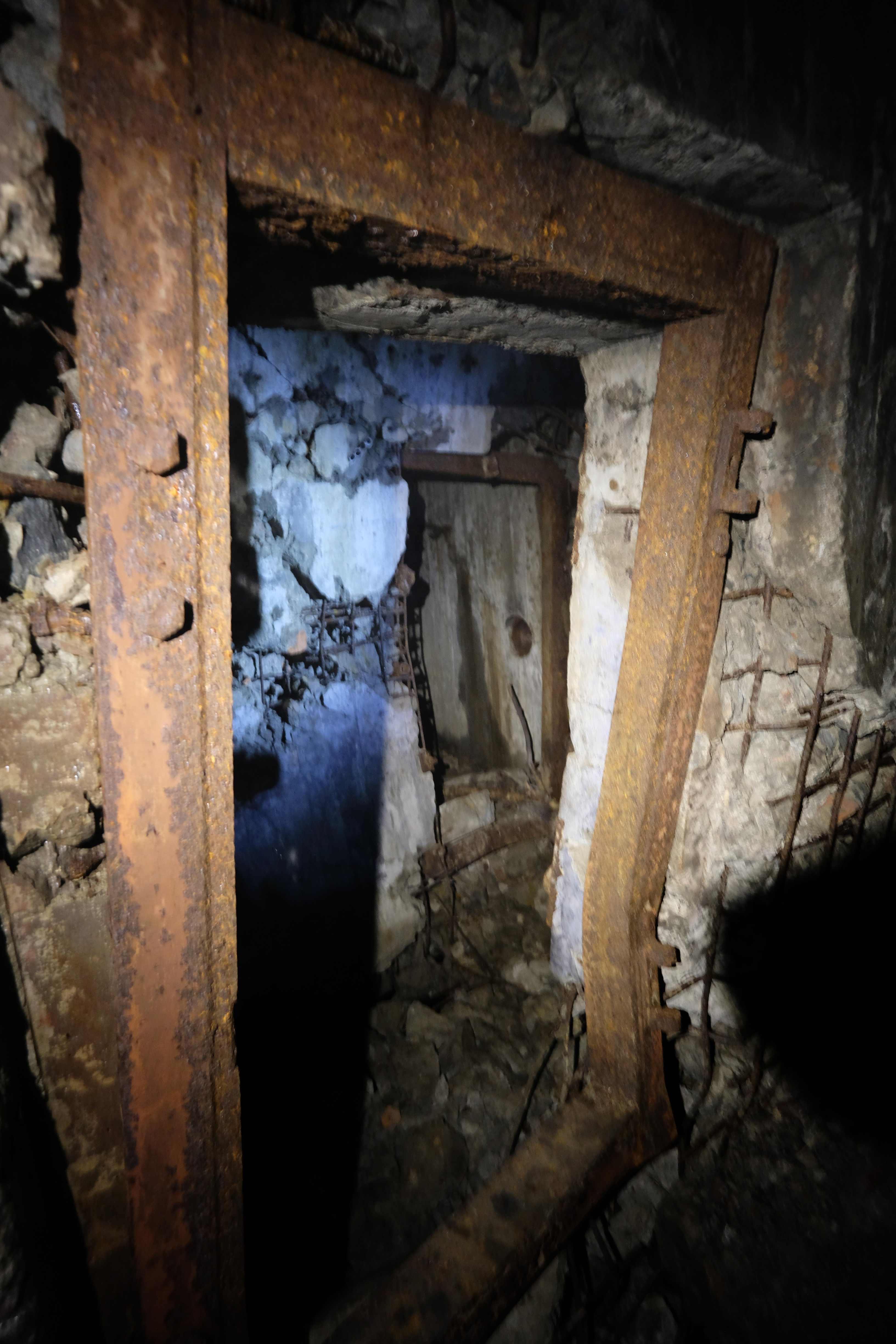We decide to peek inside, and I went through from one of the entrances to another one. But we did to dare venture to the lower level, as climbing back would have forced us to climb a wall of rebar mesh with concrete pieces hanging from it. And we could not enter the other rooms than the entrance hallway, because on the second floor the blown-up floors were merely loose collection of hanging pieces of concrete. I think it is possible to to tour the whole bunker, just that we felt it was too dangerous.