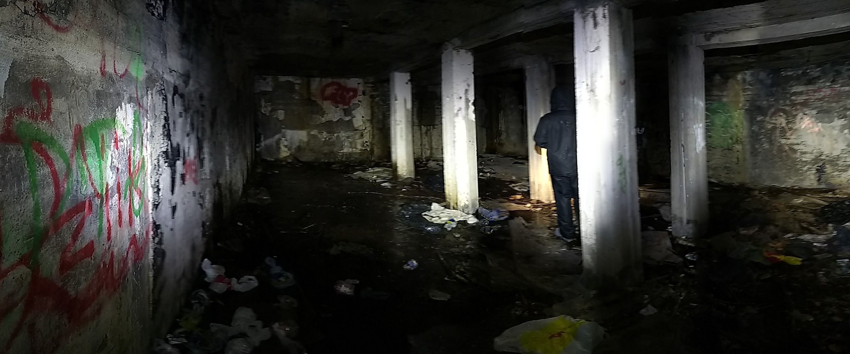 Still, there were two holes to enter the structure. However, inside the floor slabs were tilted in different directions, boulders and pieces of concrete about to slide down, walls made of broken pieces of concrete held together only by the rusted pieces of rebar.