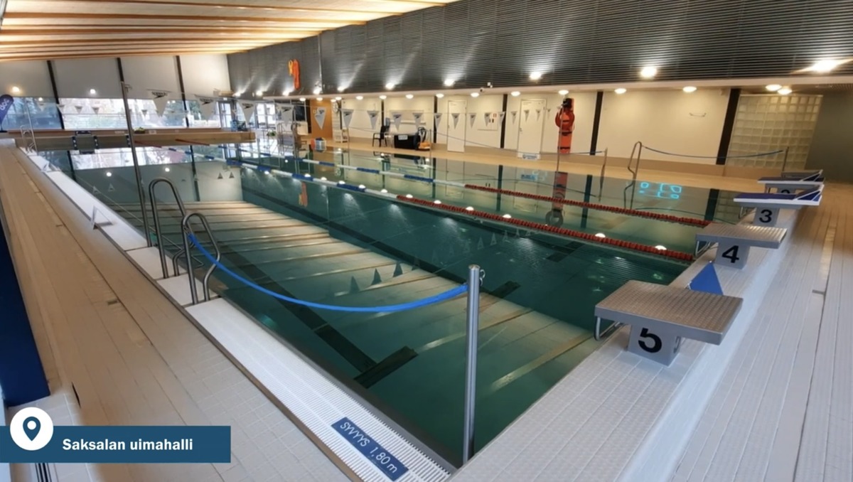 For more information, opening times, etc. see the home page for the hall in the Lahti website, here. See also the YouTube video. There's also a Wikipedia page here. As the Wikipedia page says, in Saksala there's in addition to the swimming pool a grocery store, pizzeria, barber and a grill kiosk.