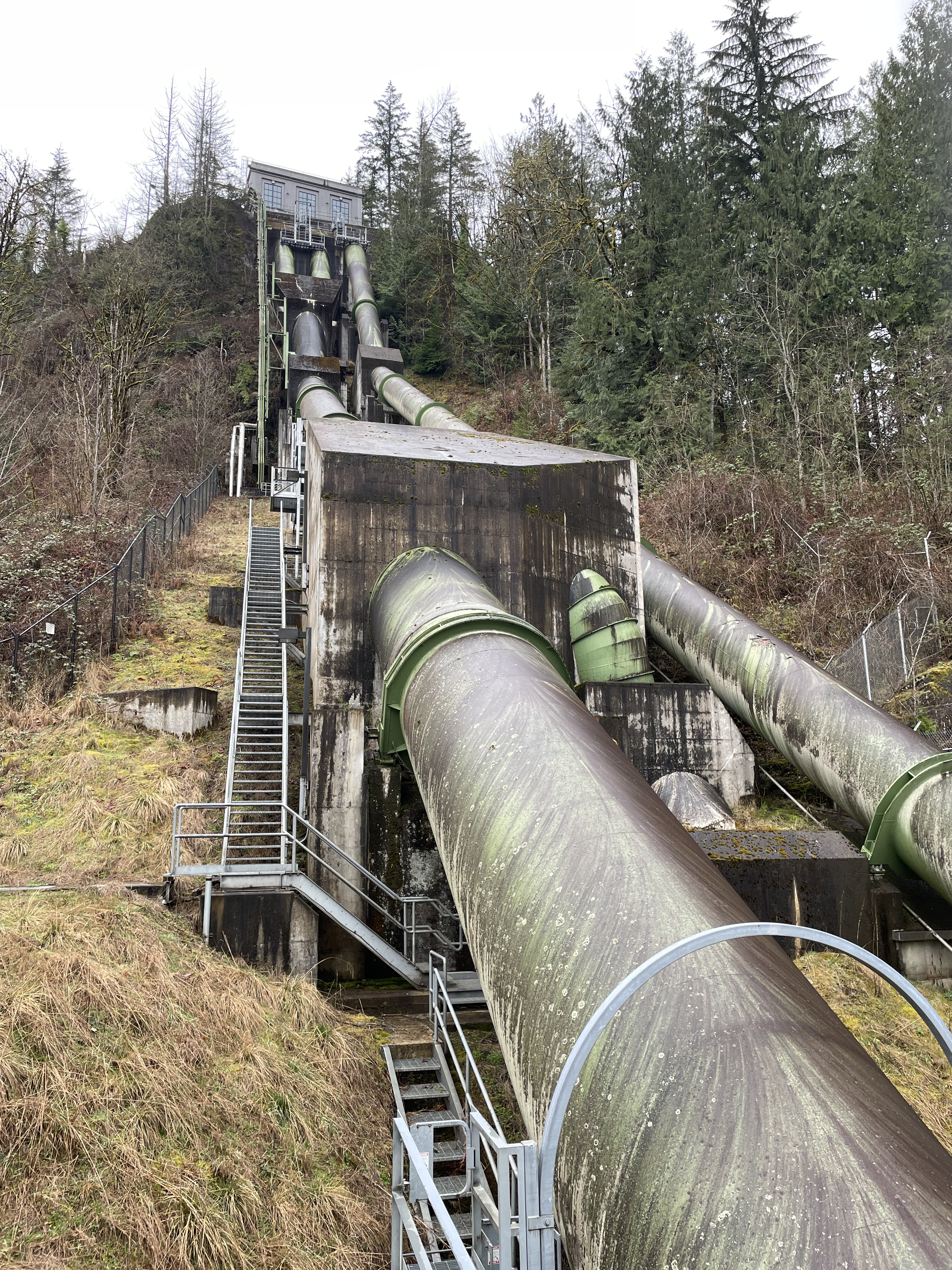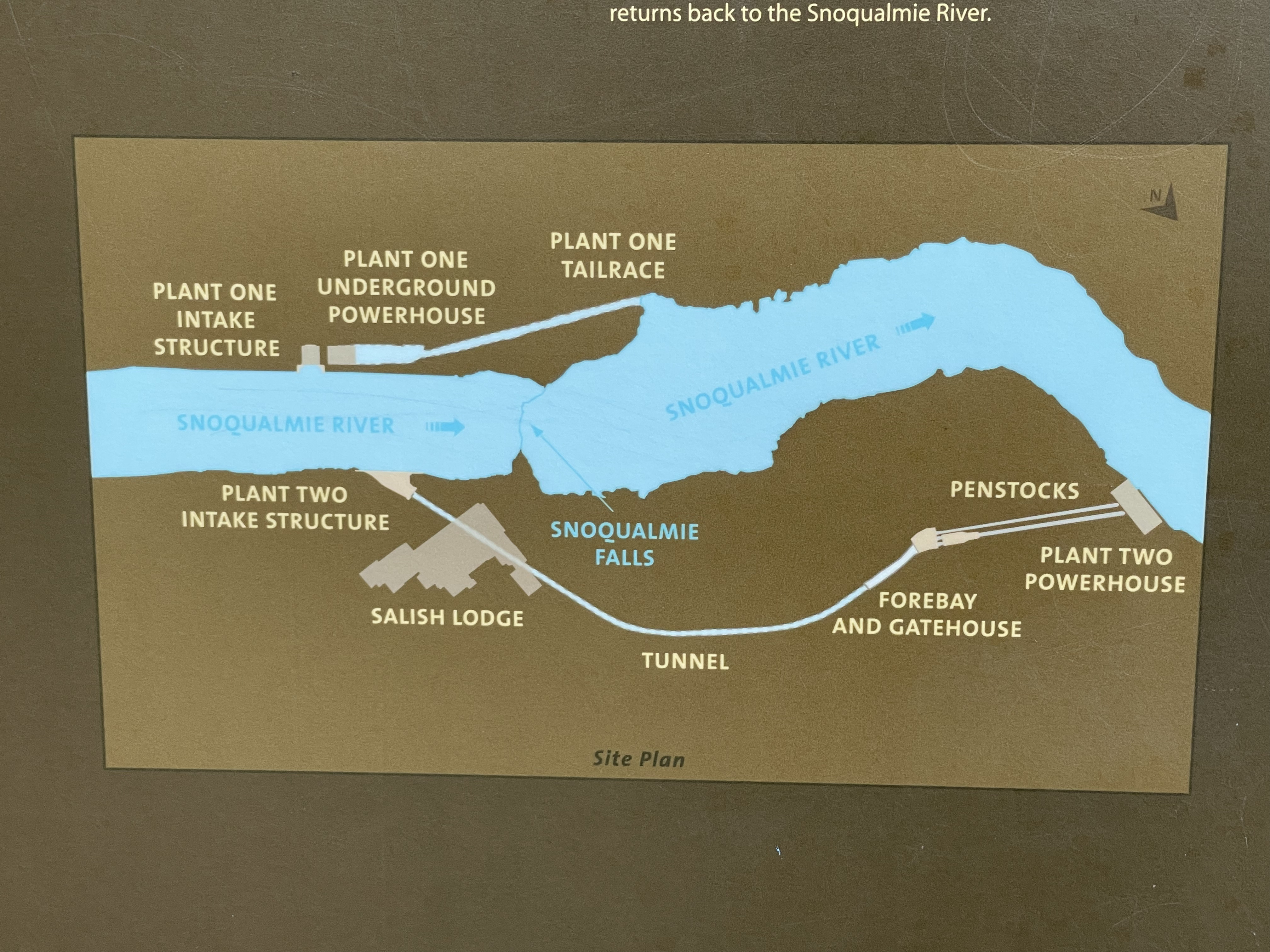 The falls continue to be spectacular, although some or perhaps most of the water is diverted to two power plants, one built inside the cliffs in 1899, and another one half a kilometer downstream in 1910. The plants are owned by Puget Sound Energy.