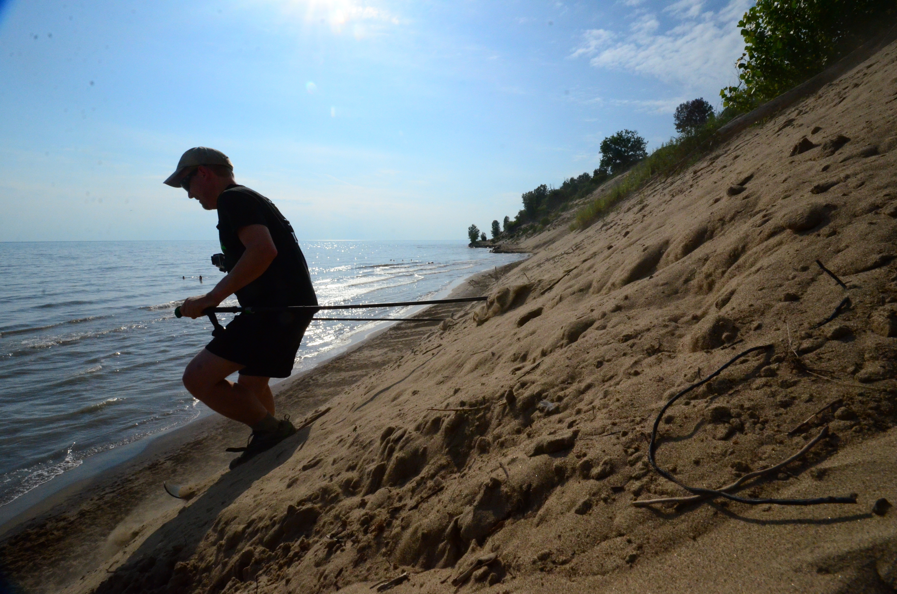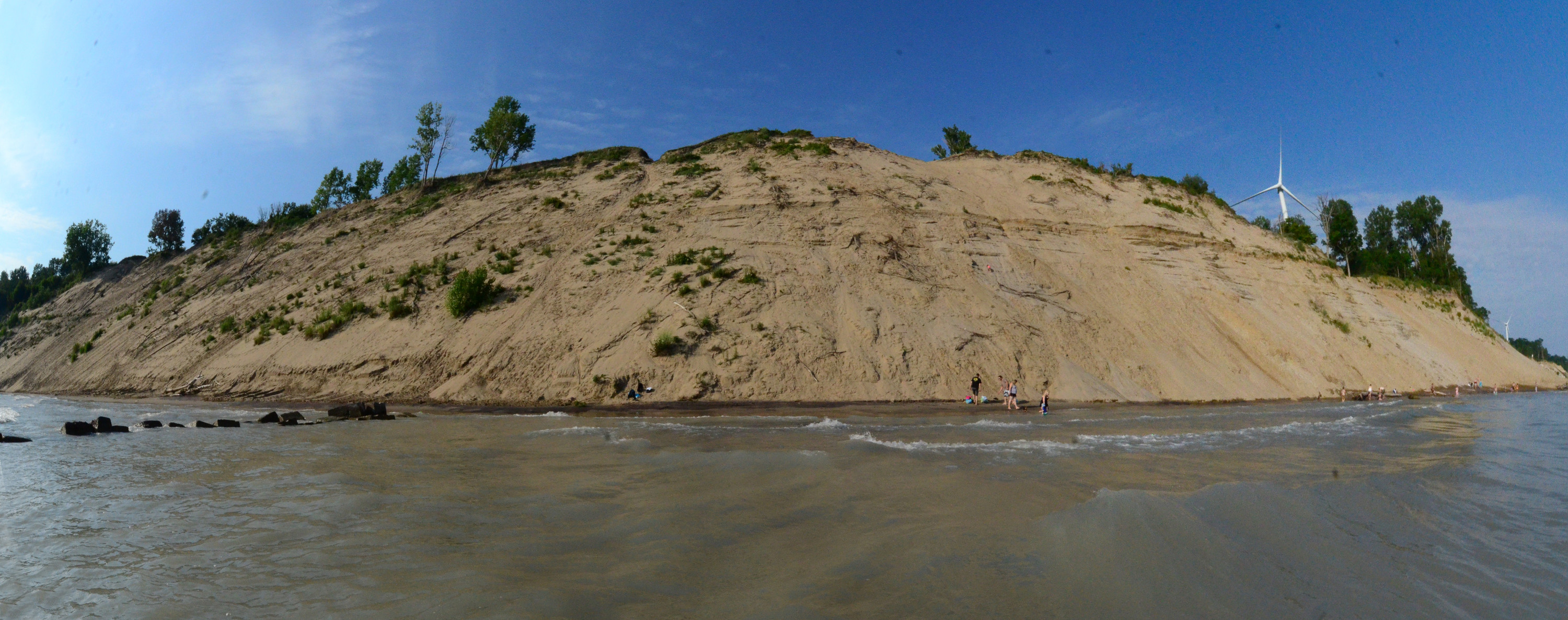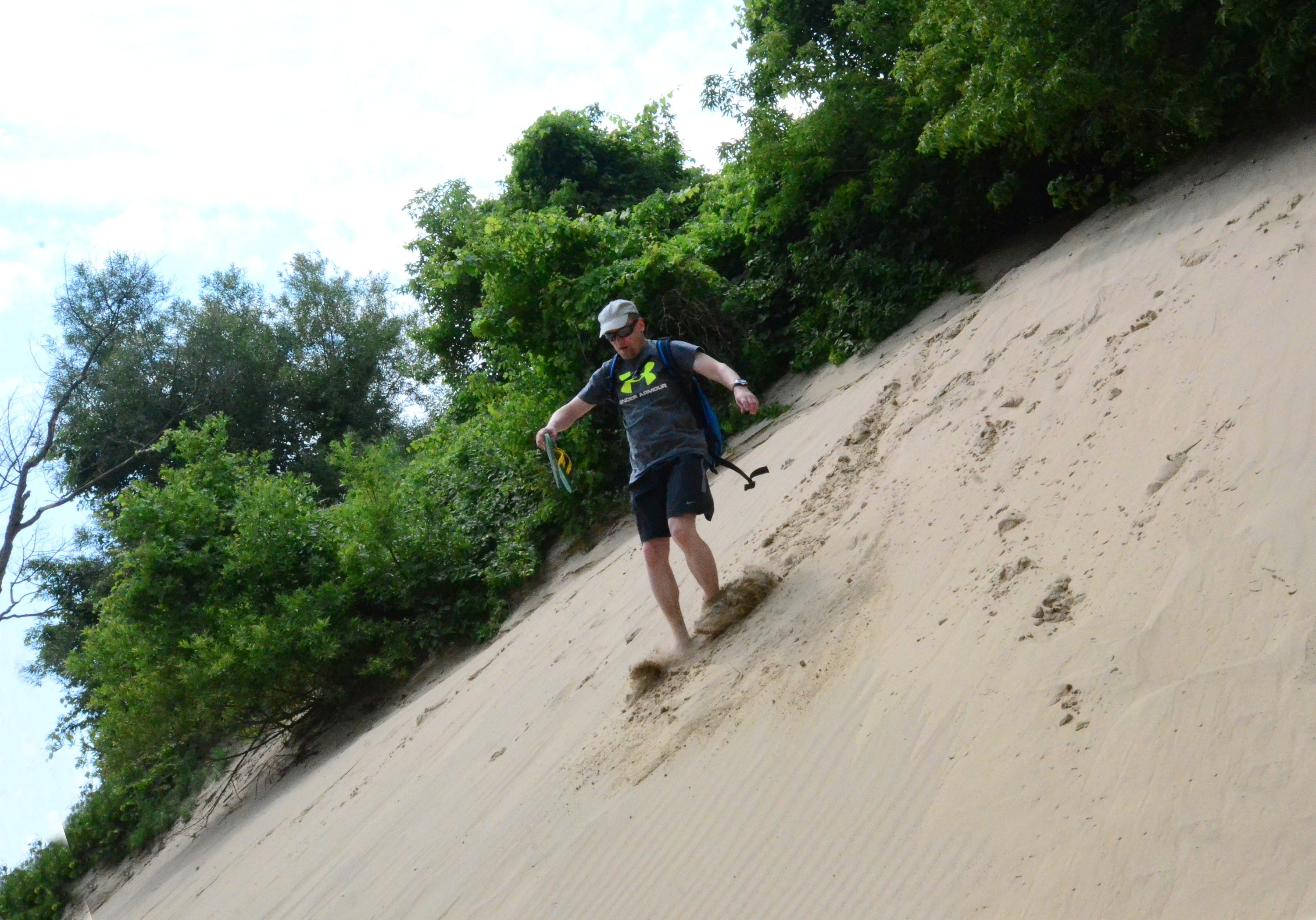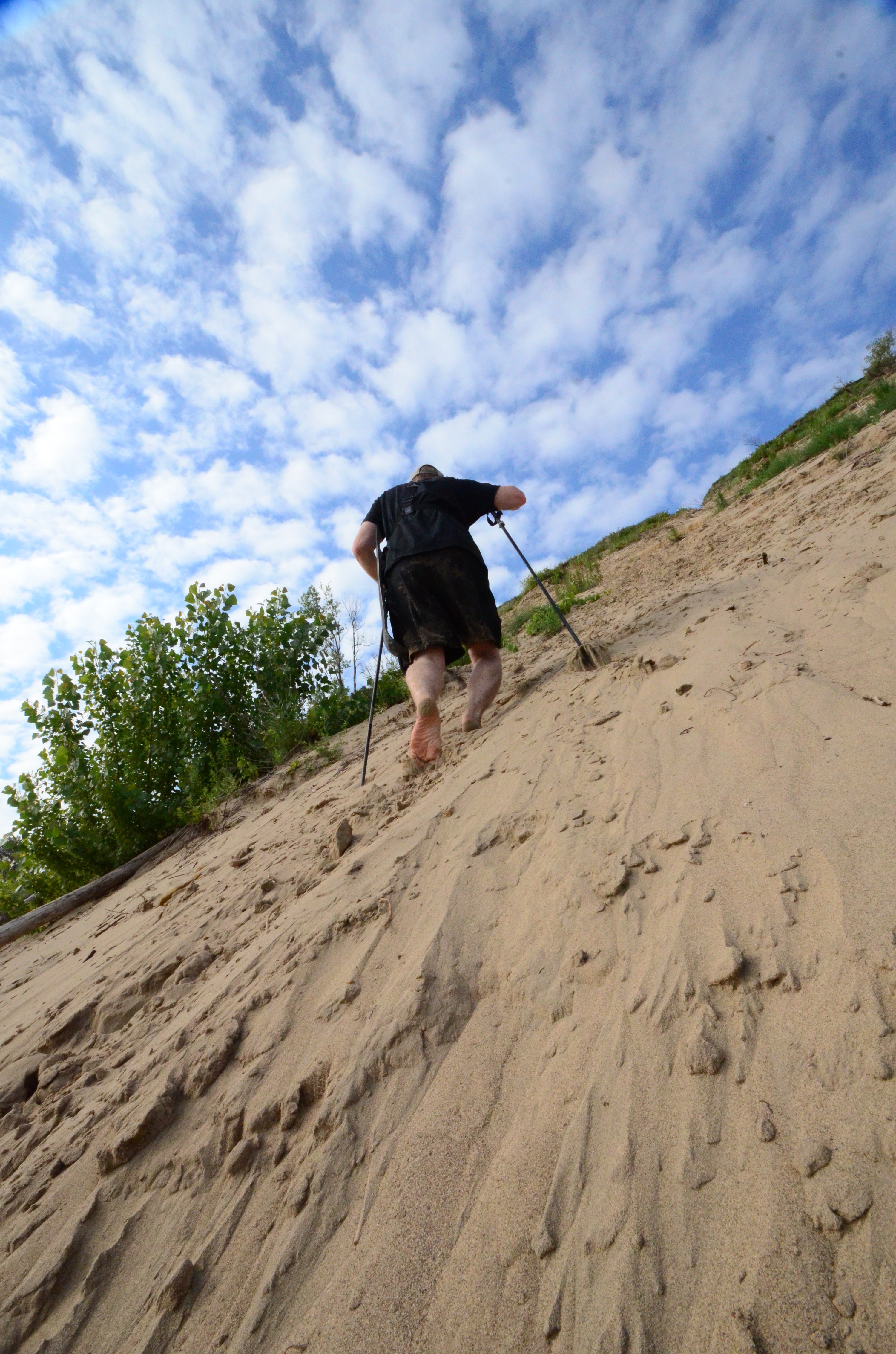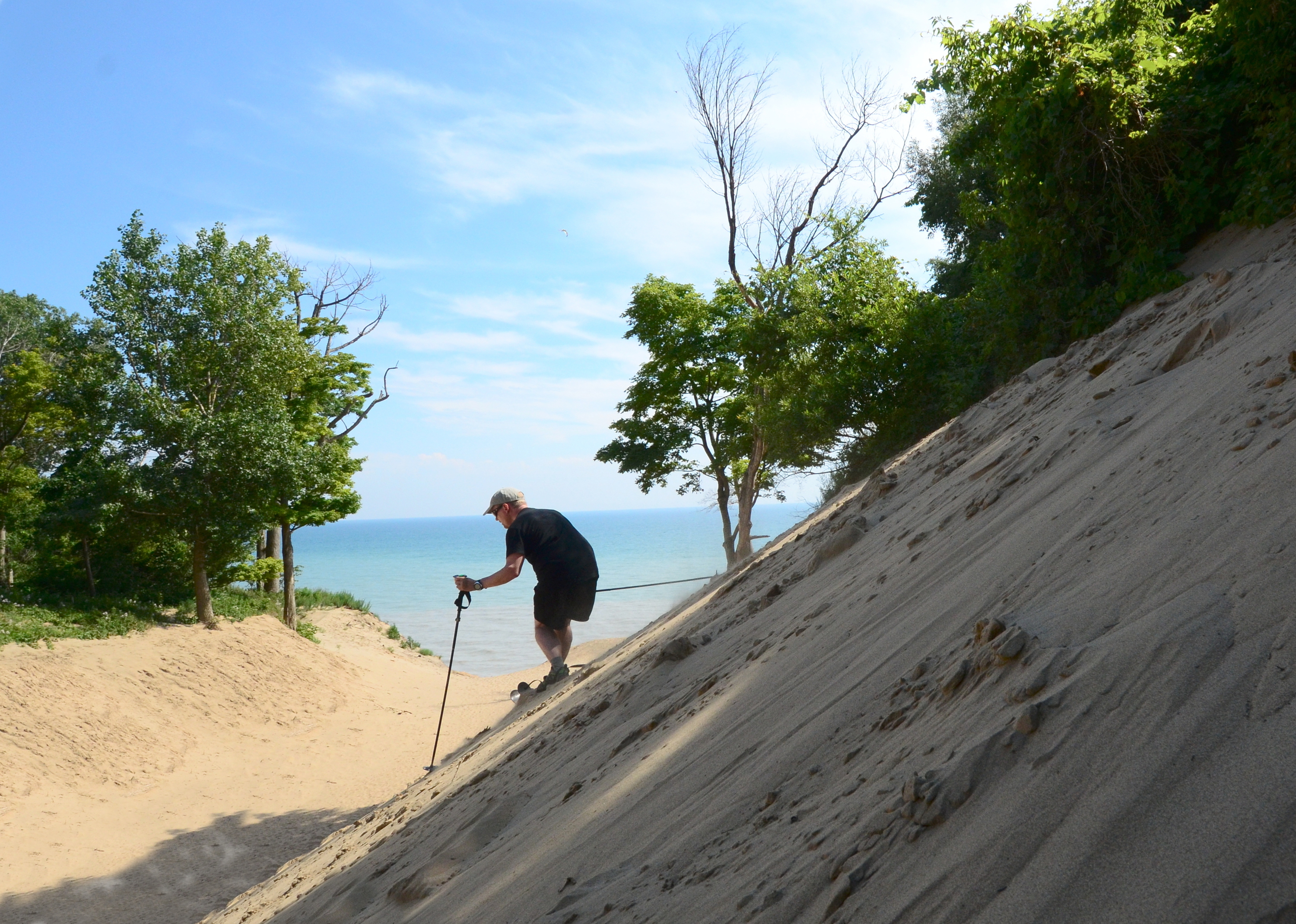 Sandhill is a massive, 150-meter high sand dune on the lakeshore of Erie. It hosts a camping ground, a beach, beautiful views, and - according to me and Patrick - a ski slope.