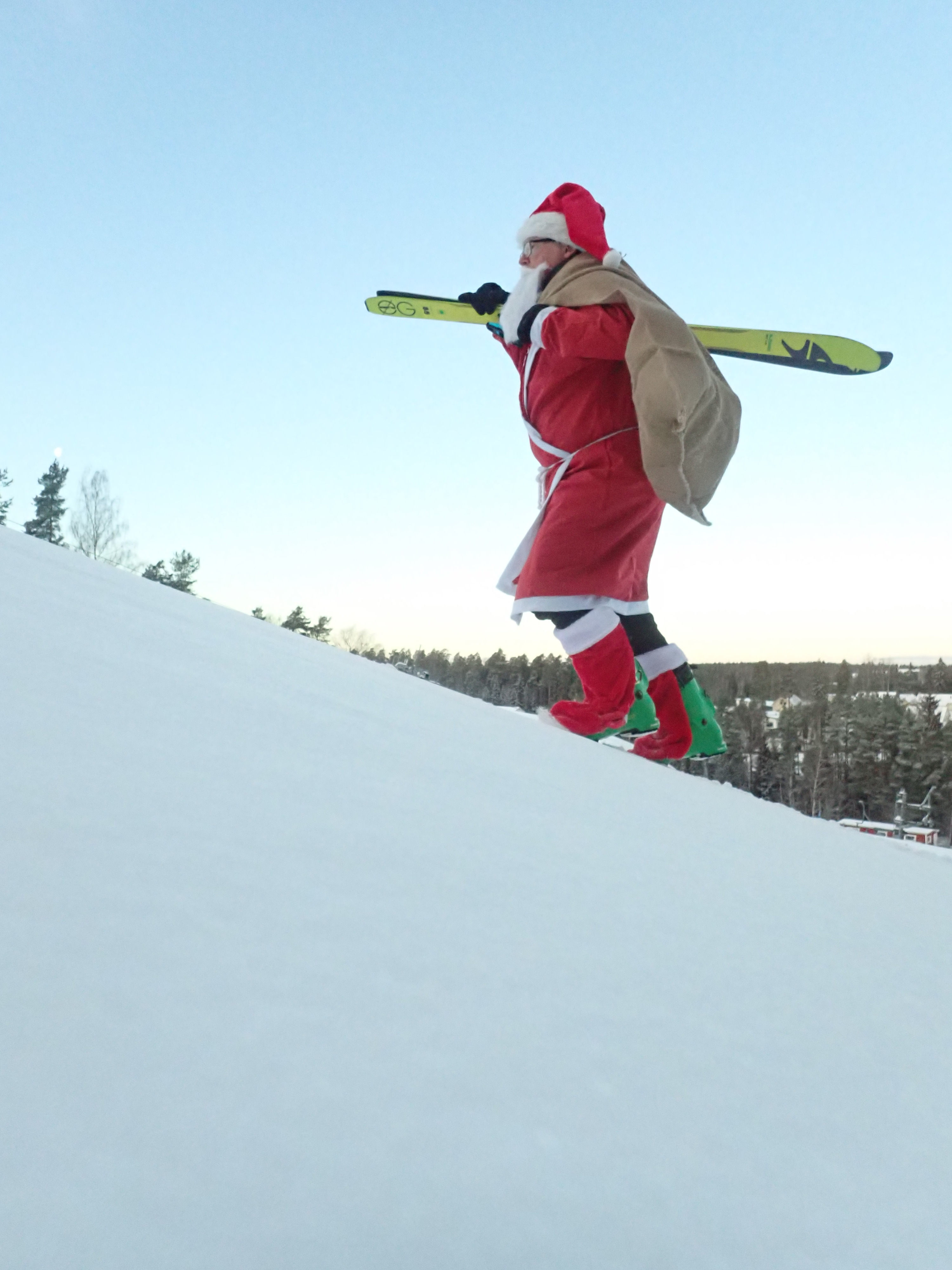 Time for the traditional Xmas eve ski run. Maybe the best one ever was on the steps of the cathedral in Helsinki, but skiing my local hill in Santa Claus costume and a bag of presents was also nice!
