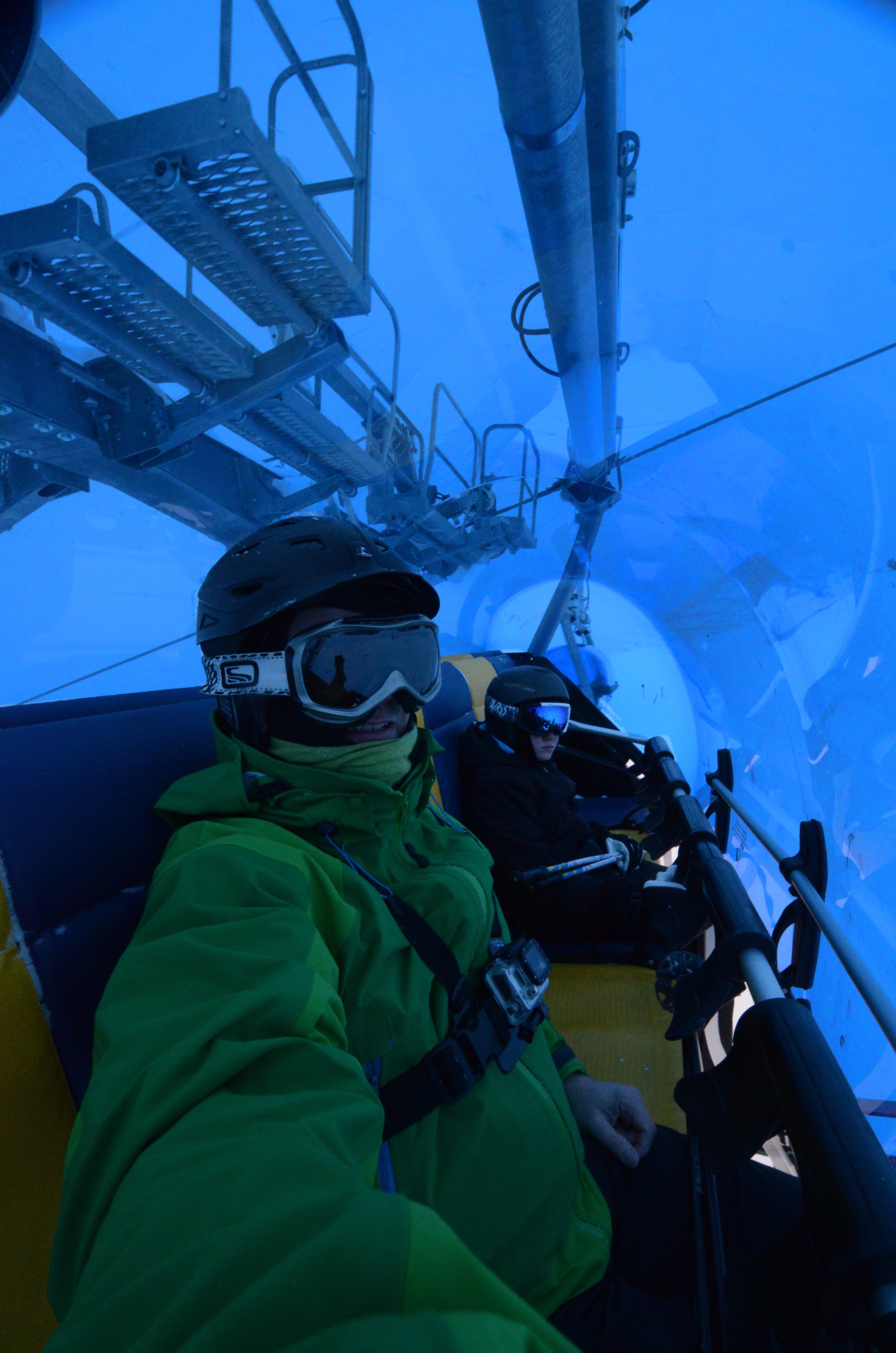 But we went anyway. A few minutes later the chairlift had taken us through the clouds, and we were standing on top of a 1100 vertical meter ski run in bright sunshine. A ski run where they had held the olympics. Twice. Talk about false first impressions. While this particular ski hill was still smaller than the other ones that we visited, it stands in my mind as the nicest experience of our time in Innsbruck and Stubai valley. Partly because the hill was almost empty. But mostly because that one open ski run - the one with 1100 meters of vertical - was completely on solid, steep ice.