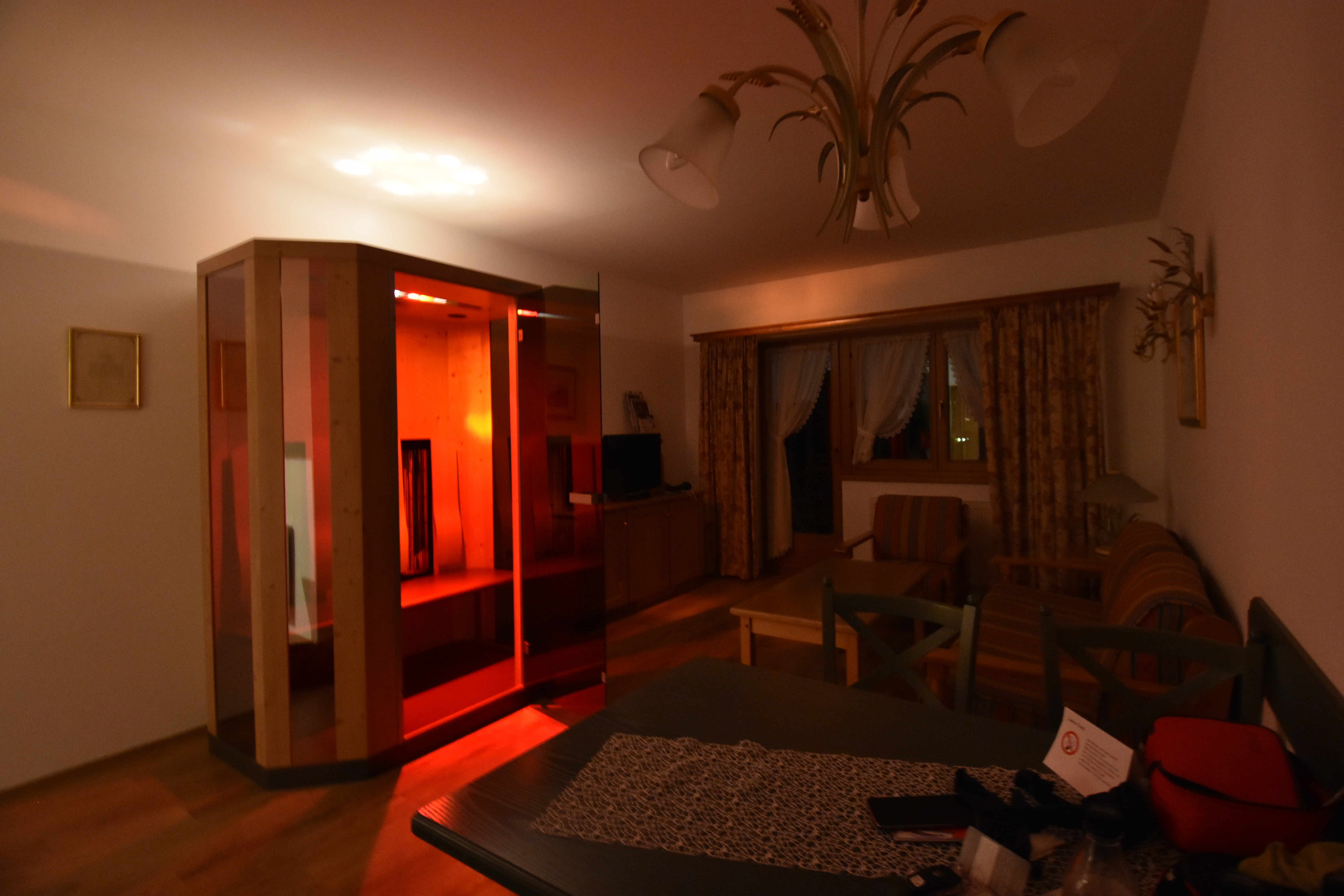But it was actually nice. I was staying at the Cordial Golf & Wellness Hotel Kitzbühel, and they had a nice sauna & pool area "Römerbad" downstairs. But in addition there was a the infrared box in my room, and it was actually good to stay in there for 10 minutes after coming back from the slopes. Warms up your back...