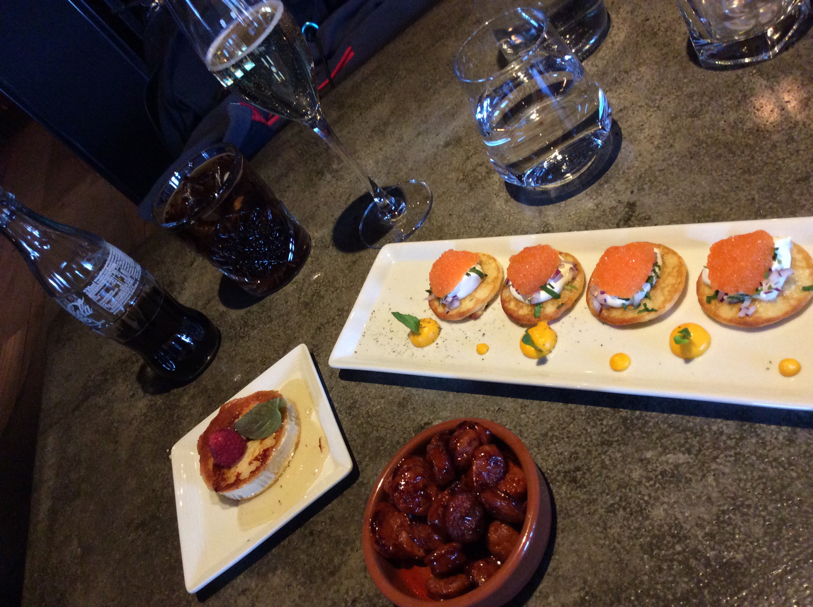 What's more, I was looking for dinner, and found it in the same building. The Champagneteria Montana serves tapas, and, you guessed it, Champagne. It is one of the best restaurants in the area. I can warmly recommend a glass of ́R ́ de Ruinart Brut with caviar from Kalix, Sweden and some blinis. And a diet coke, of course 😁