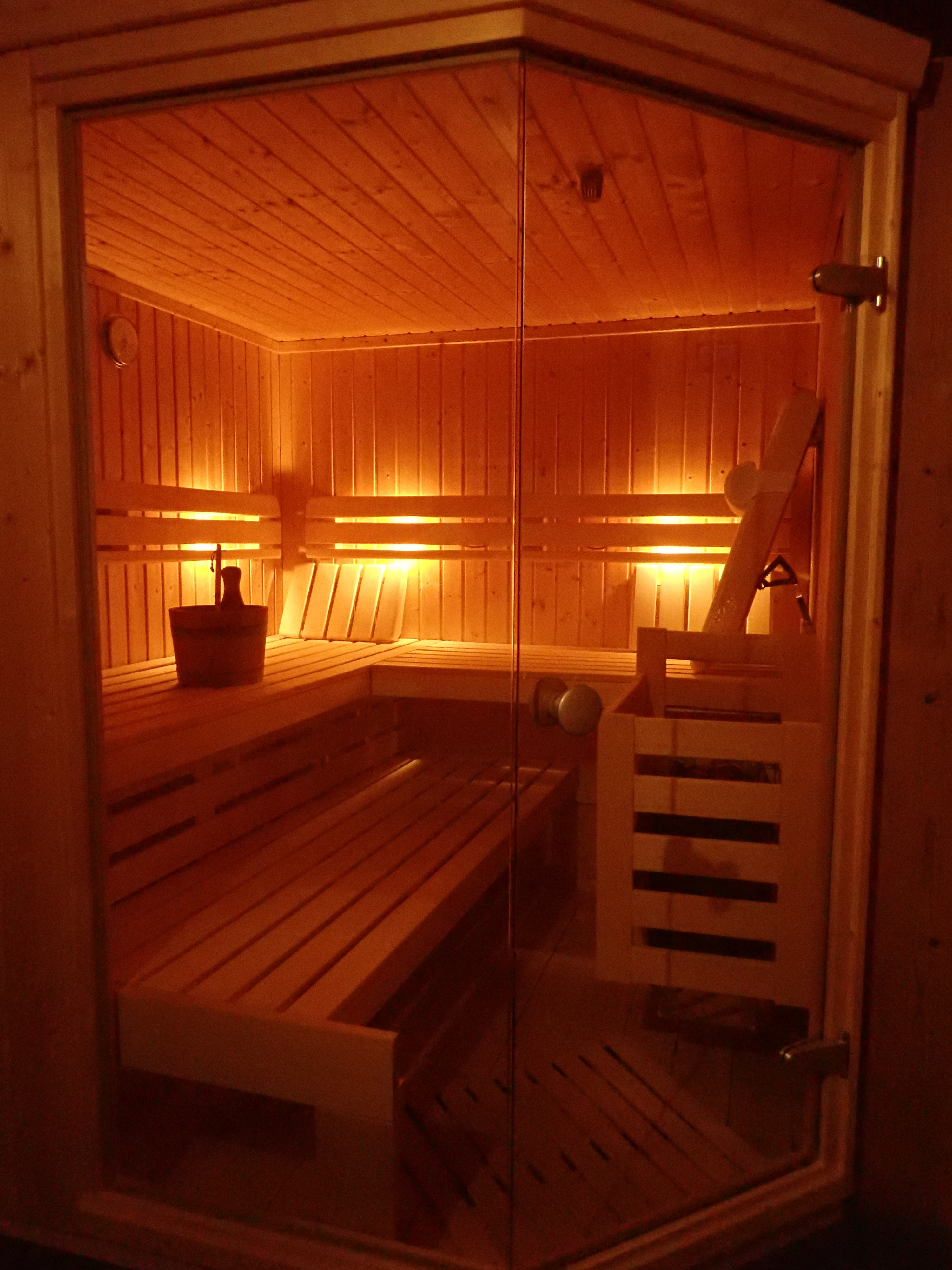Their sauna is a separate wooden cabin next to the hotel building. Inside the cabin there's a dressing room and then a inner "box" that houses the sauna. The sauna was exactly right hot, clean, and I got to go there without any of the other guests.