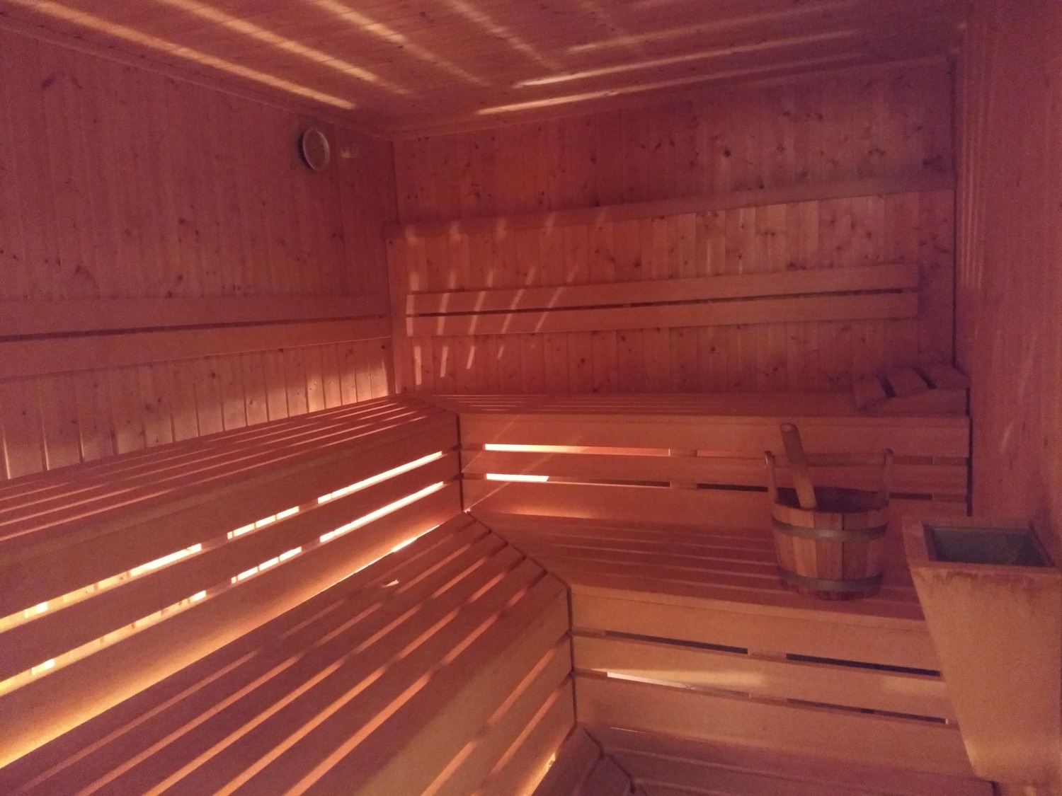 There were two saunas, a steam room and. then a Finnish type sauna. Or rather, a Swiss type sauna, with the heater under the benches, and pouring water to a small bucket on the wall will feed the heater.