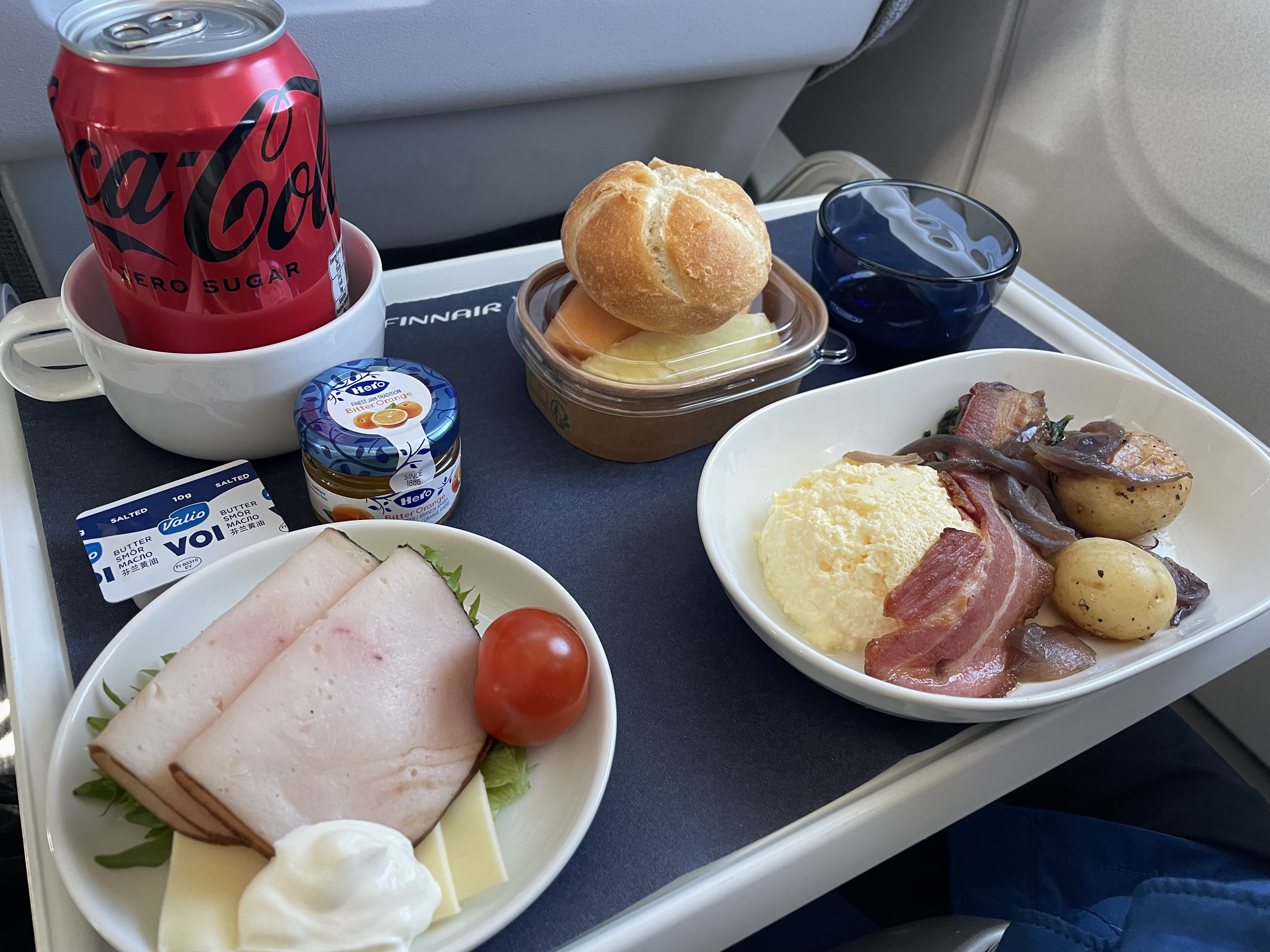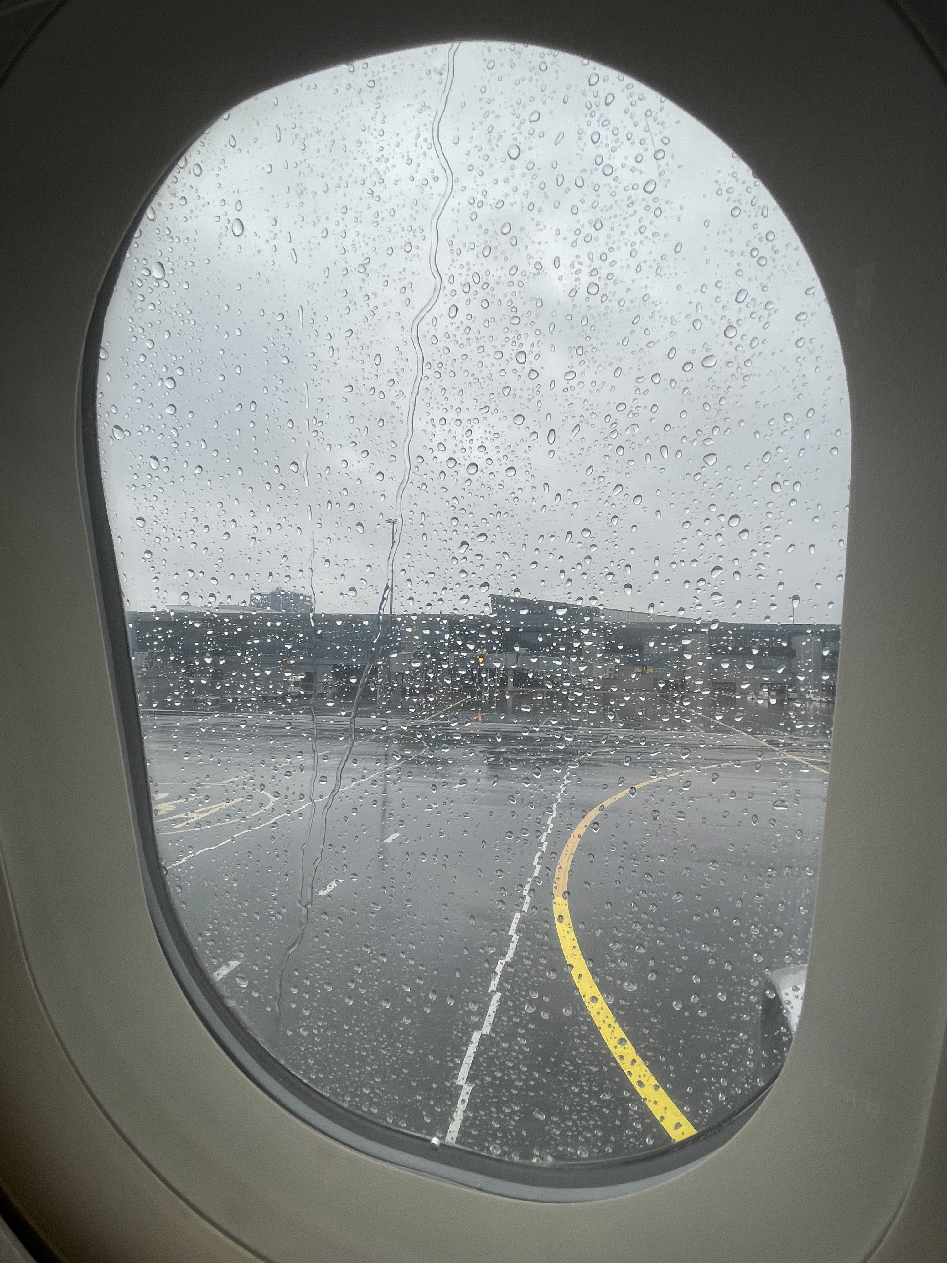 Weather was miserable (unlike in my destination:-) ) but inside the airplane it was nice and cost, and there was a good breakfast. I had used a soon-to-expire upgrade voucher... could have been my last voucher, I won't reach status next year. Enjoy it while you can, I guess.