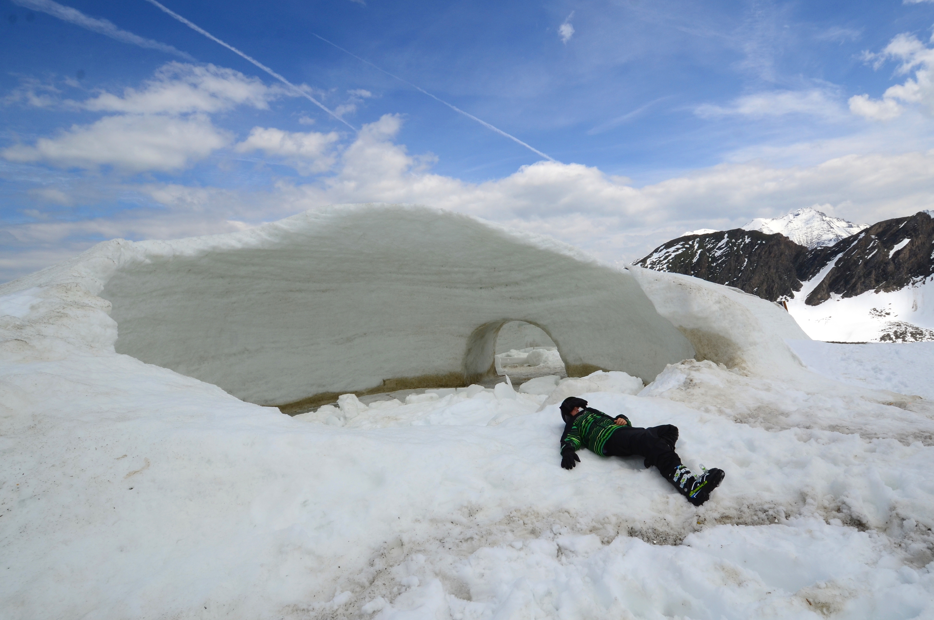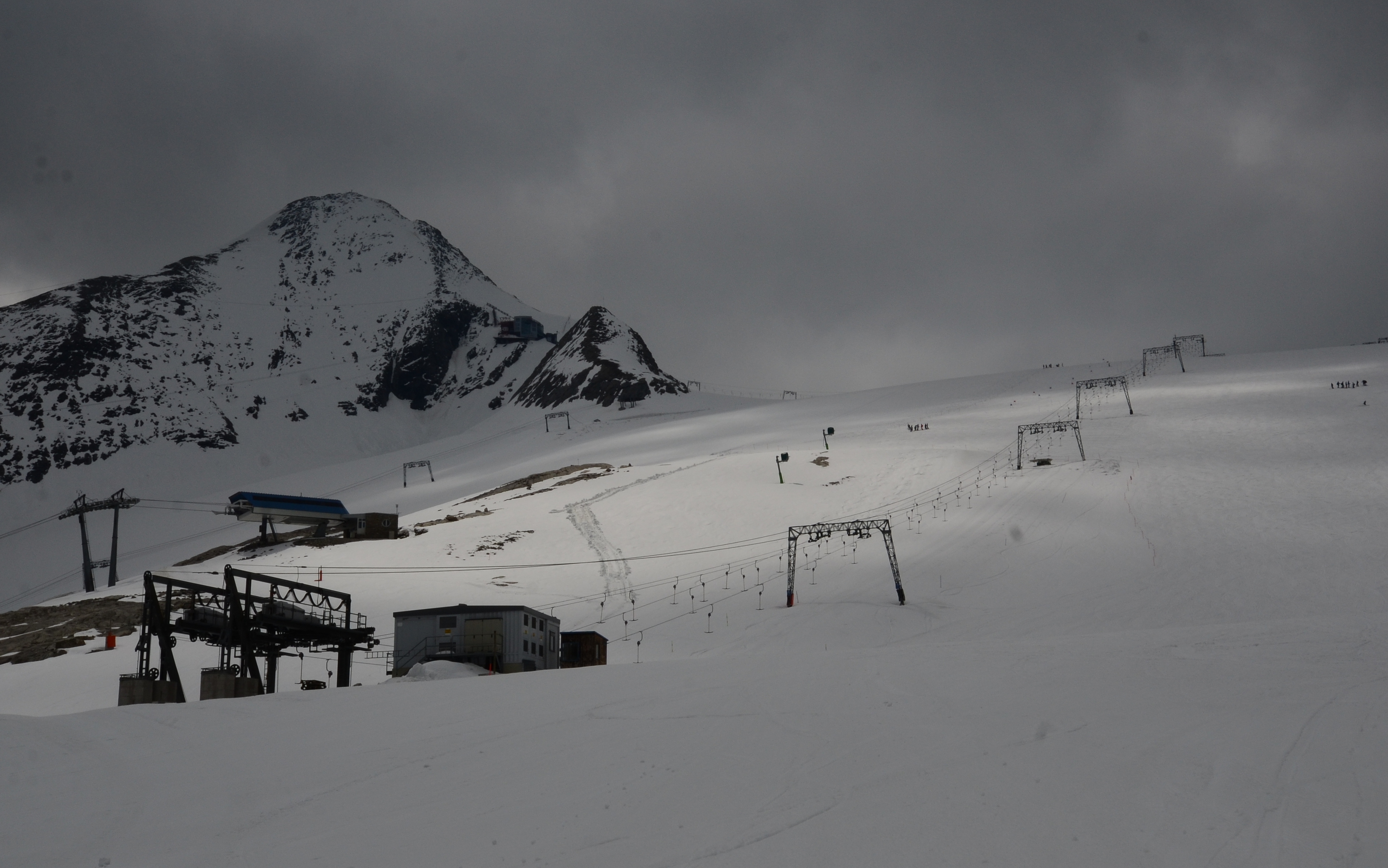 The area feels relatively flat, however. And due to its relatively low altitude - 3000 meters - the snow seemed softer than on some of the other summer ski places that I have been to. I usually enjoy the early mornings when the slopes are still hard ice. Not that skiing soft snow is bad - I like it too. But it tends to stick to your skis and make you feel like you are falling. Particularly if you go outside the tracked area, unless it is steep enough.