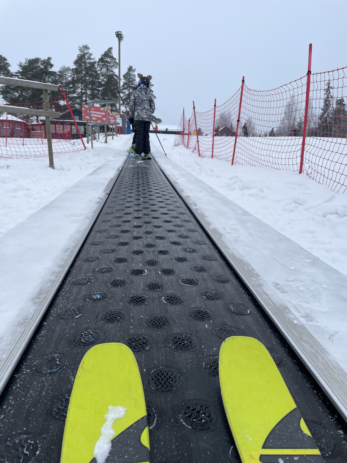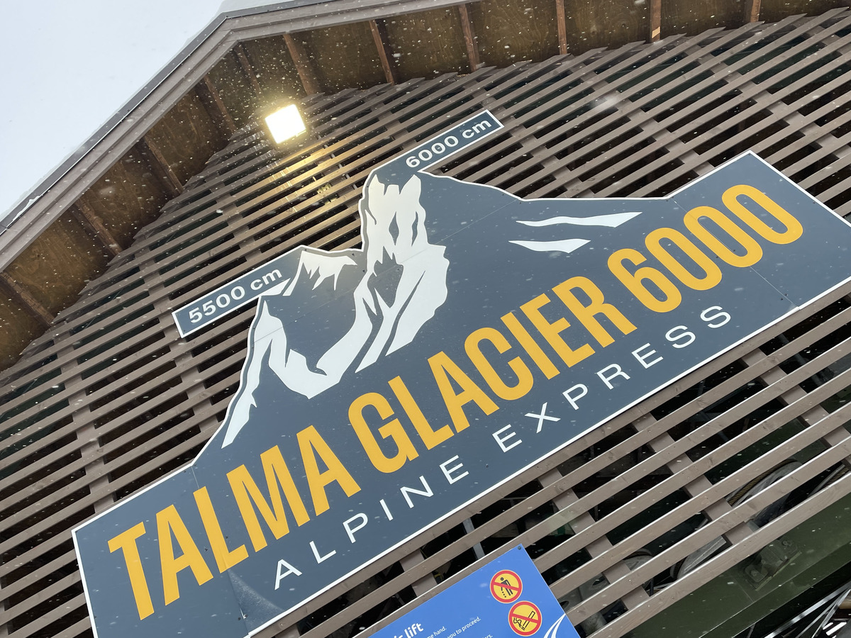 It was *very* cold day. Around the 4000 cm level, wind started hitting our faces on the new lift. Brr! I had to eventually head to the restaurant. To get back from the main lifts area, in Talma you have to take a button lift or carpet lift back to the lodge and parking area. I chose the carpet lift as it didn't have a long line: