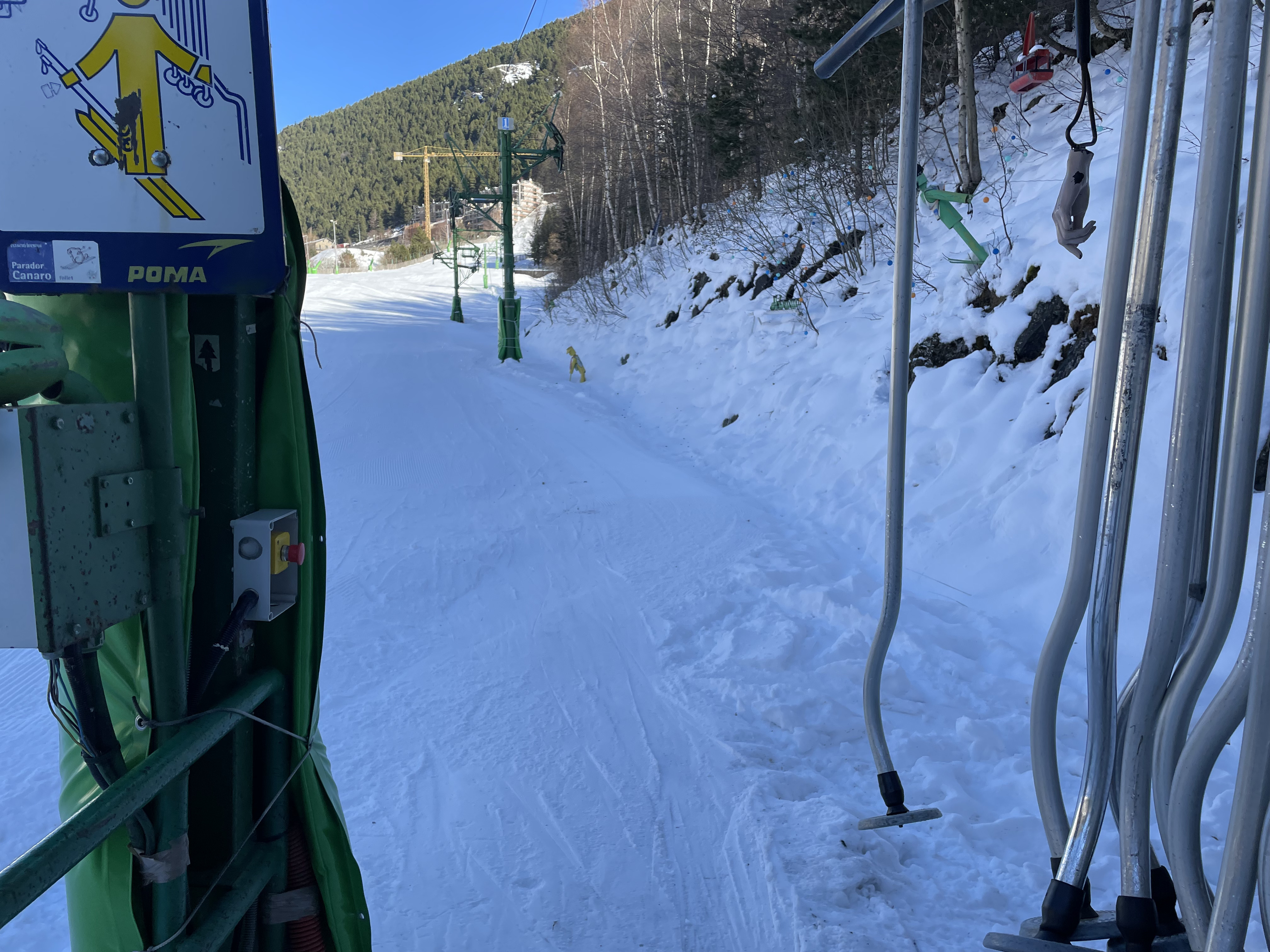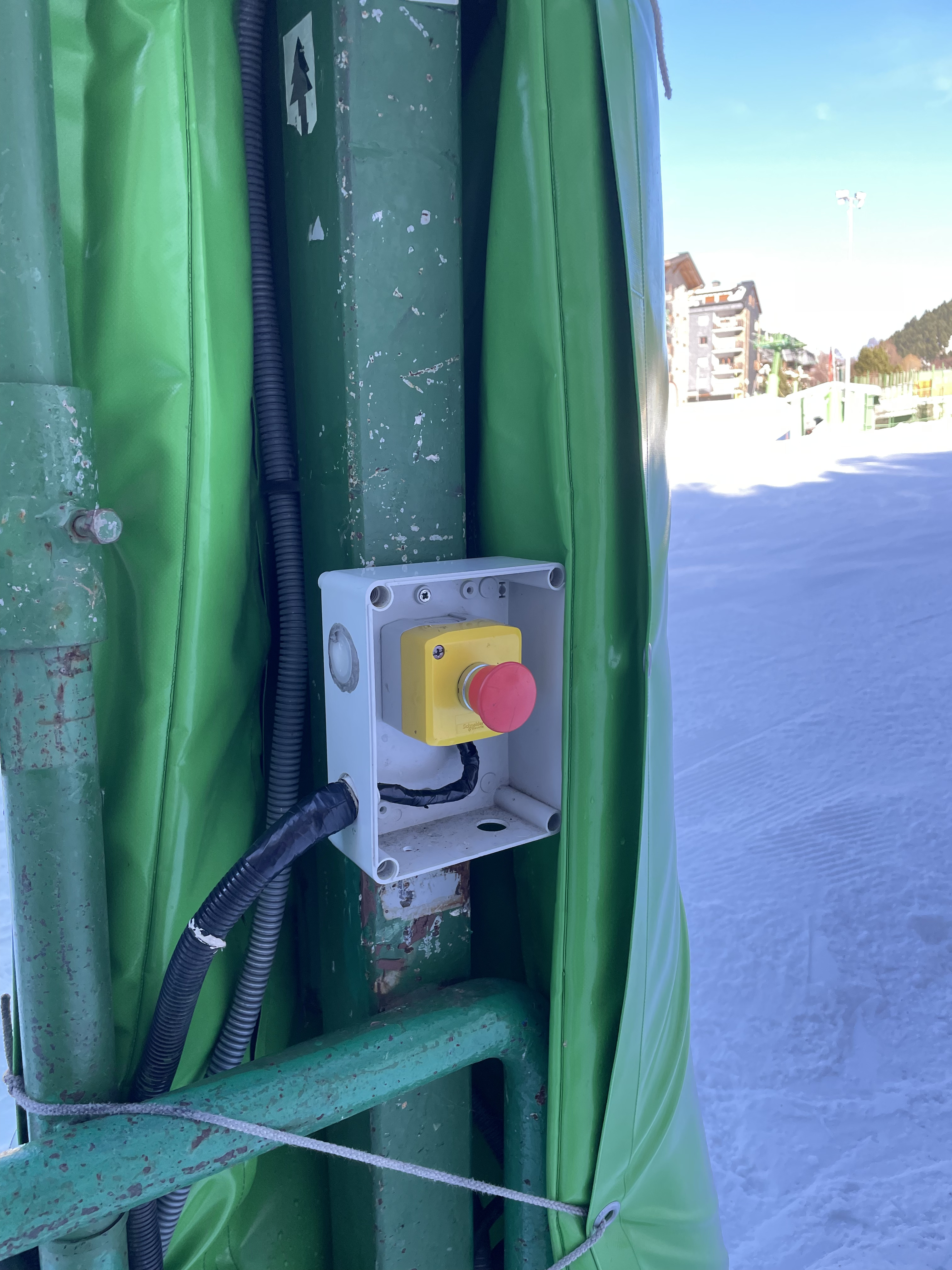 I did get confused on the beginner lift though. It was one of those button lifts where the sticks stay on the starting point until they are launched by the skier. Usually this happens by pulling the stick forward or tripping a gate with your feet. But here... you had to press a big red button in a yellow box. I ignored it because it seemed like one of those emergency stop buttons that you also need on every ski lift. But it wasn't, it was the start button. Is this common? I have not run into it before...