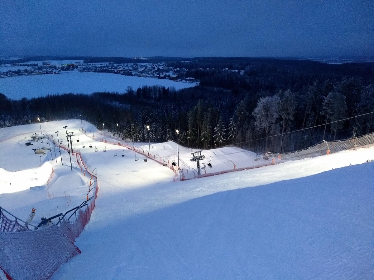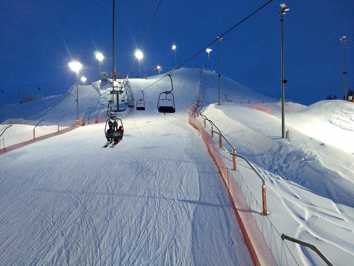 There are five lifts and 2.8 kilometers of pistes (see skiresort.info). The reports about vertical differ, skiresort.info said only 55 meters, other sources indicated initially 76 meters but later extended with added dirt at the top to 116 meters. I didn't measure the vertical but to me it felt more like the two latter numbers than the first ones. The resort also isn't at a high altitude, it sits just above 200 meters of altitude, so you'll have to watch snow situation if you plan to visit here.