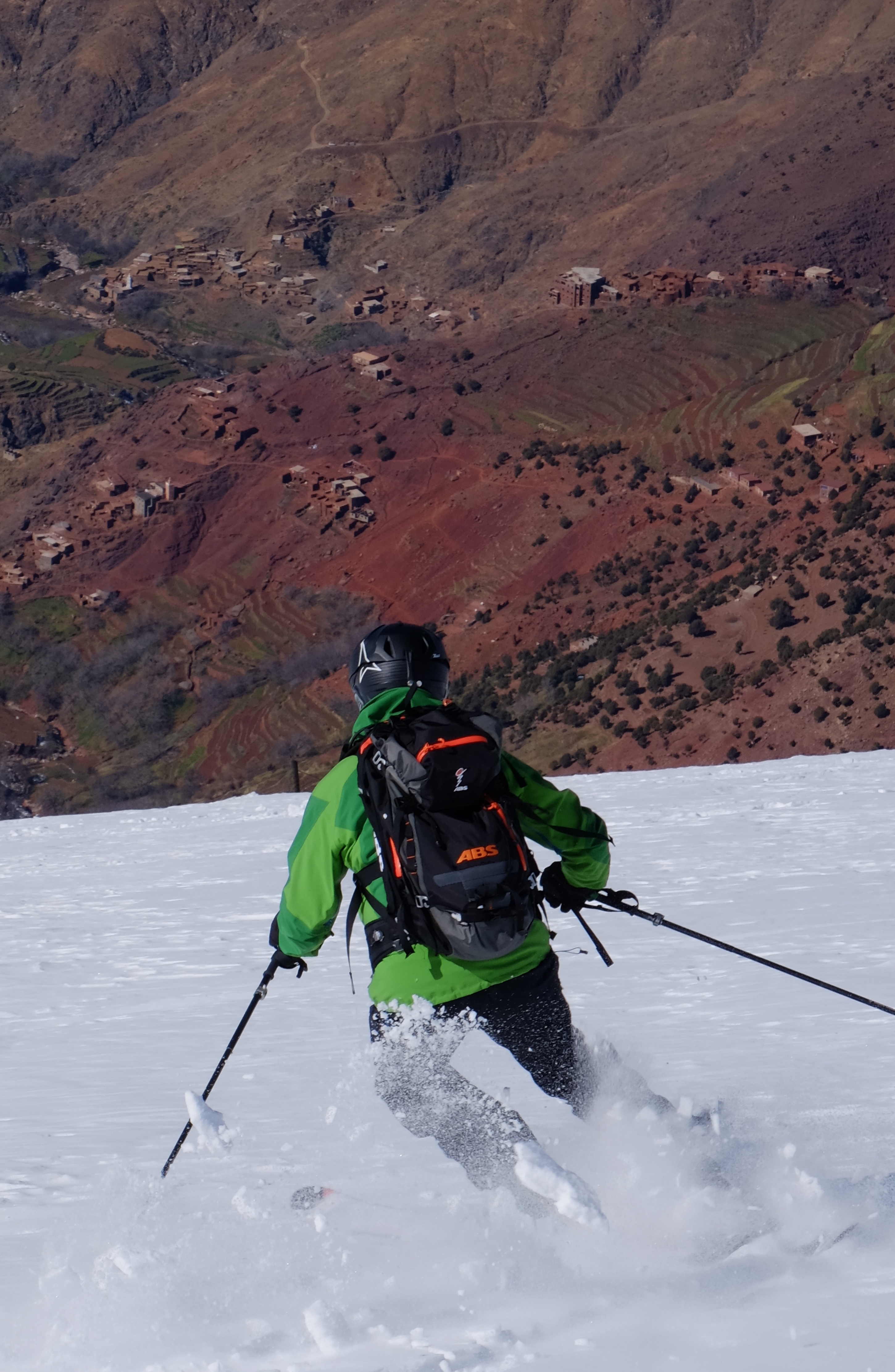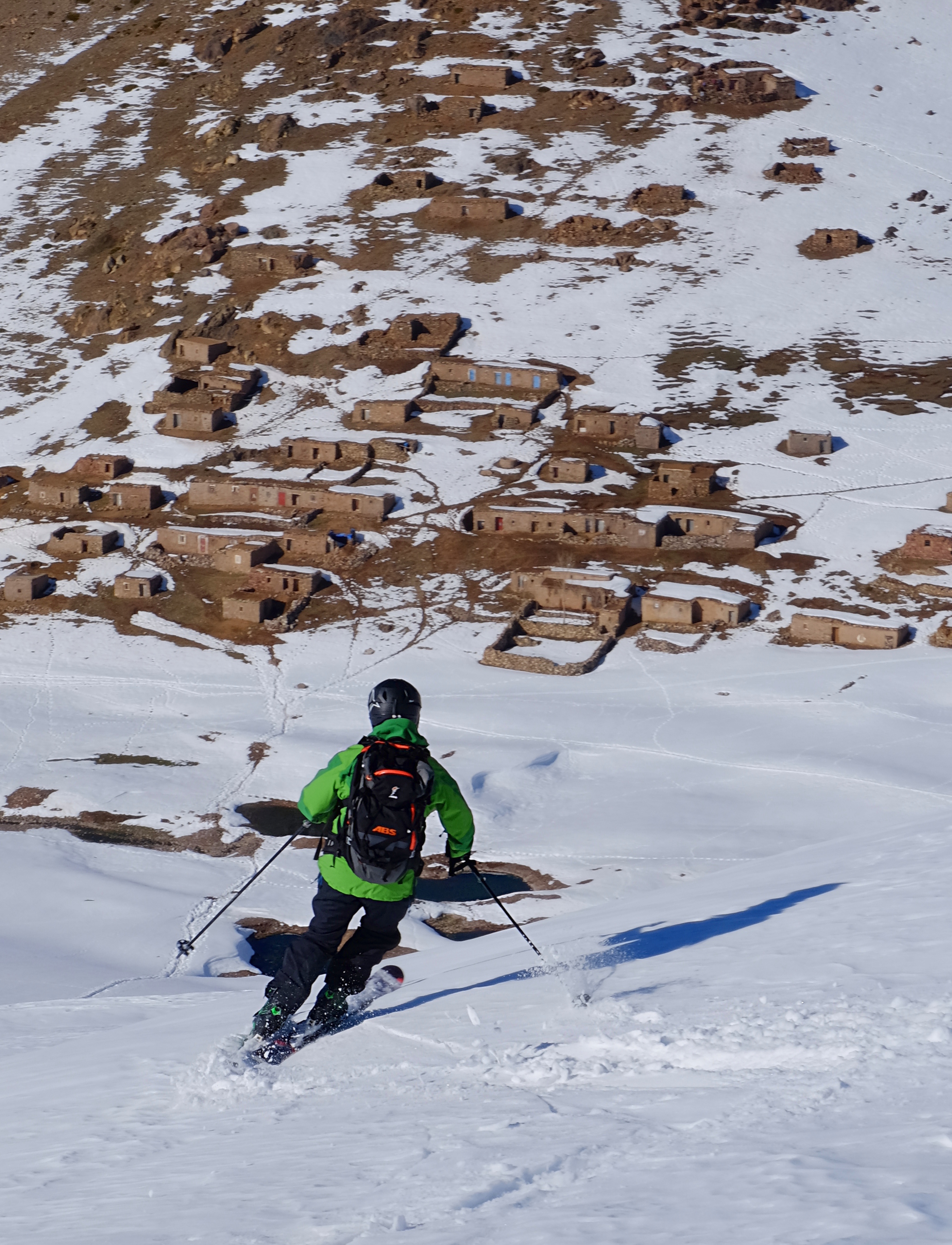 But the most wonderful thing for me were the views. We were skiing on white snow, while the red mountains and hills falling below us were all red, with traditional Berberian villages often visible under us.