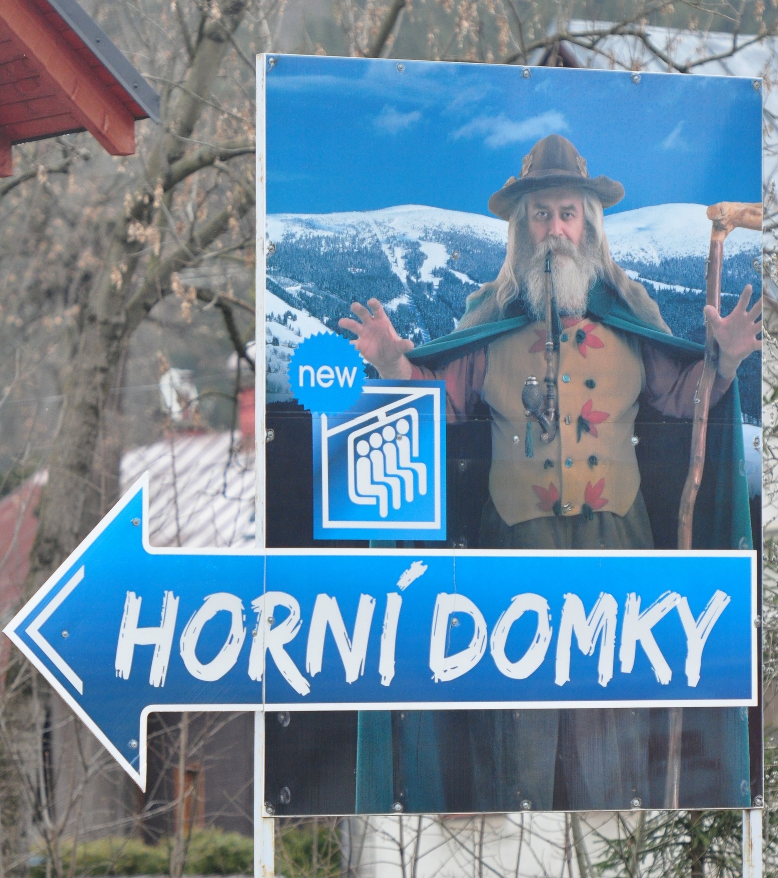 Advertising gone wrong, very wrongYesterday I skied at the Horny Donkey ski area. Well, Horni Domky. This is a small ski area in northeast Czech Republic near the border towards Poland. The highest ski lift goes to 1315 meters and maximum vertical is 690 meters. While small, the area modern, has two fast high-capacity chair lifts, and generally offers nice skiing. The ski area is a part of a group of nine ski areas in the western end of the Giant Mountains: Skiregion.cz. Together these areas have 36 ski lifts and one lift ticket works on all.