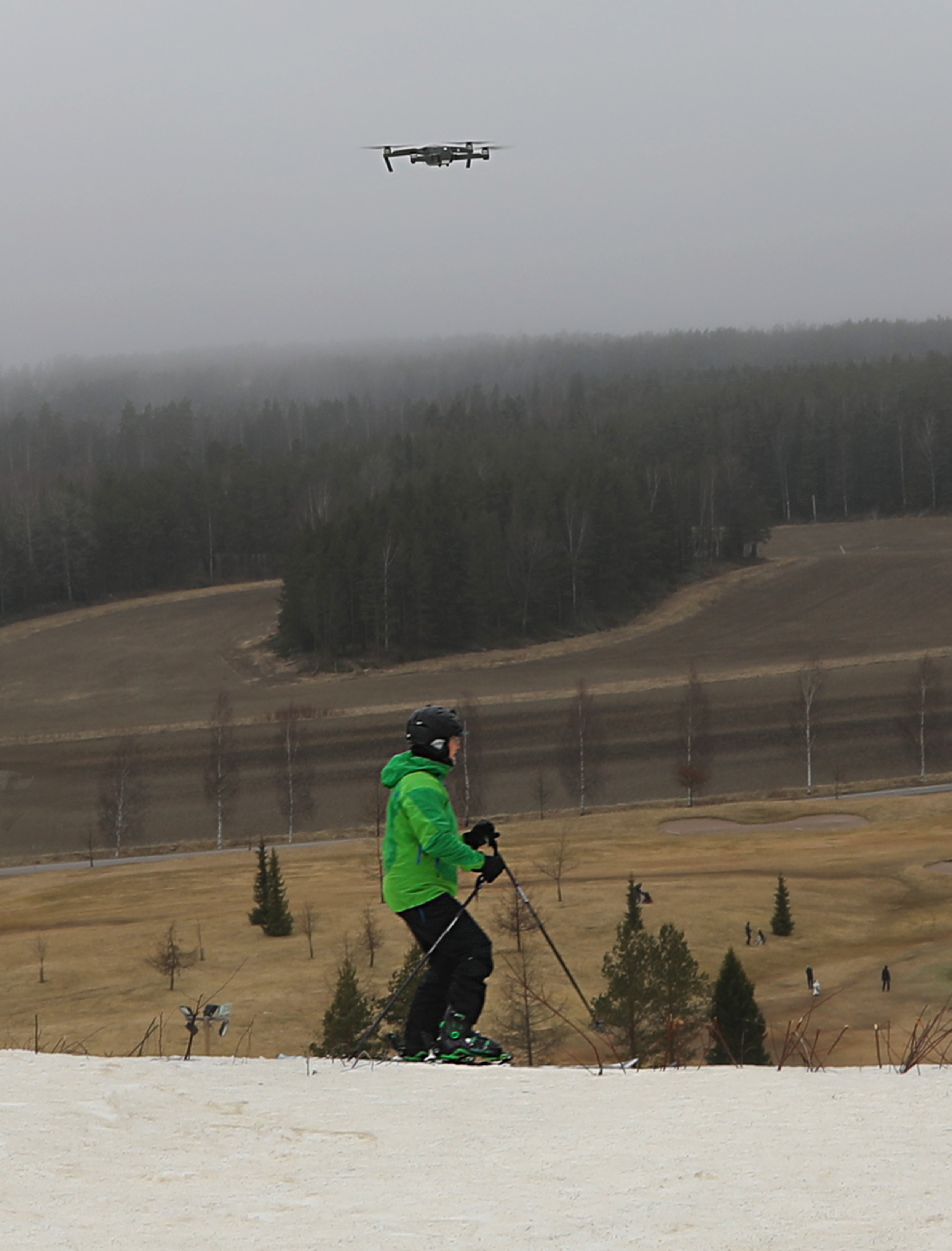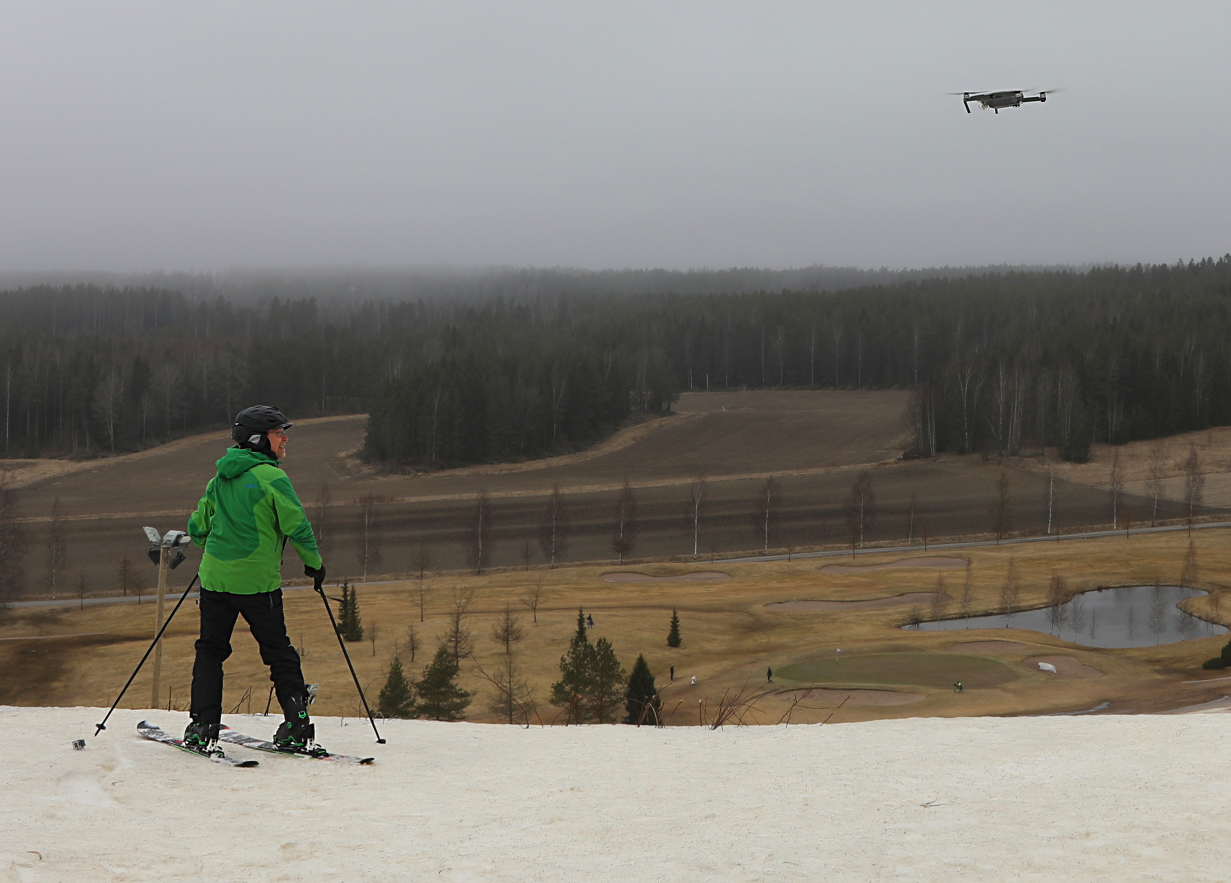 In Peuramaa, the golfers are already taking over, there were many people golfing right next to the slope. Summer is coming, I guess. (But I'm glad no one got a drone-in-one shot!)