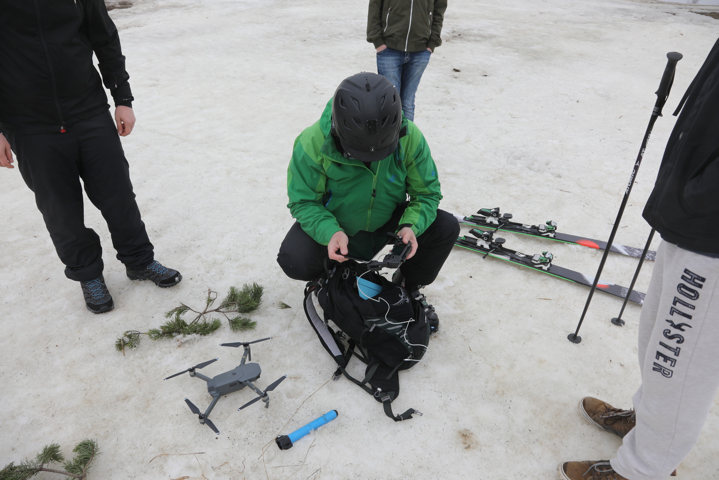 The Mavic Pro shoots 4K video and the default settings produce the views as they were, in high-quality and without burning out or underexposing any of the details. The drone has a number of automatic modes, from following its controller on GPS to tracking based on image recognition and automatic lift-off and return-to-home features. The image-recognition-based tracking modes can also have the drone fly on the side of the target or circle it, with camera pointed to the target at all times. We have not tested all of those modes yet though. Initial experiences from the basic video-based follow mode indicate that snow is a good high-contrast environment to ensure that the drone can see the target clearly, but that the drone needs some manual control in addition to the automation to adjust flying altitude as the skier descends.