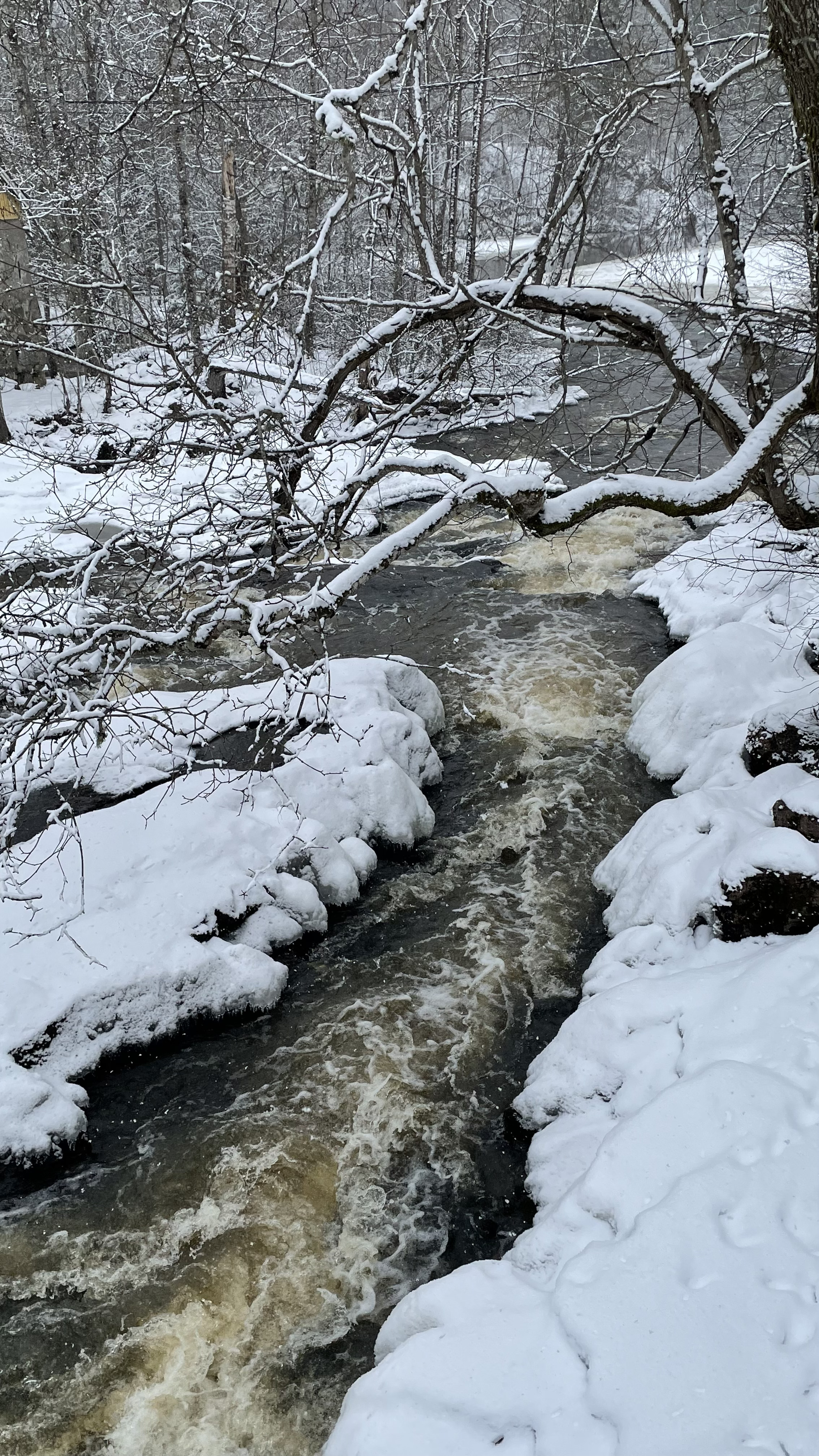 The first striking thing in this area is the beauty of the wintery rapids by the mill and the castle above on a small hill. The mill is currently running a power generator, producing electricity for the castle.