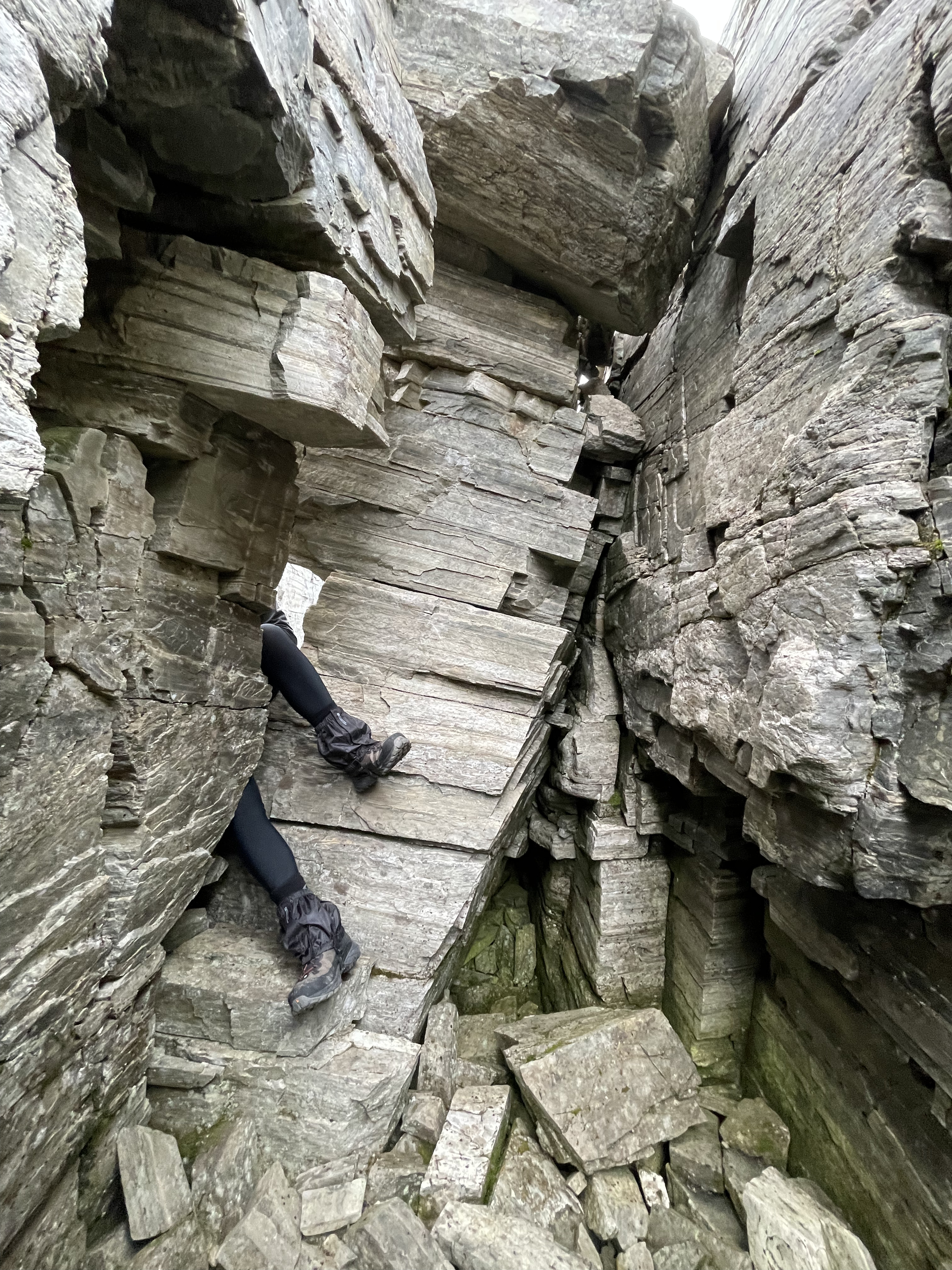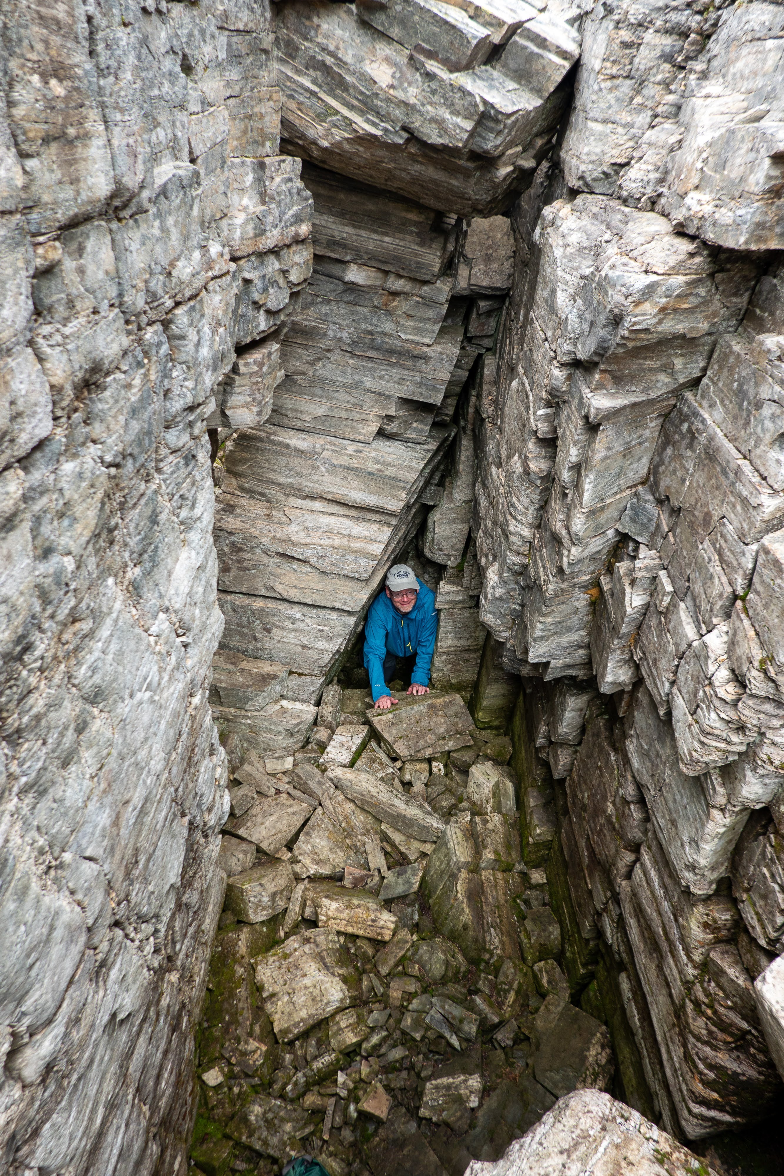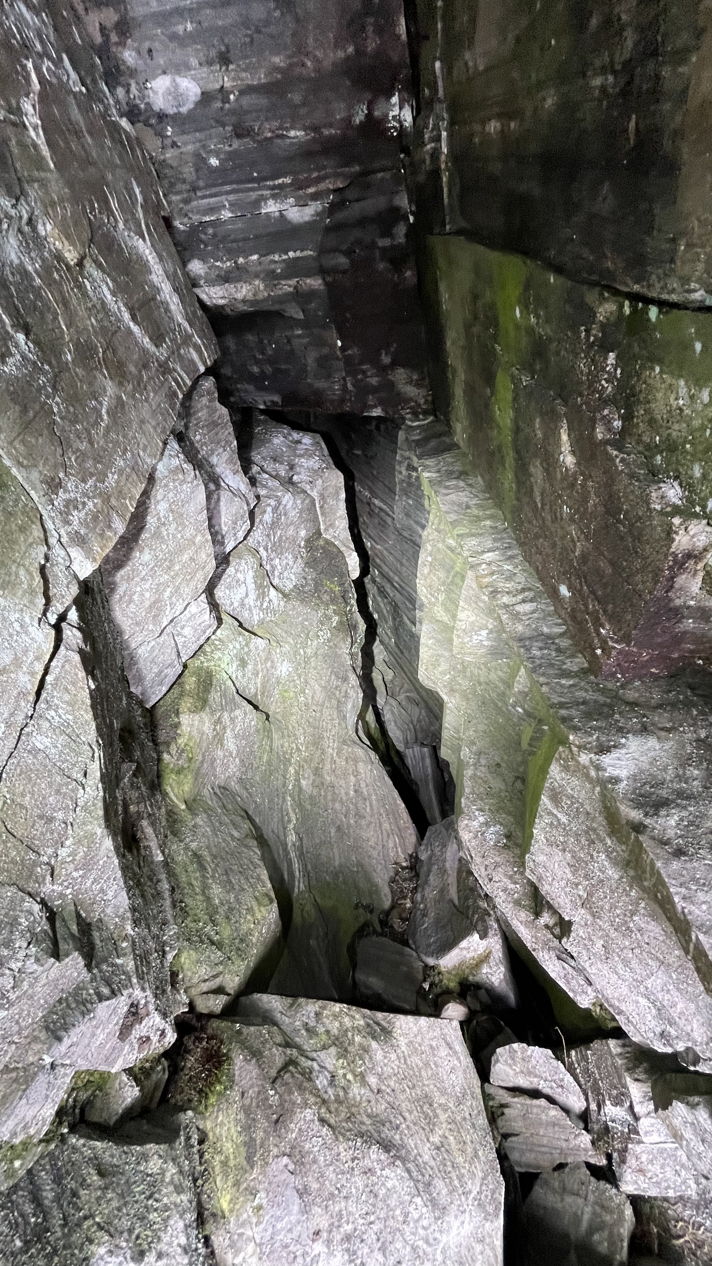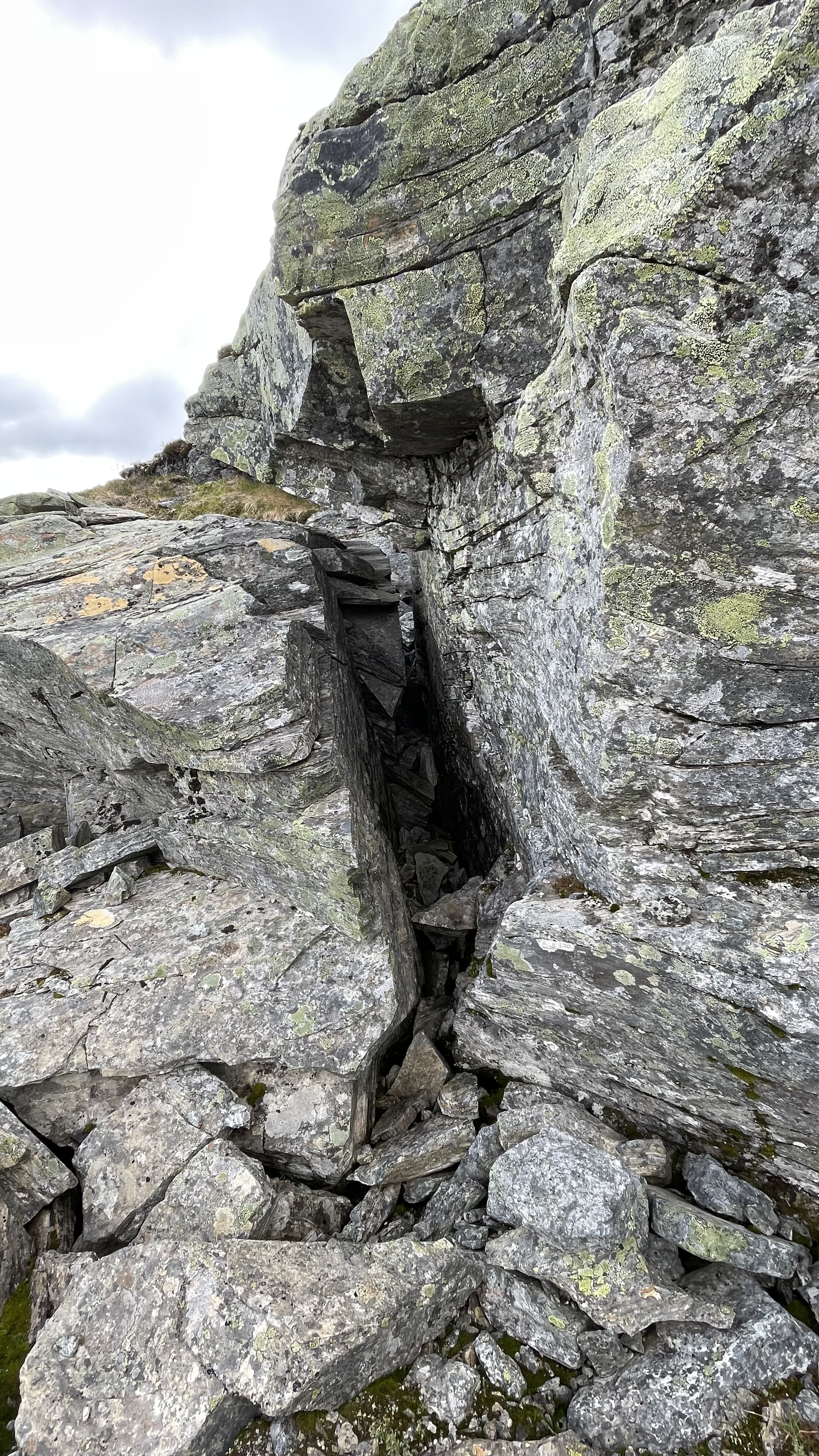 On the other side of the same part as in side crack 1, there's a slightly larger crack. The crack also leads further down (but perhaps not wide enough for a human). The crack is also on top of the clear limestone rock layer (see the other article).