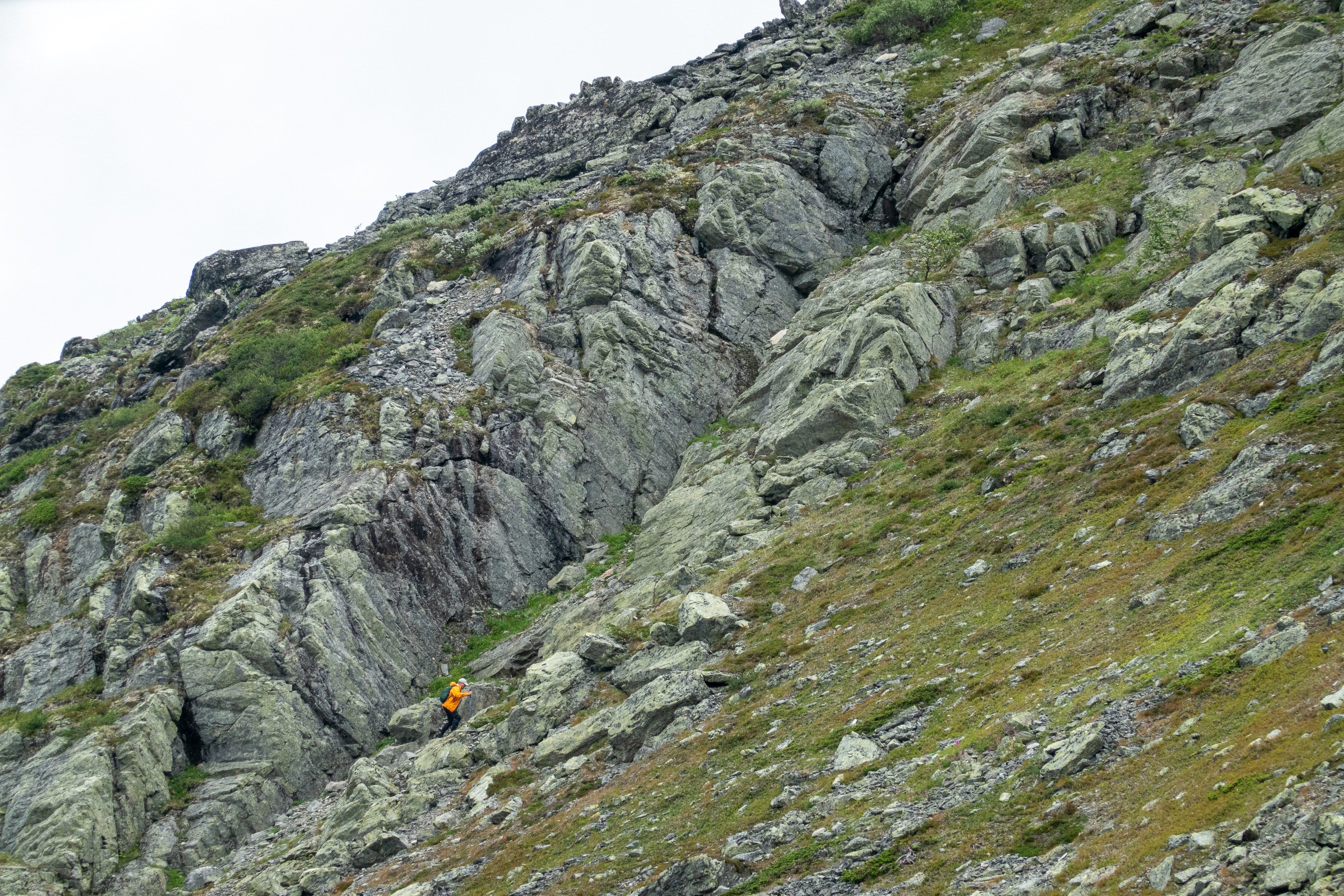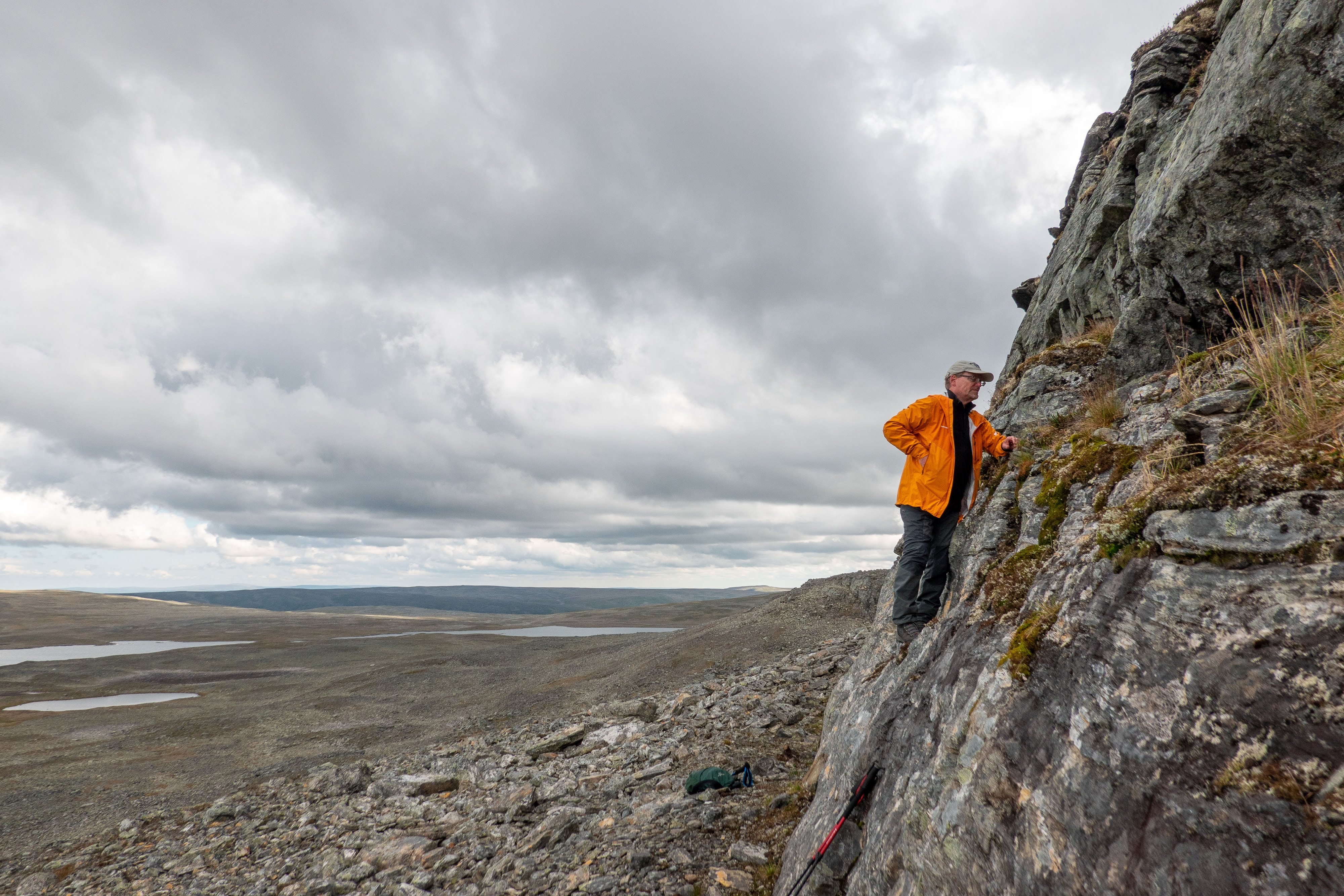 Jarmo and I wondered why that was the case. Maybe the rock in this area is easily broken to small pieces. Or broken through the harsh weather conditions. And instead of large boulders leaving a lot of space between themselves, the rocky landscape is filled to the brim with small rocks that fill all potential holes between other rocks. Does anyone know?