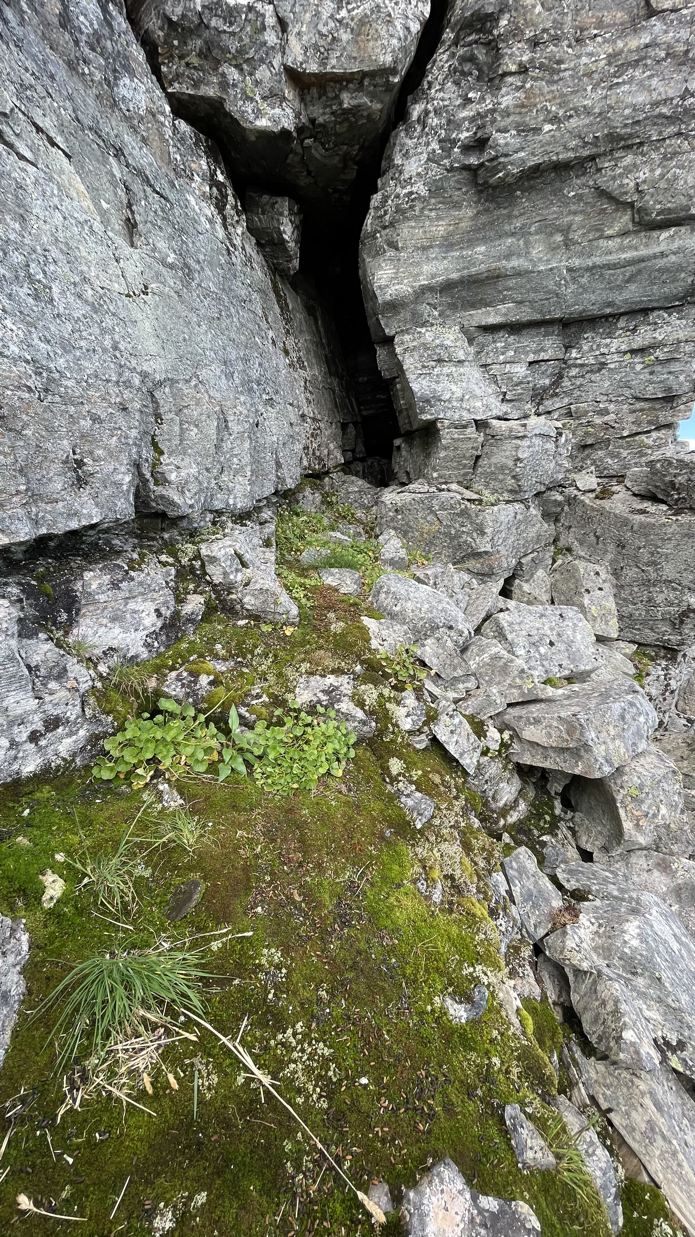 14. Láfolvárri top small crack cavelet. Coordinates: N 69.219505 E 21.411223. Length: 3.2 m.
