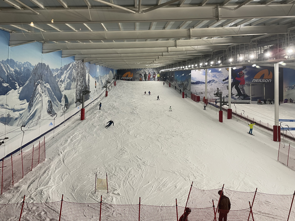 I was coming from North America, and had a long layover in Heathrow. (There's always a layover in Heathrow, isn't there?) What to do? Drive to Hernel Hempstead and its Snow Centre, of course!