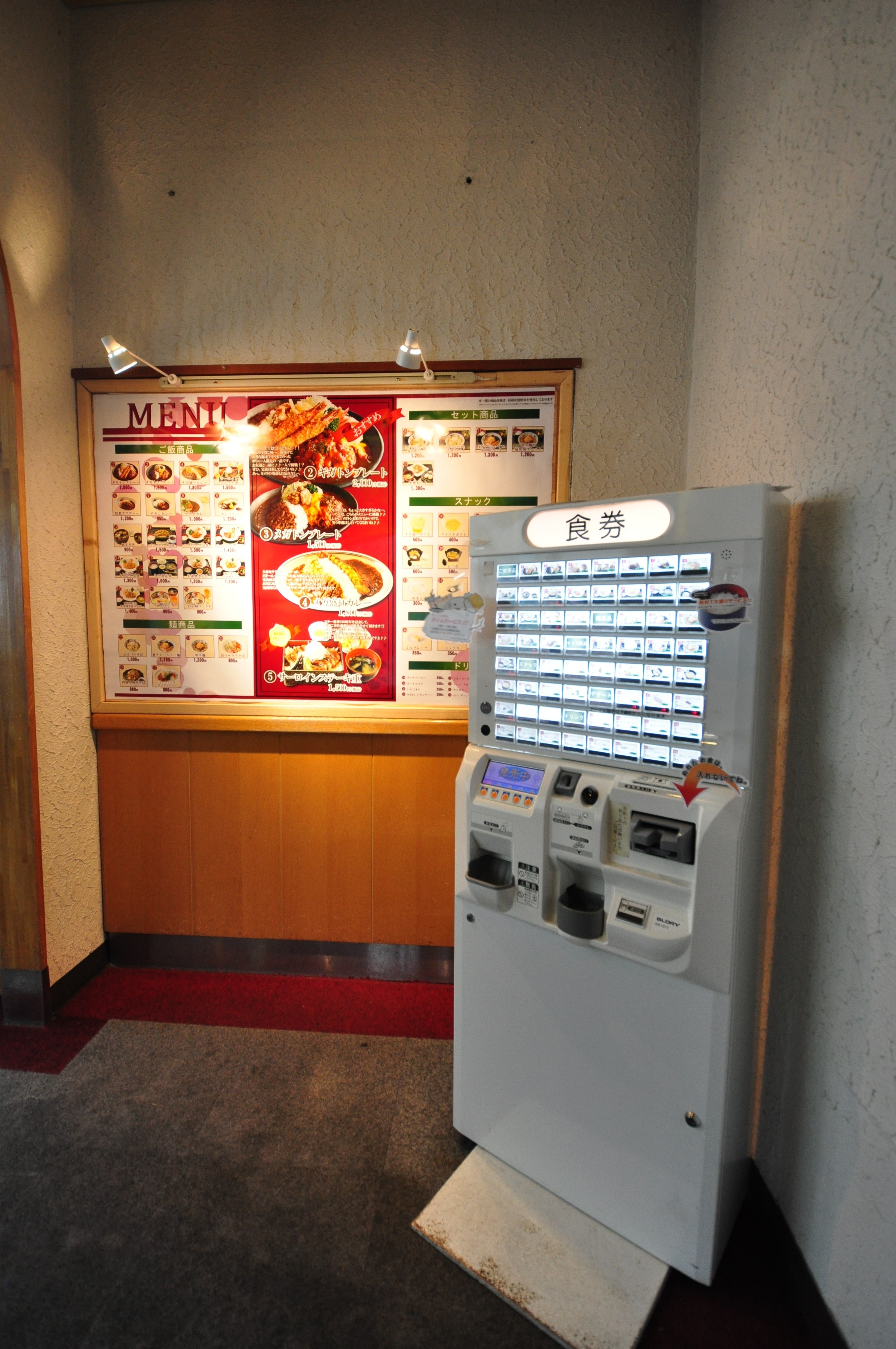 On-slope food is available in the restaurant next to the base building. Interestingly, while the kitchen is staffed with waitresses that bring the food out, the ordering process takes place through a machine. A soup costs 500-600 Yen, or 5-6 €.