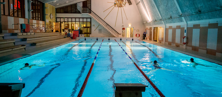This nice community swimming hall is practically empty during the summer, but offers a 25-meter pool, jumping tower, and good saunas. The saunas are exactly the right temperature, which is a bit surprising for a community saunas and maybe also more generally many saunas in Sweden. But the sauna was decently hot but not too hot. Very nice!
