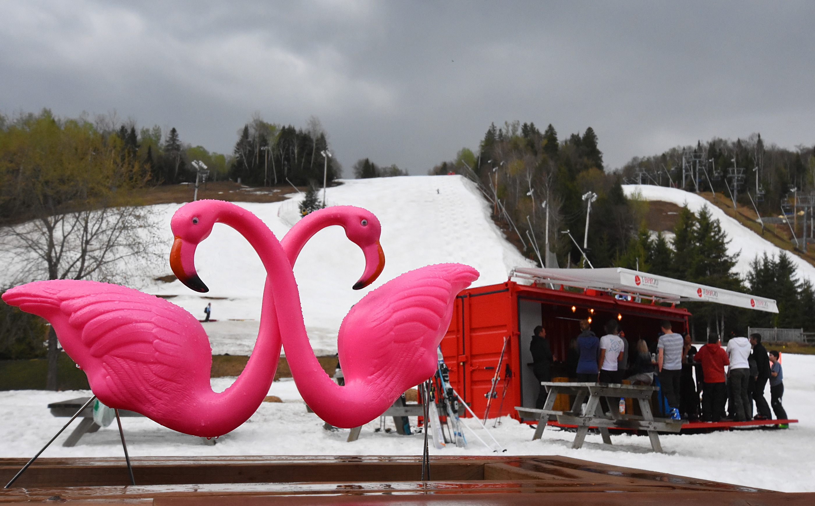 It is late May, and Saint-Sauveur is one of the only two open ski areas in the east. And I've already been to the other one, Killington. And what's more, all the ski crazies are here!