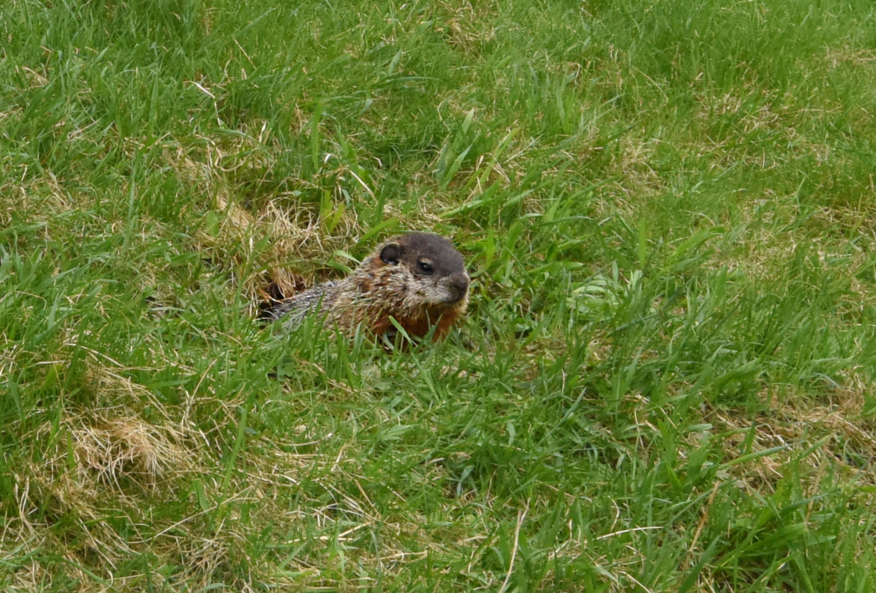 Groundhogs observing my grass skiing: