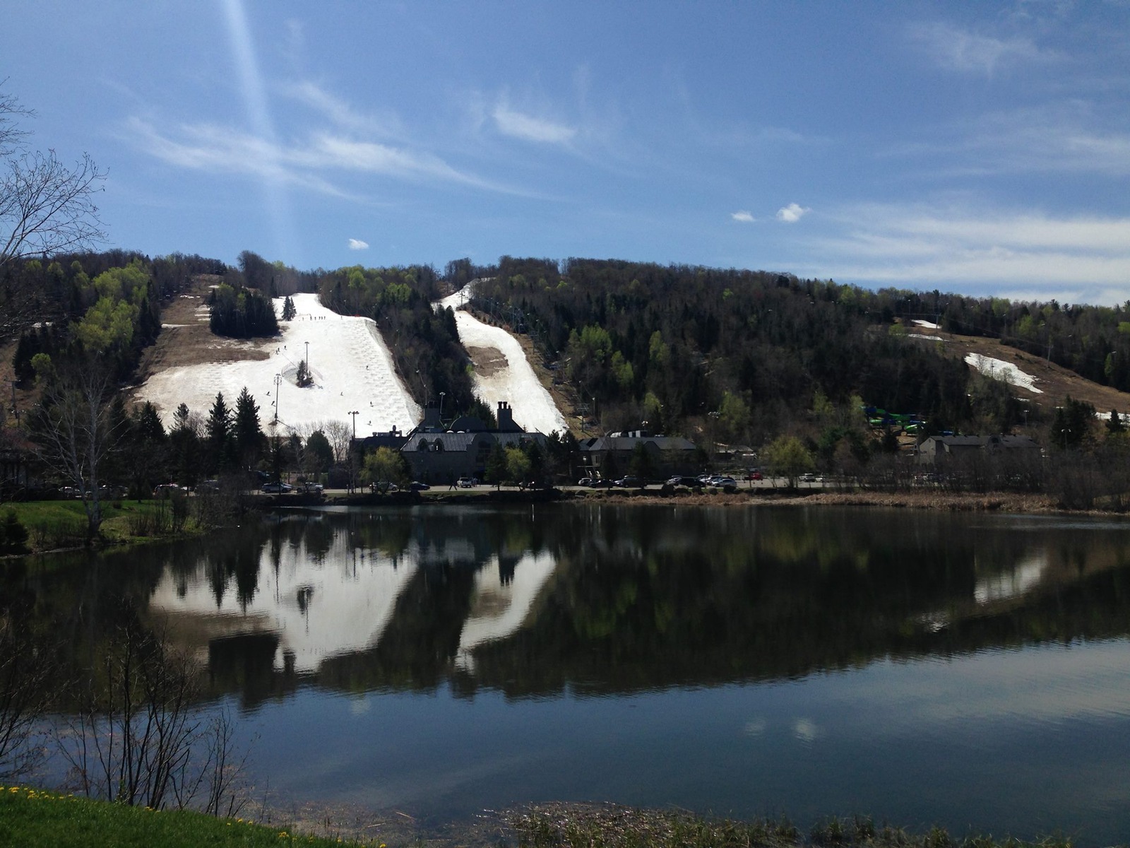 Saint-Sauveur ski area across the lake (photo by Patrick Corcoran):