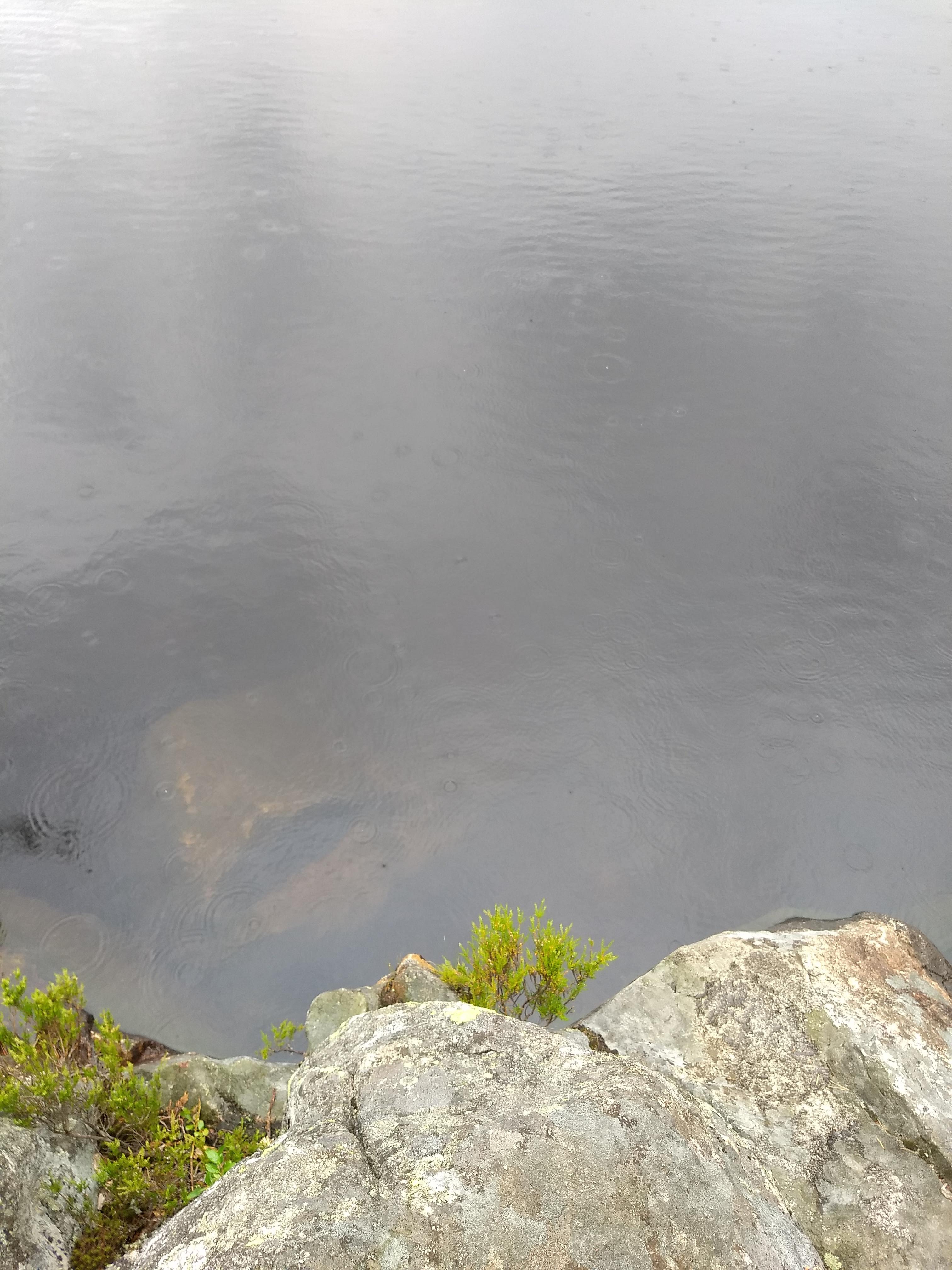 But, I walked to the end of the lake and picked an interesting looking cliff to climb and hike. It turned out that you can go to the water from the end of the cliff, if you climb down from the top. So I had my warm, nice, private swim anyway. Even if in the rain :-)