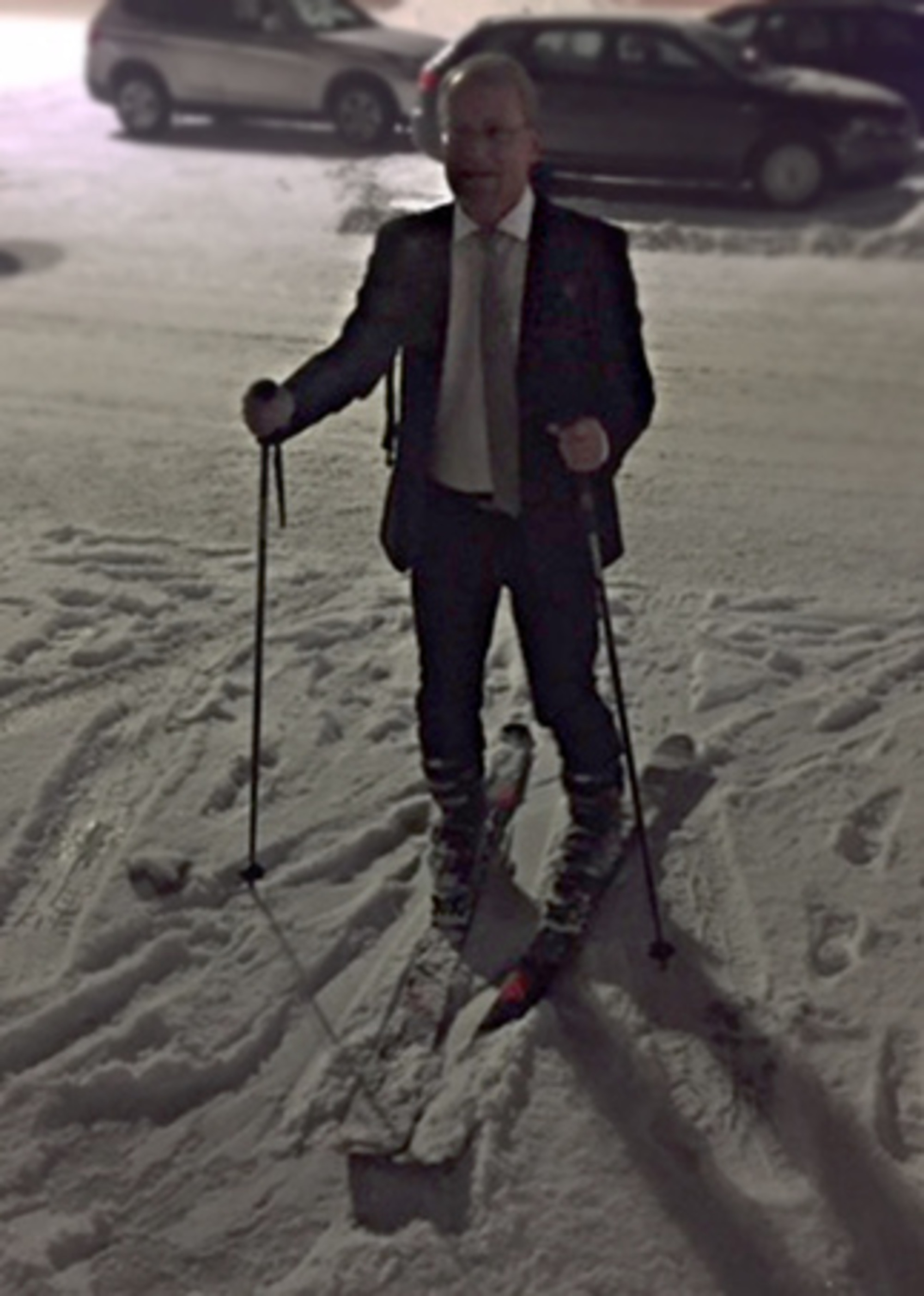 "Can you take my skis to the clothes check?" "Why not, we also take baseball bats." Dressed in a black suit, I'm on my way to a bar, to Zach's birthday party in Sotkamo. With boots and skis... my hotel is at the top of the hill.
