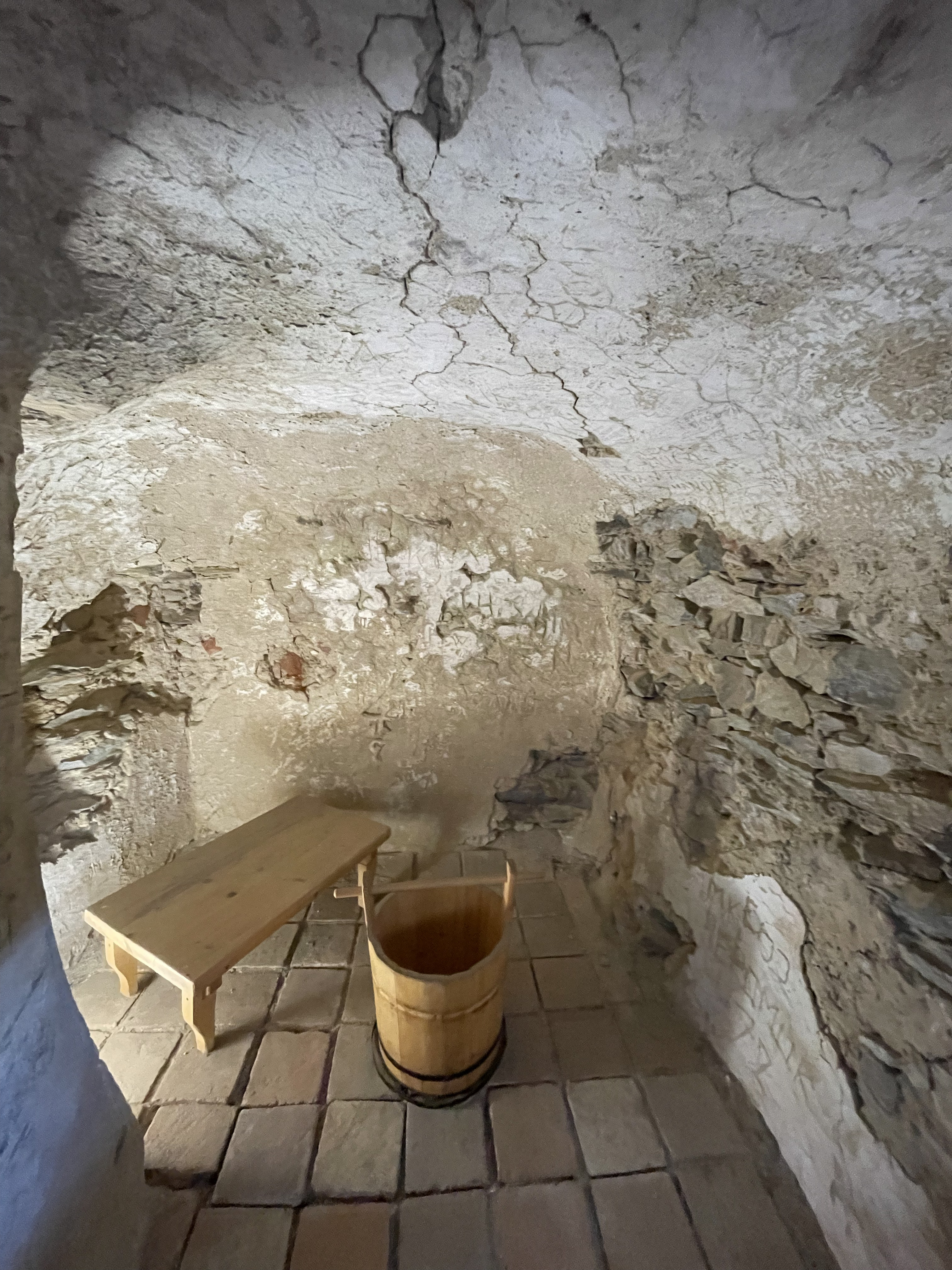 Kašperk was remarkable, with its views, and much of it remained as it was, so we were able to see toilets (above picture), bathrooms (below picture, and yes, a bathroom in a medieval castle), and so on. Very nice.