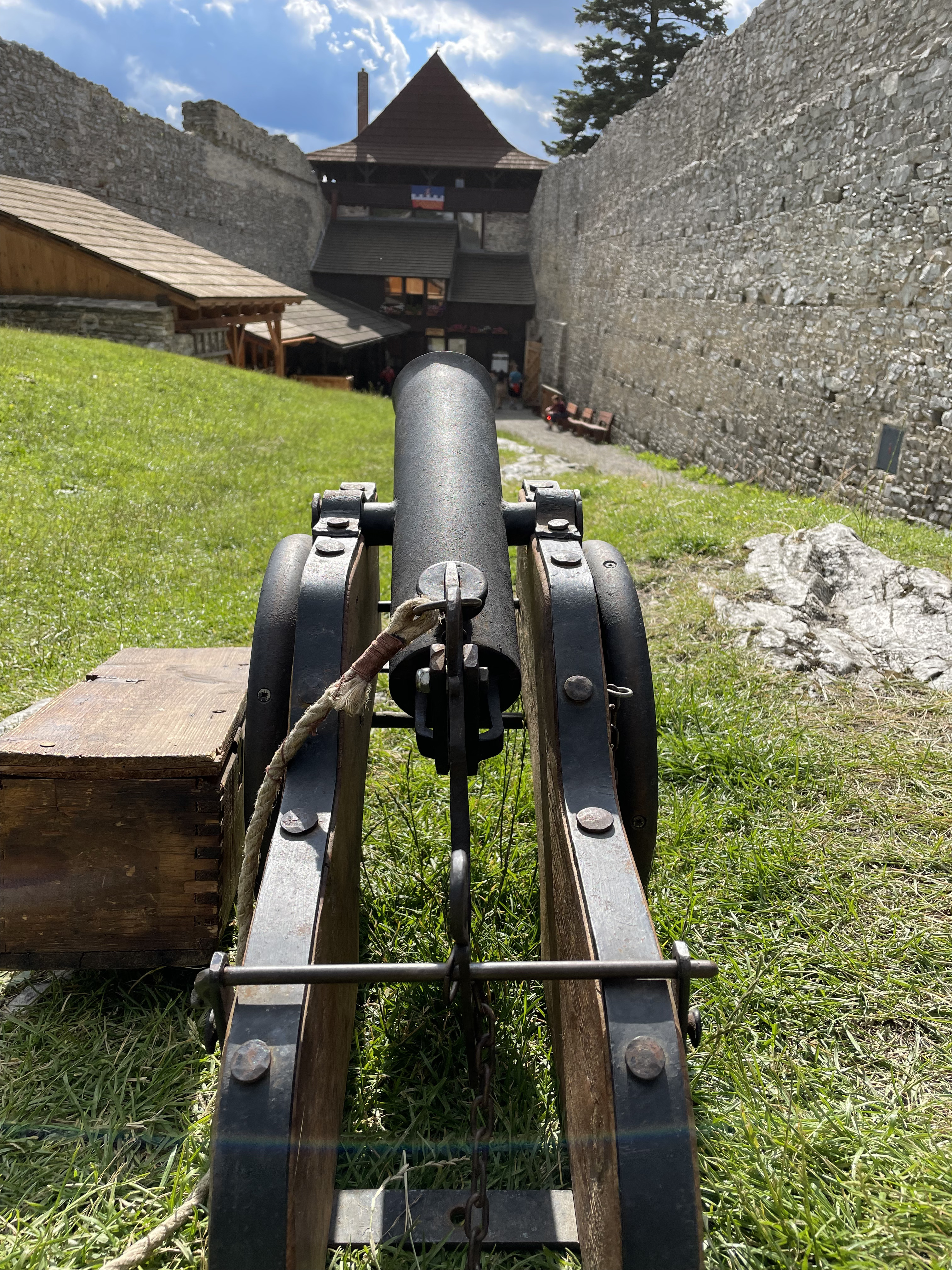 We ended up spending much more time at Kašperk, having arrived there earlier and having an opportunity to visit the insides of the castle on a very nice tour. There were also food stalls, mini-cannon demonstrations, etc. in the inner courtyard of the castle. Rabí on the other hand... was already closed by the time we arrived, but we managed to walk around it at least. There were some restaurants in the Rabí village, but, weirdly enough, not offering any food, only beer. So we continued on.