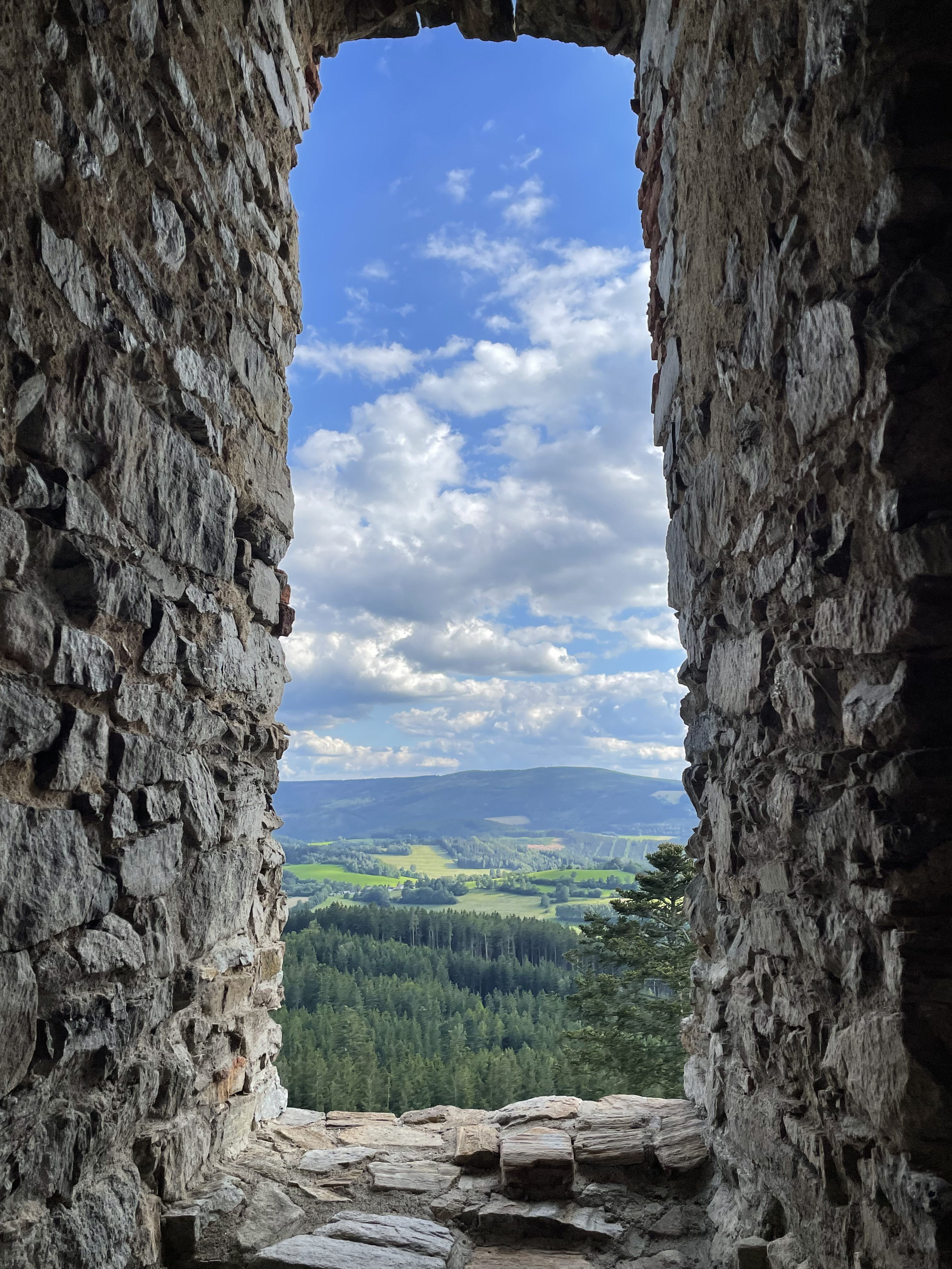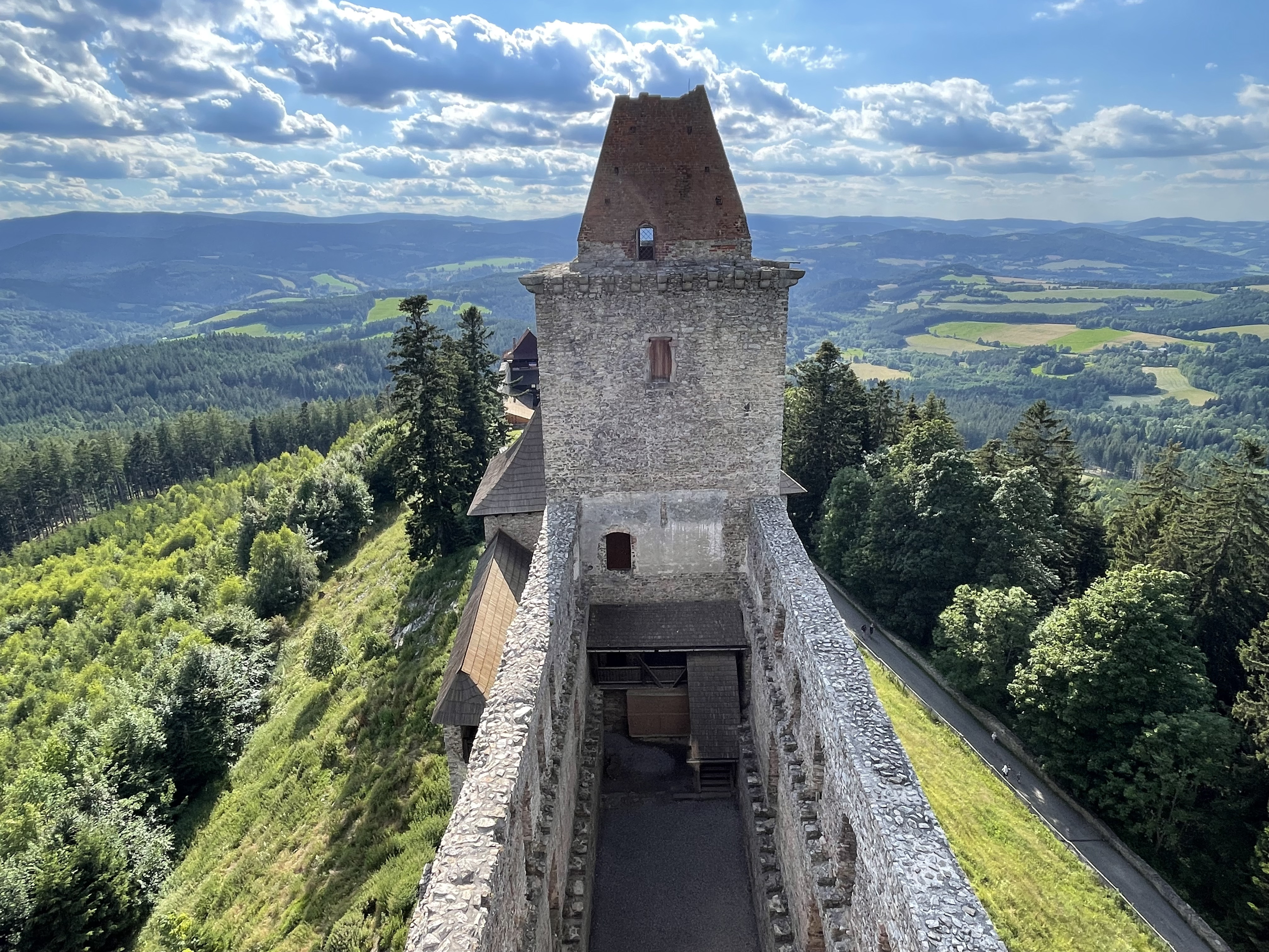 Our trip to Czechia concluded with a road trip to the Kašperk and Rabí castles. Both are medieval castles, partially in ruins and partially restored. Kašperk's two-towers-on-a-steep-hill design reminded us very much of the Trosky castle that we had seen a few days earlier.