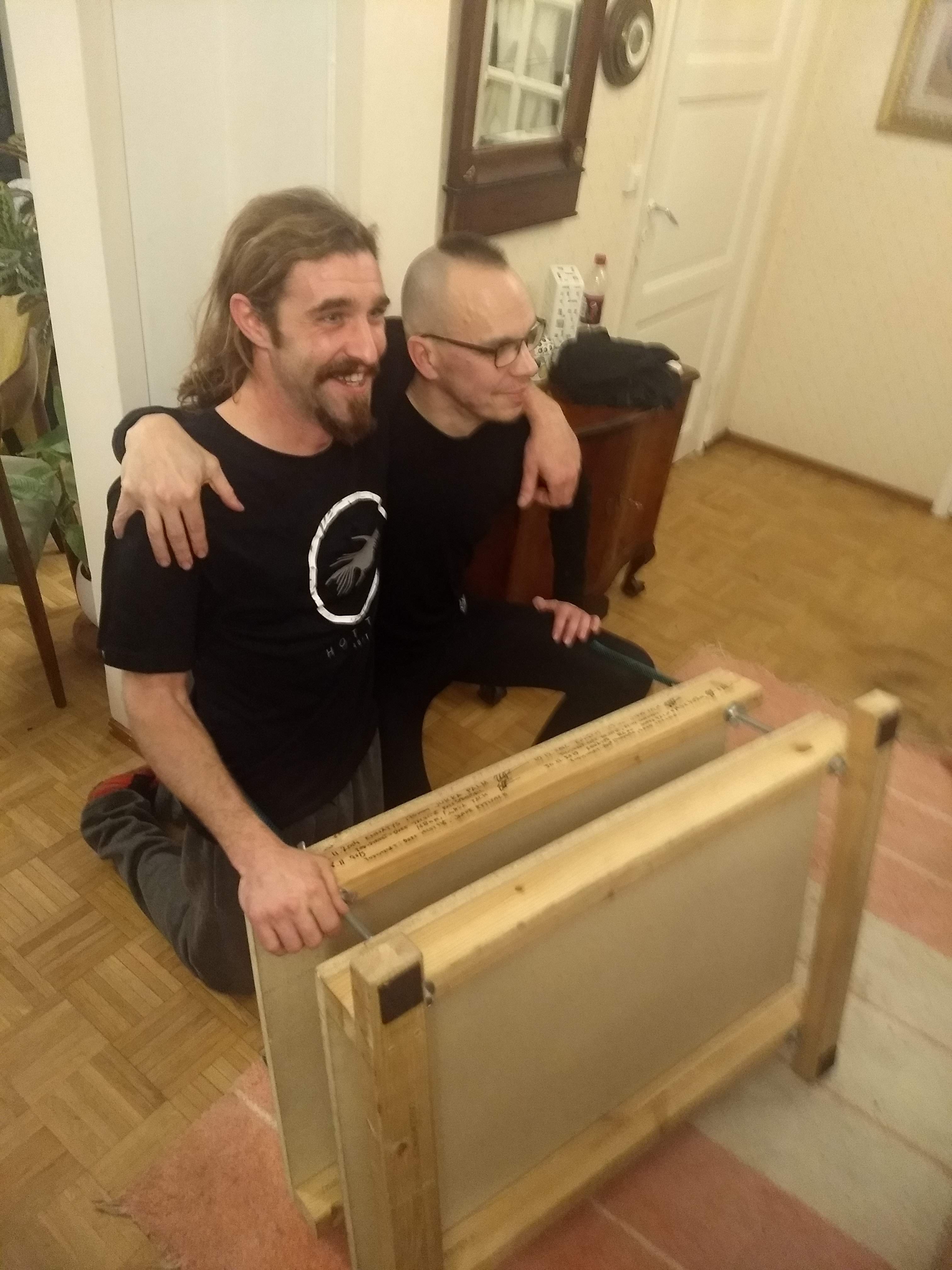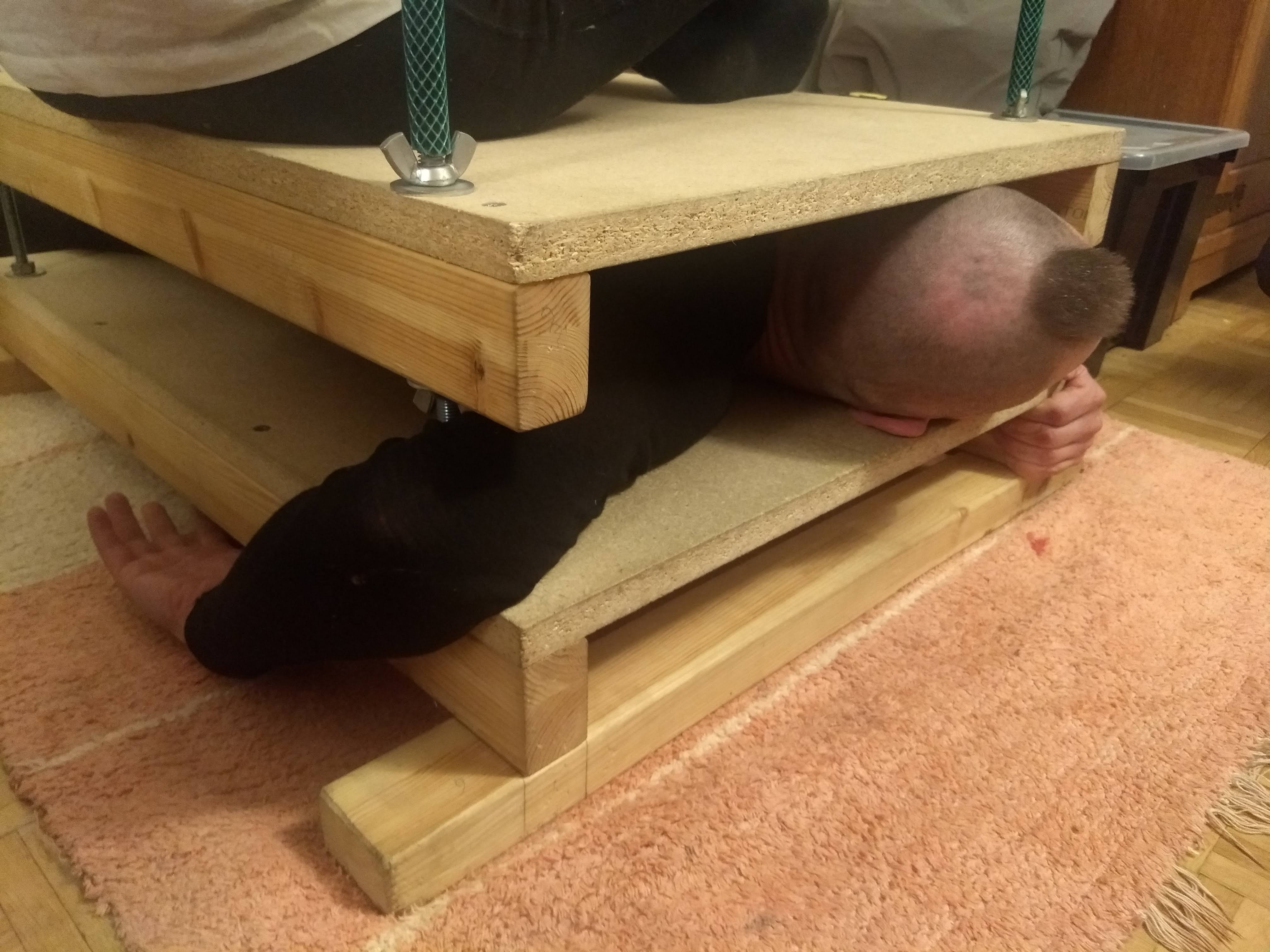 We have a new Finnish cave squeezing record! At the "little xmas party" of the caving association, Jukka Palm and Mike Kushy both pushed through the squeeze box at just 166 millimeters. And I can't even get my fat head fit inside that distance, let alone other body parts! :-)