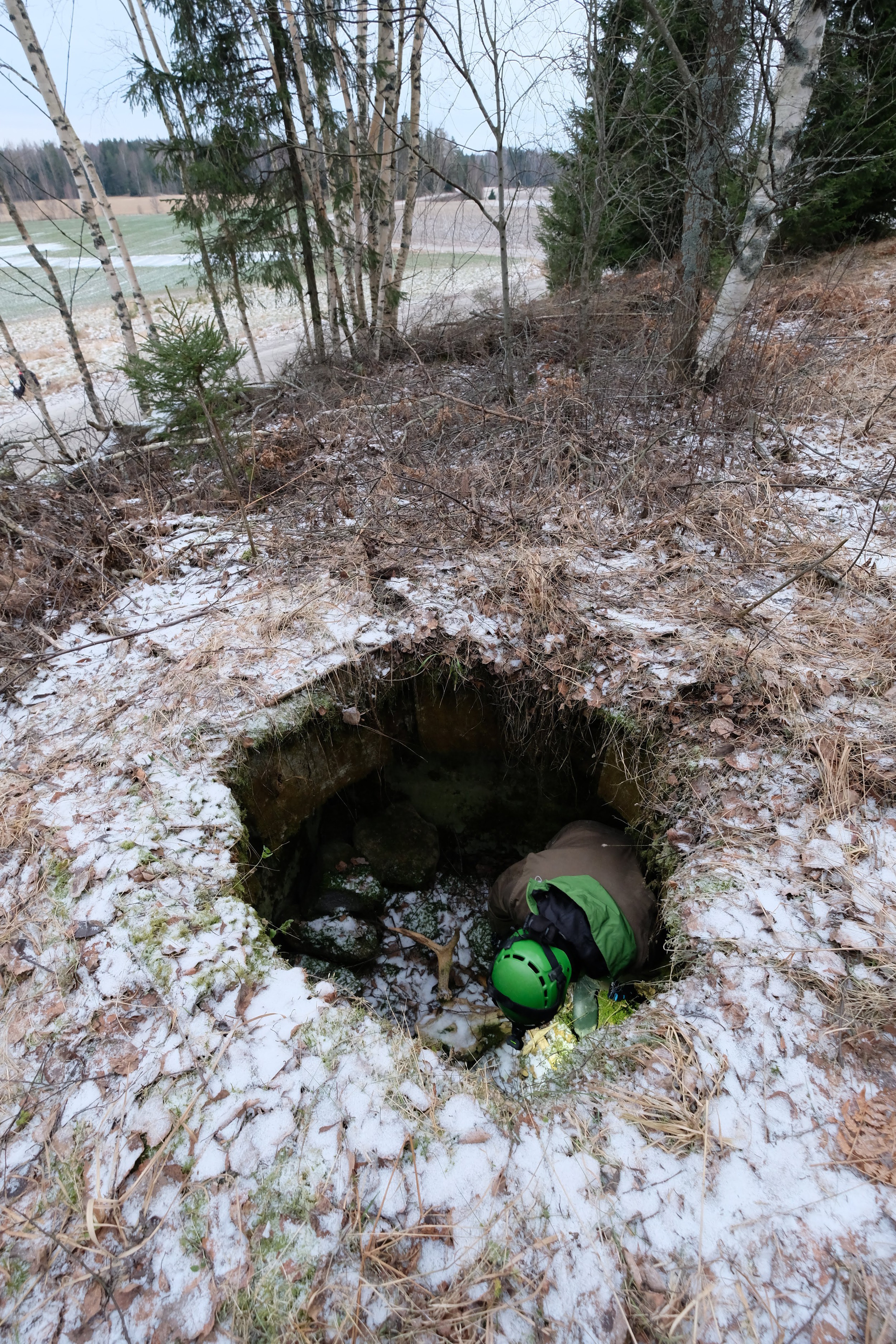 In Stubböle, our first bunker exploration turned out nothing, we merely found the foundations of some kind of silo or container, possibly just farming related (coordinates: N 60.06289470 E 24.13498145).
