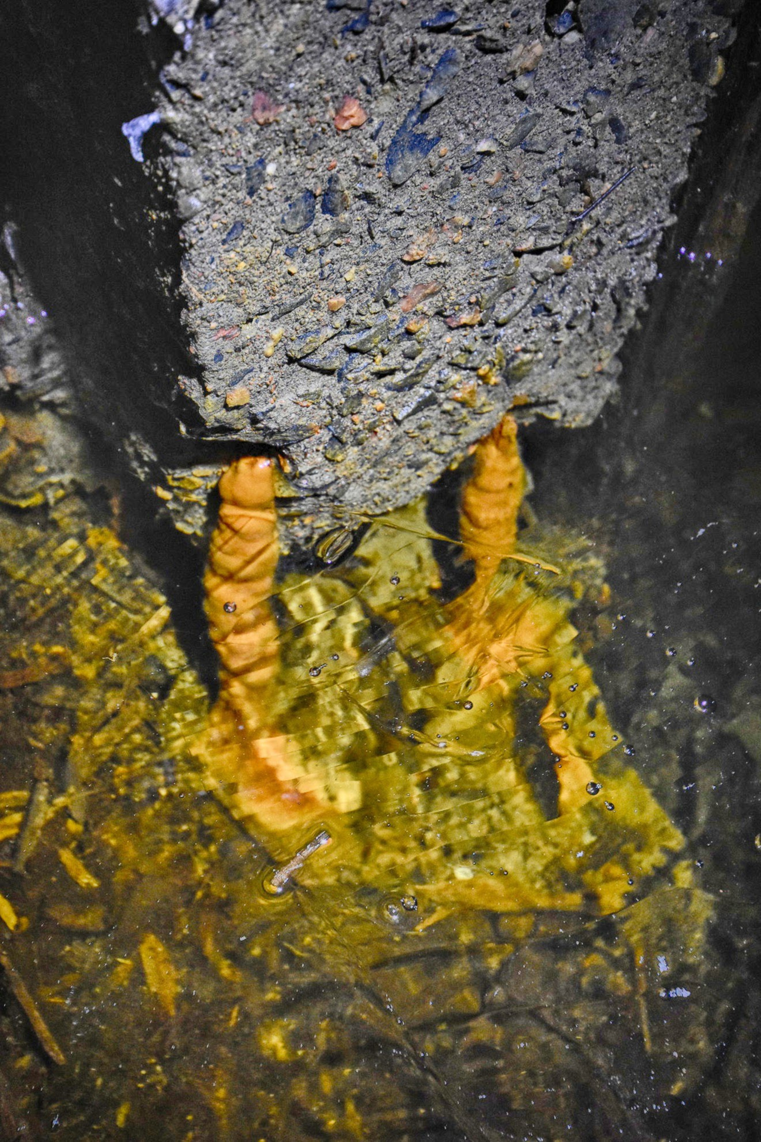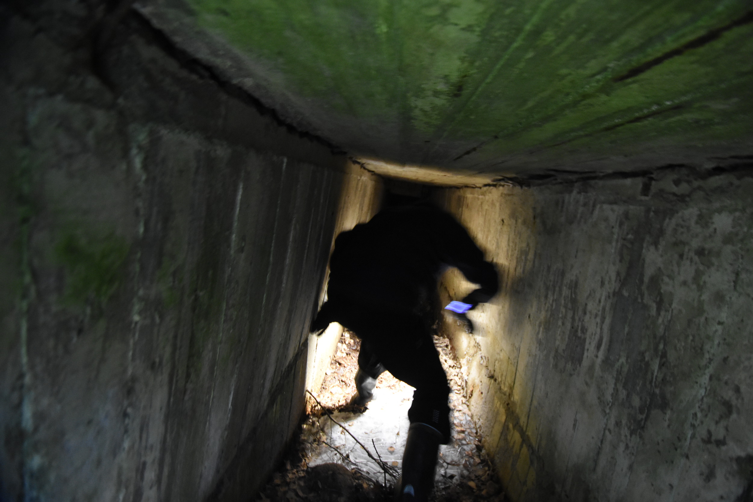 The second bunker more to the south had a different setup, with the gun hole largely blocked but the entrance tunnel still usable. Oddly enough, someone had dragged logs into the entrance tunnel, presumably to help walking on the muddy floor (?)