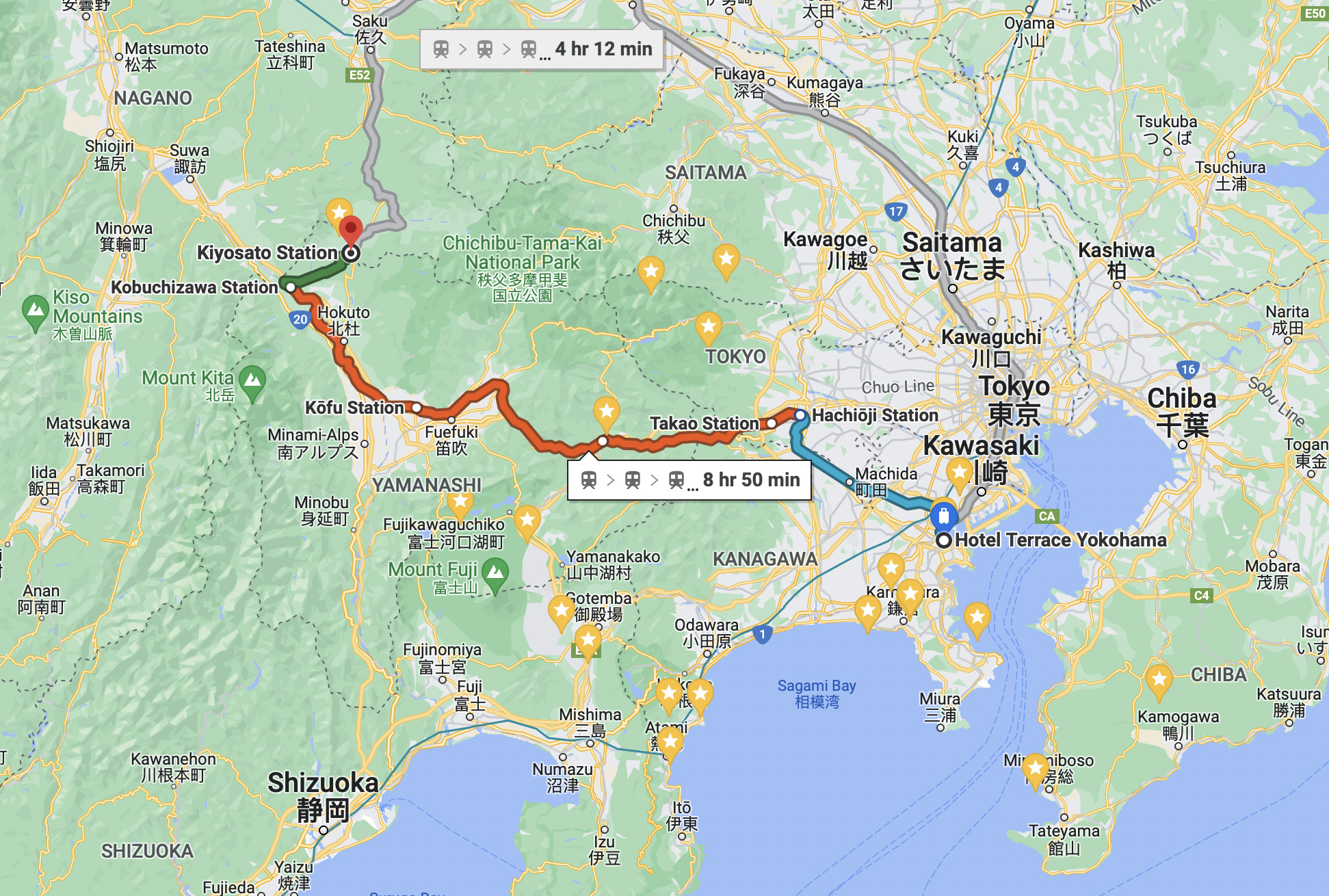 Above you will see my planned route. Below is shots from the train window near Kobuichezawa. So close, so far!