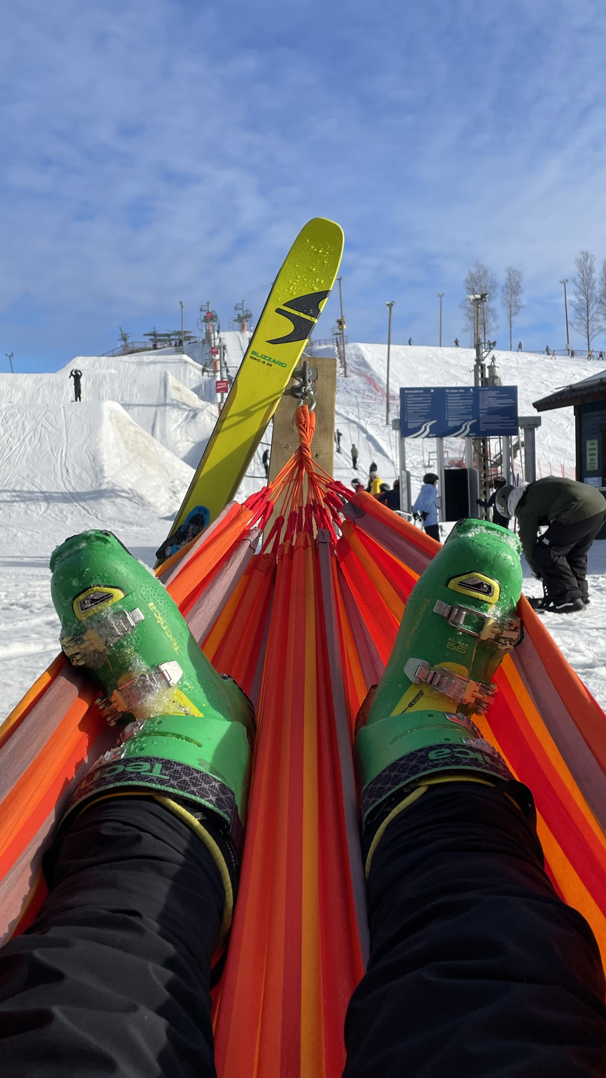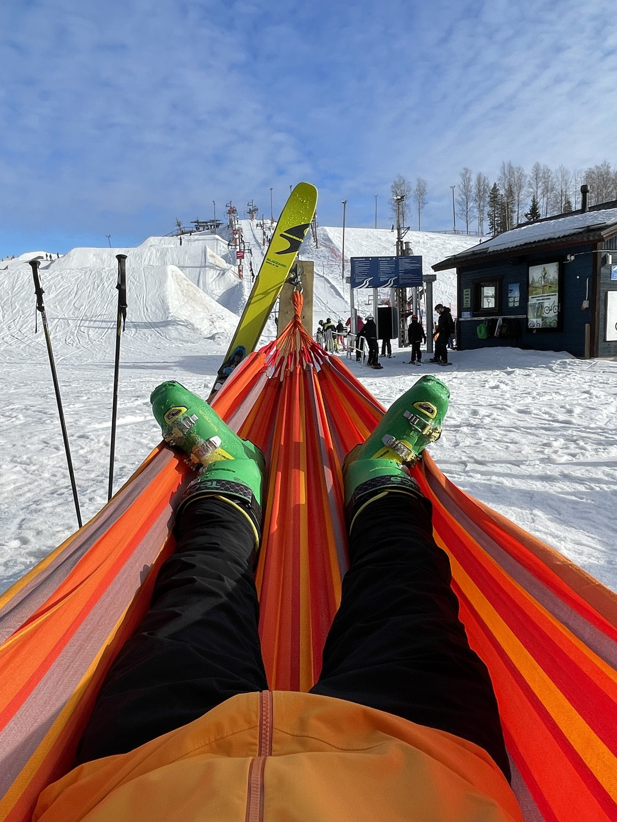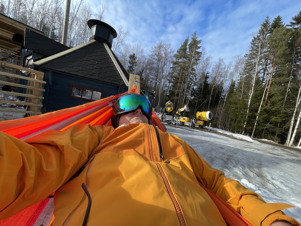 It was a sunny day, there were hammocks... and great skiing! Both in a running ski area (Sipoo's Talma) and one that had been abandoned years ago (nearby Kerava's Keinukallio).
