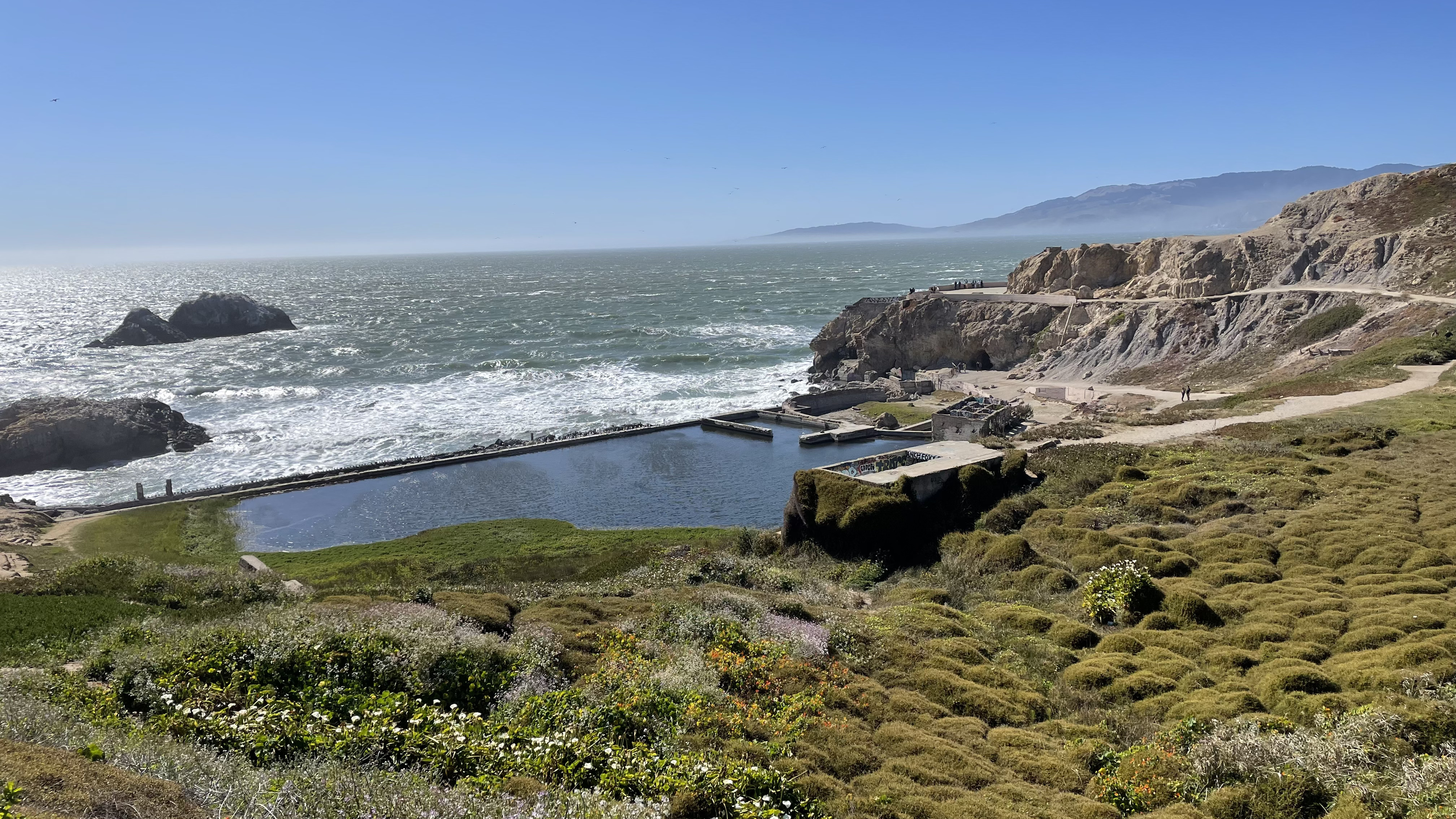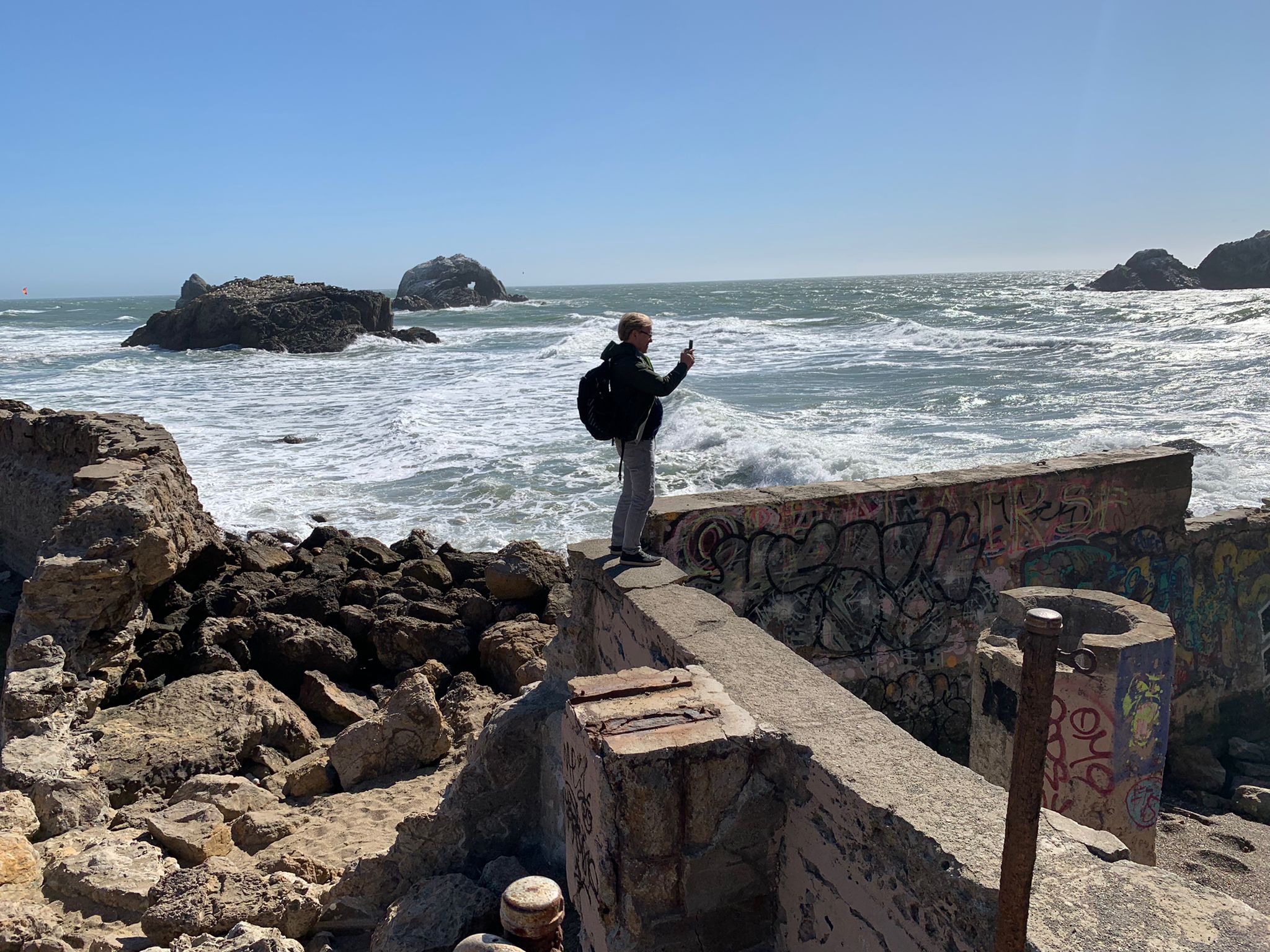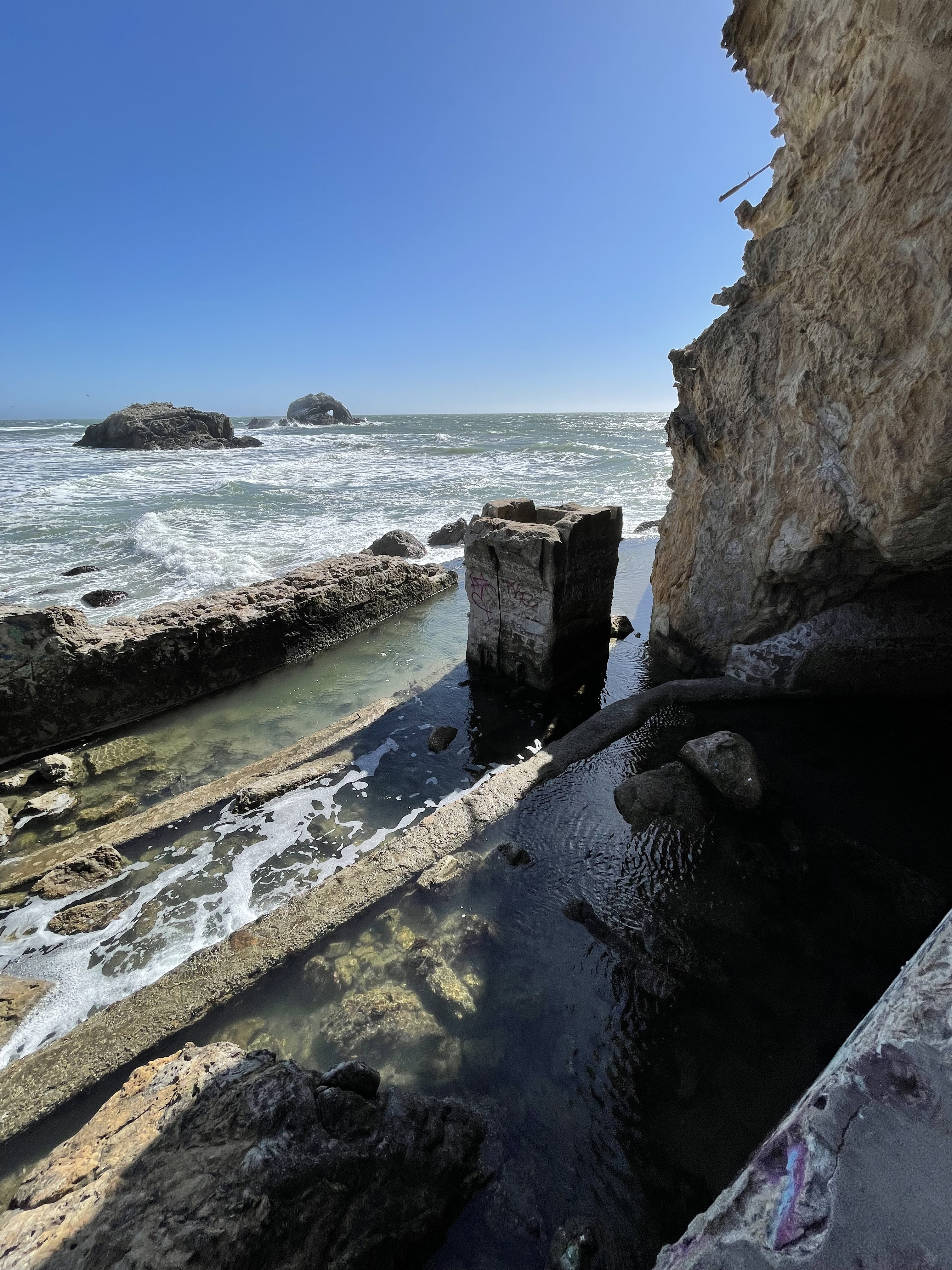 While most of the ruins are at the seashore, if you walk to the observation area above the cliffs you will find more ruins, this is recommend for the views! From here you can also see (closed) stairs that lead down to an area above the lower tunnel. And from the observation area you can find further steps that lead to the Sutro Baths Trail and the Coastal Trail through the Golden Gate Recreation Area's beautiful park. Much recommended as well.