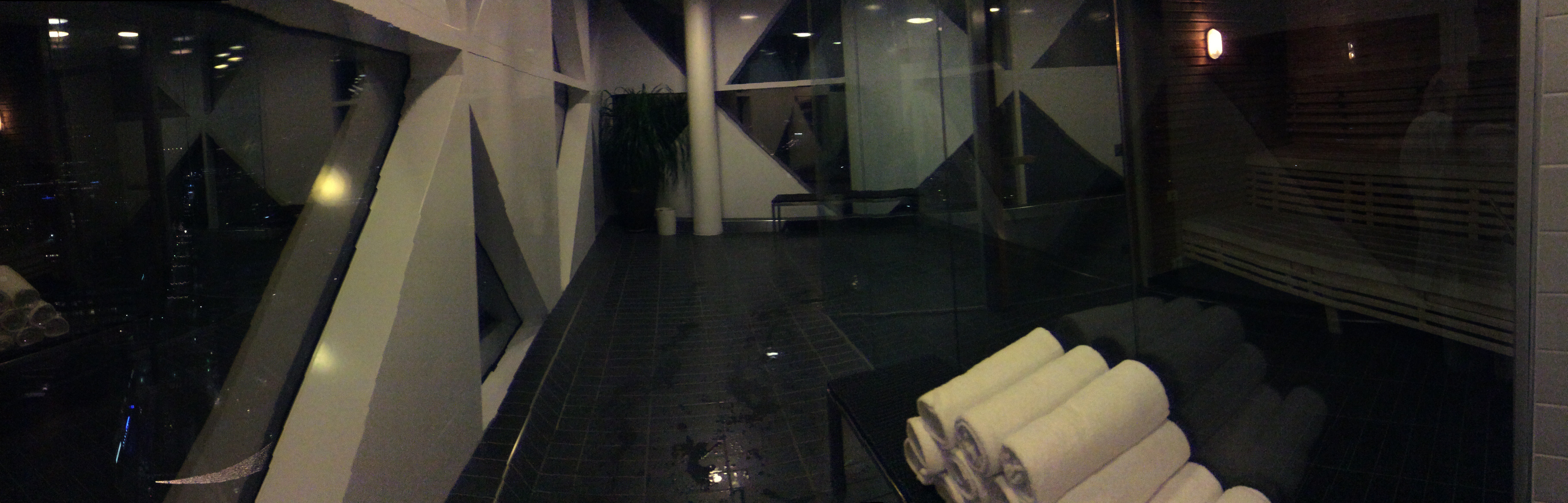 I was on a work trip in the wonderful city of Kista, Sweden. I stayed at the Scandic Victoria. Our days were packed, but even if I came back very late from dinners, I wanted to do a quick test of the sauna in this fancy high-rise hotel. On floor 22, they have a gym and a sauna. The sauna was a nice, glass-walled setup, and surprisingly hot. Perhaps equally surprisingly, I found my colleagues in the sauna who I didn't even know were also visiting Kista. But of course they were, as we were having big meetings this week. Nice to see them.