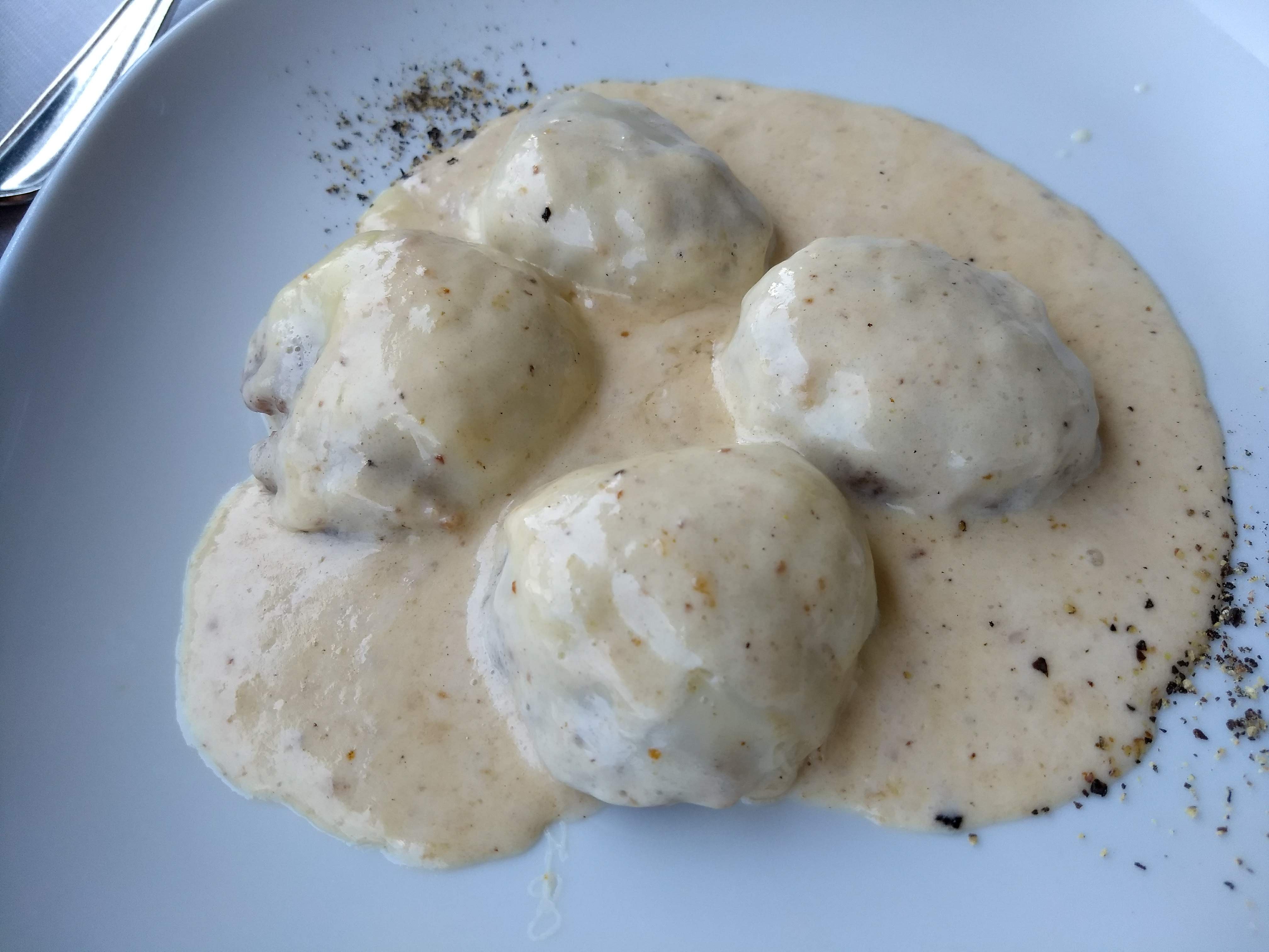 We at Ristorante Bucci, with a wonderful view as shown above. They had interesting meat ball dishes, either with cheese Cognag sauce or the red wine sauce... we ordered both: