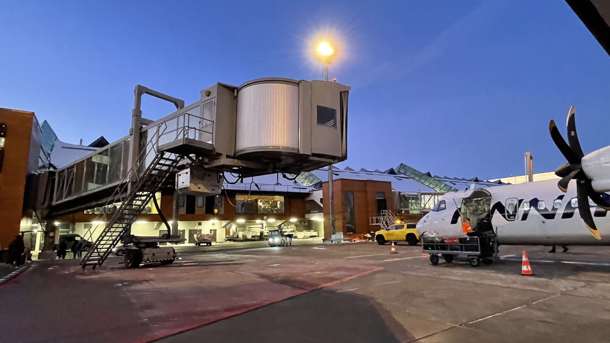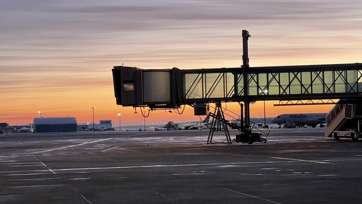 Had a chance to fly to Tallinn for a day trip (skiing, caving, and a spa; see article or alt. link). It was an early flight on a slow Sunday morning; wonderful airport, spectacular sunrise, and overall smooth experience. Except maybe waiting few minutes for my rental cars, there was no waiting or long walks or any of the other complexities usually involved with international travel.