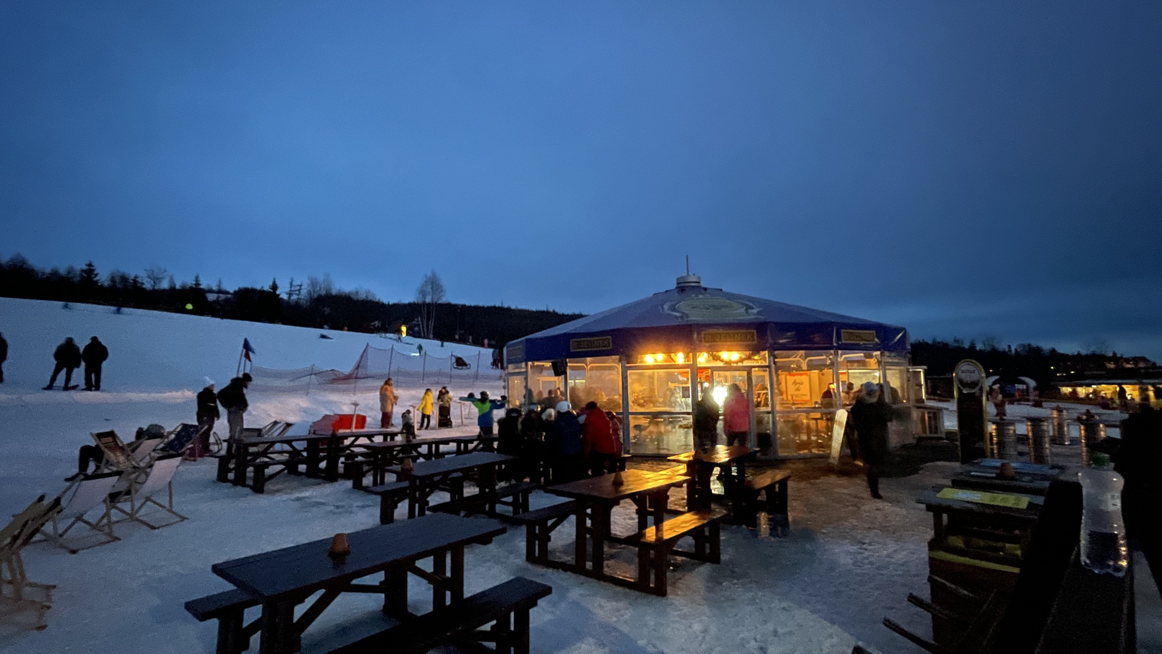 Food and apres ski? Quite nice. The Goulash index was pretty high, in the top restaurant you have to pay 11,50 for a bowl of soup. Apres ski seemed nice in a round bar at the bottom, but we had to head back to the two-hour drive to Zakopane.